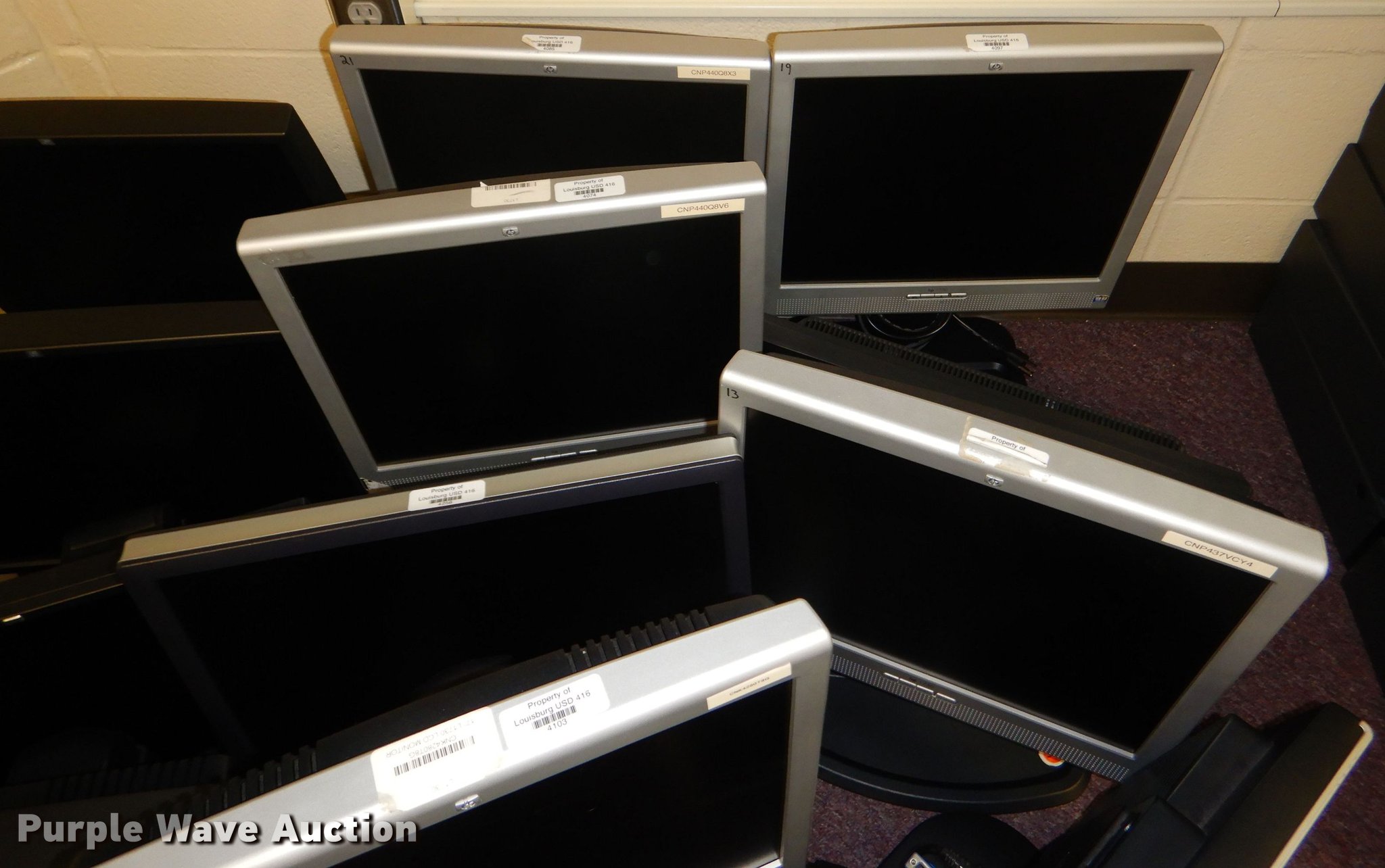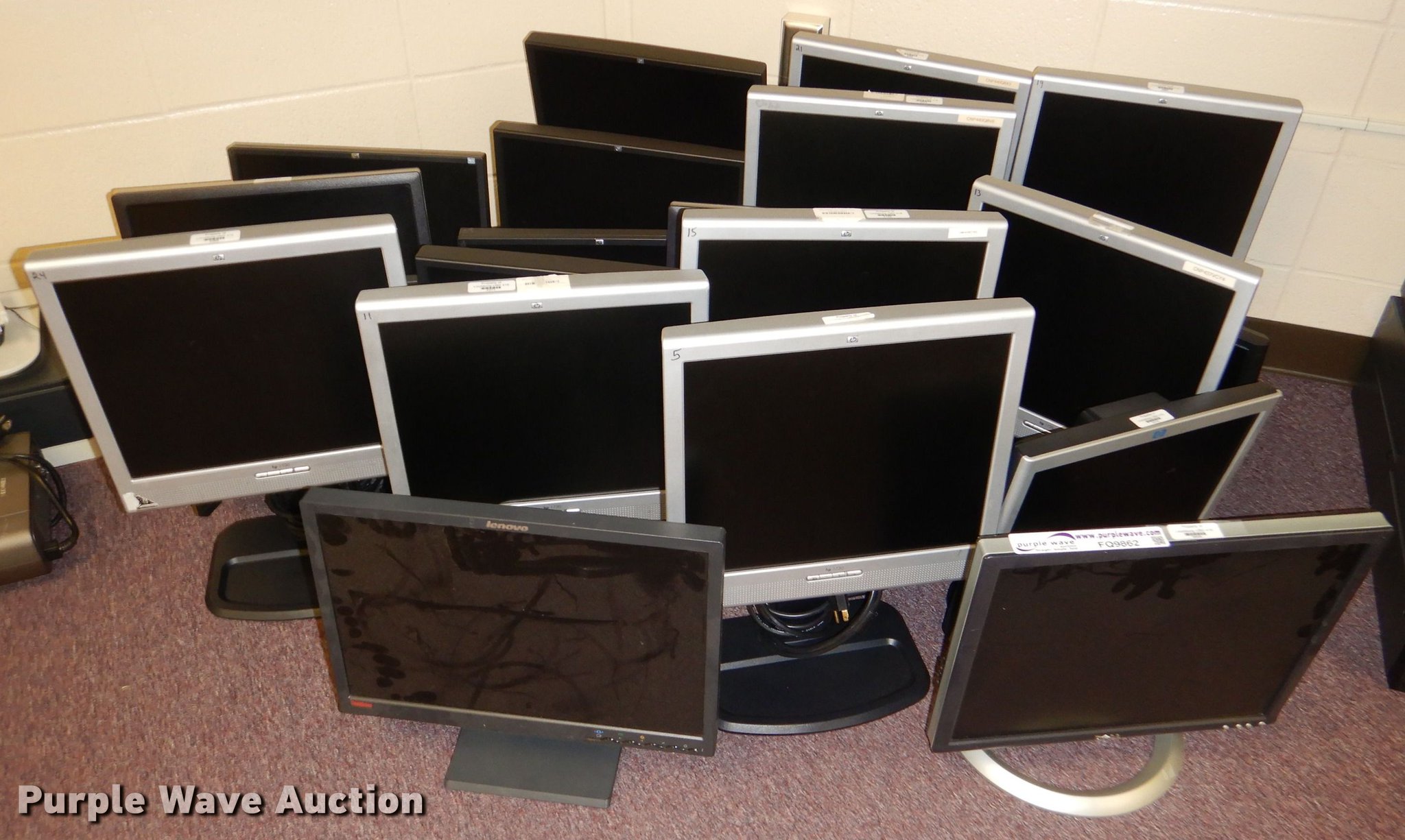 Purple Wave is selling a used Computers in Kansas. This item is a (20) monitors with the following: HP, Lenovo, Dell, Acer