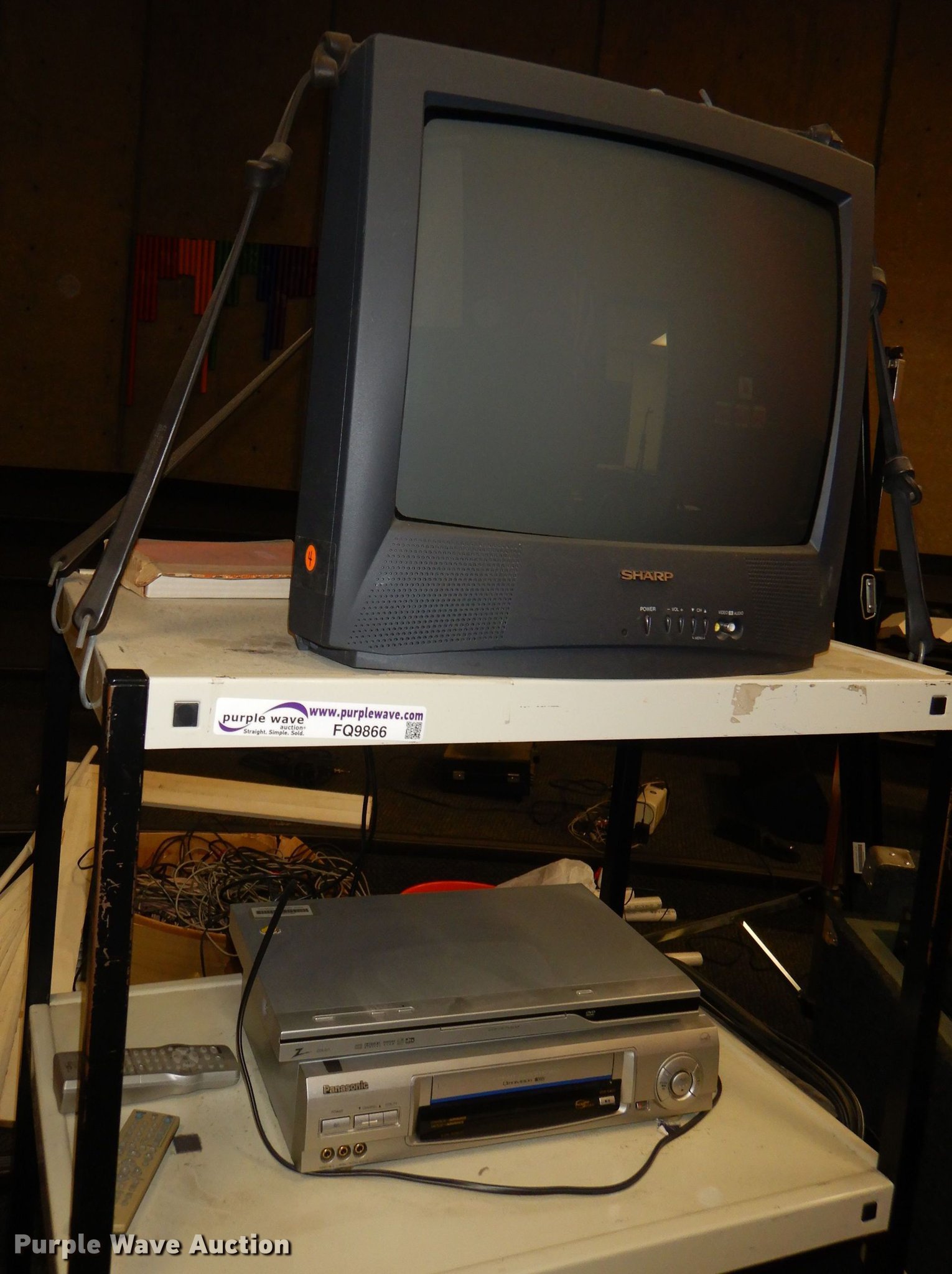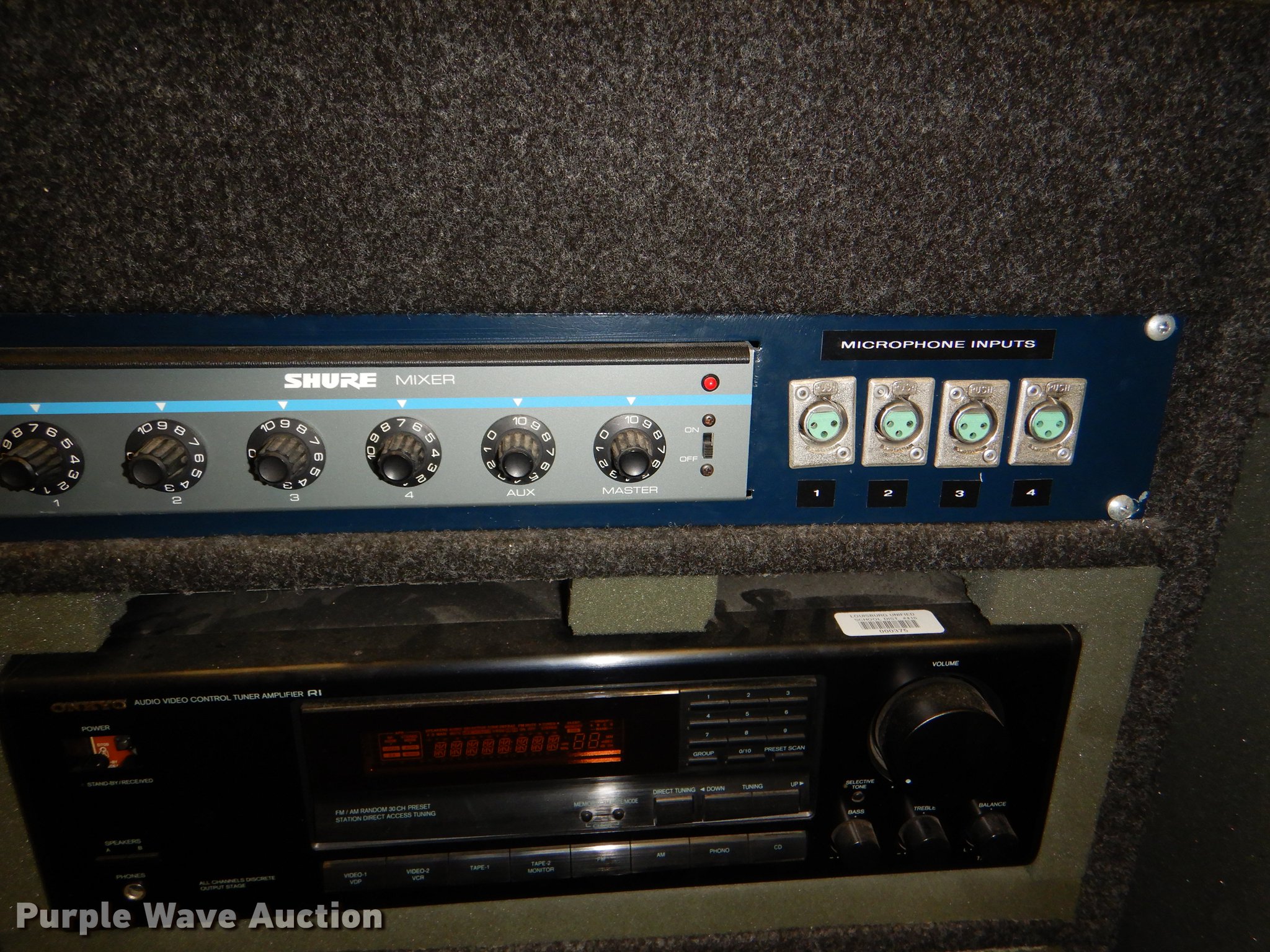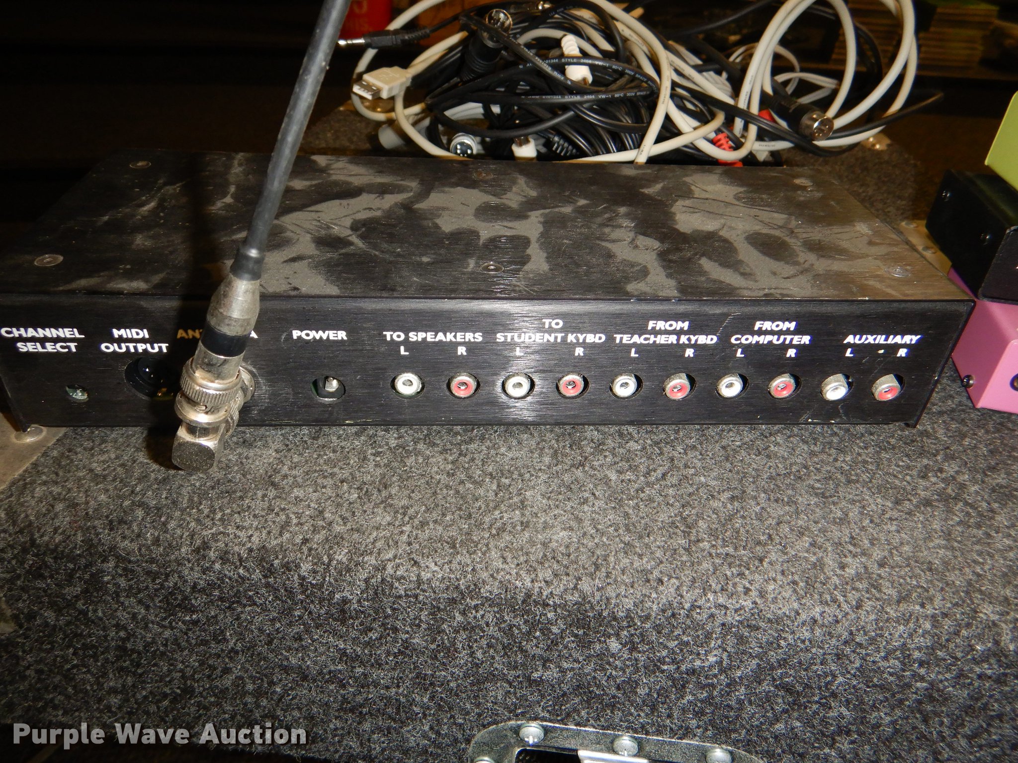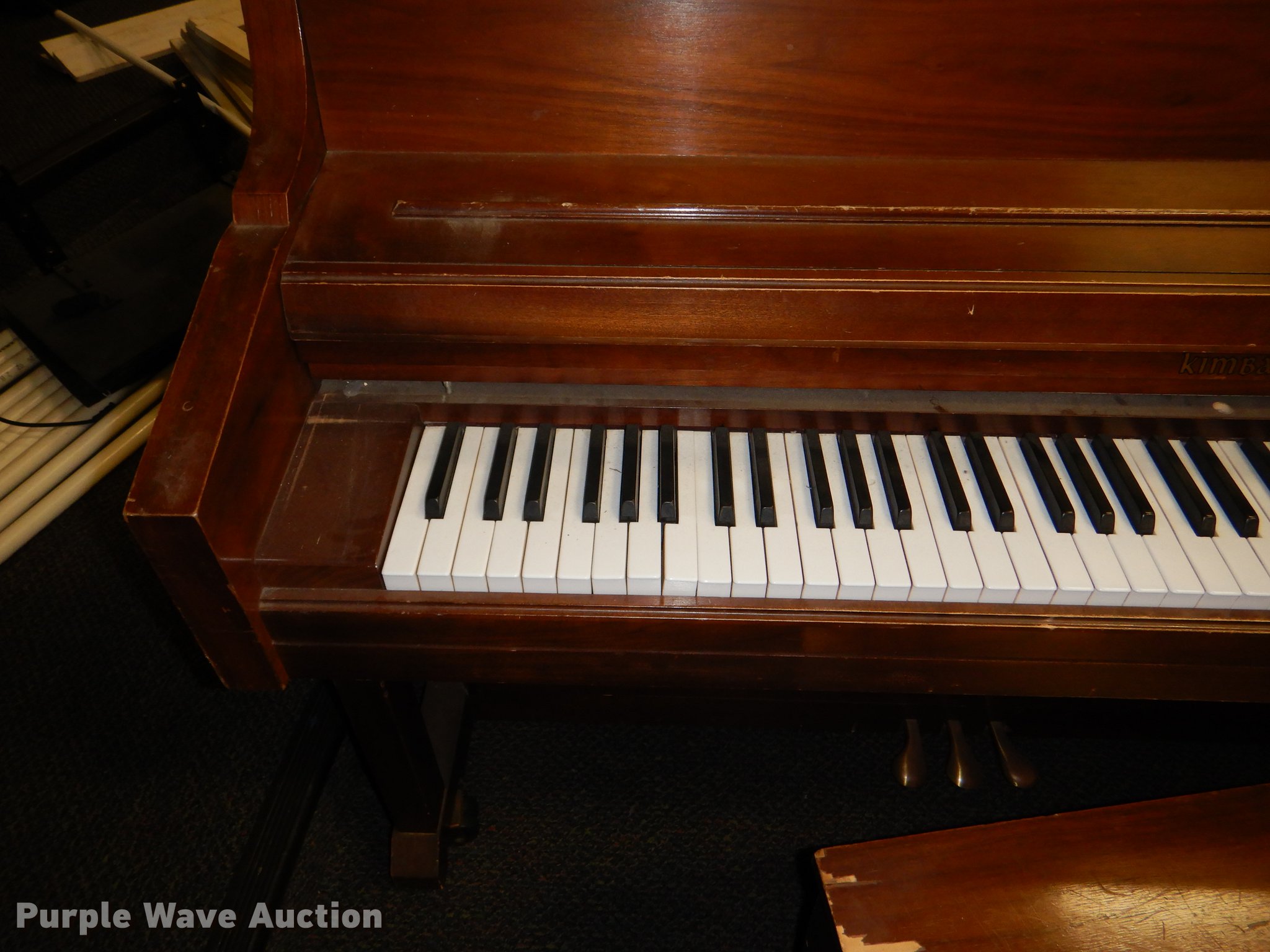 Purple Wave is selling a used Electronics in Kansas. This item is a Electronics with the following: Kimball piano, Bench, Damaged, Serial A79095, Sharp television, Panasonic VHS player, Zenith DVD player, Cart, Realistic speaker, Music In Education MIE-mixer, Peavey microphone, Projector screen, Portable music setup, Onkyo turn table, Shure mixer, Onkyo amp, Onkyo DVD/VHS player, Kipsch speaker and more