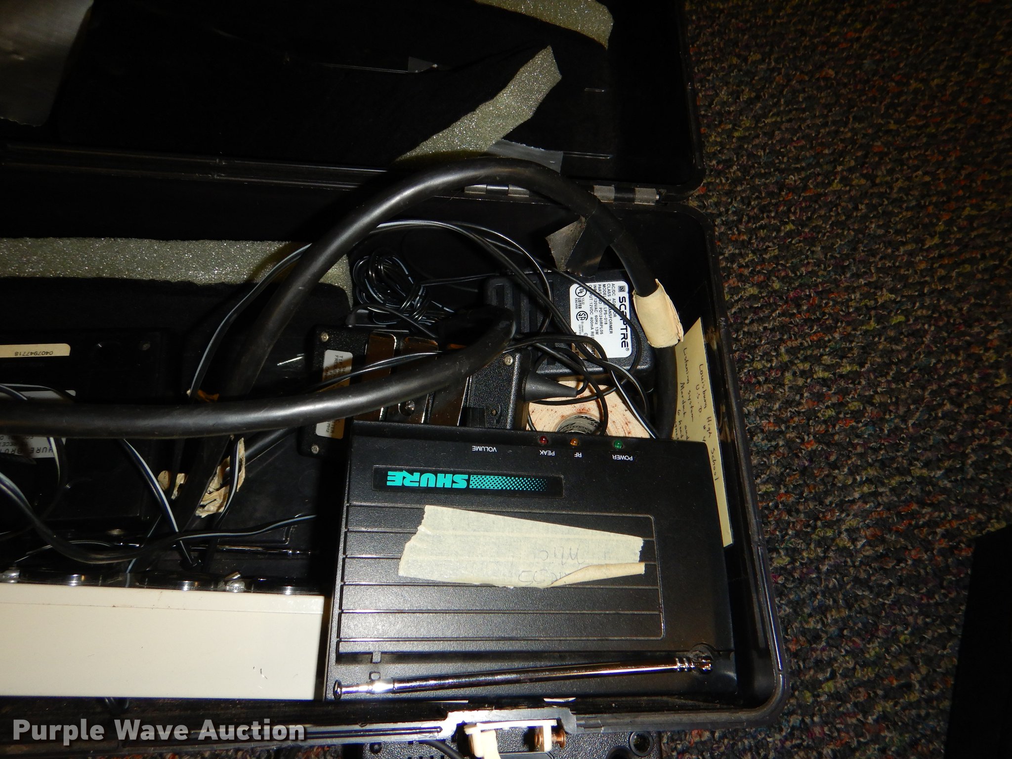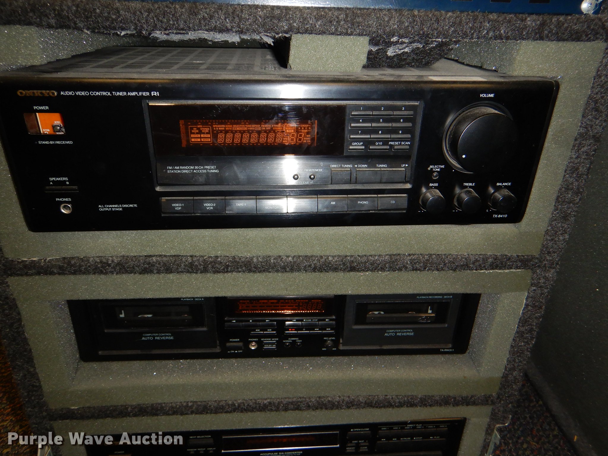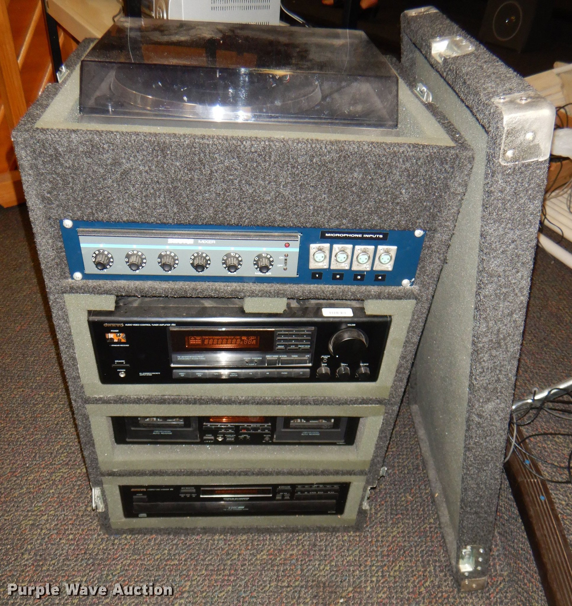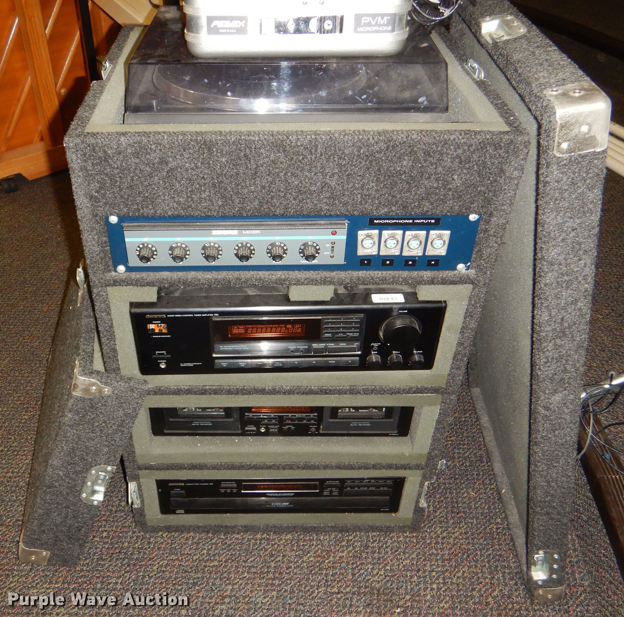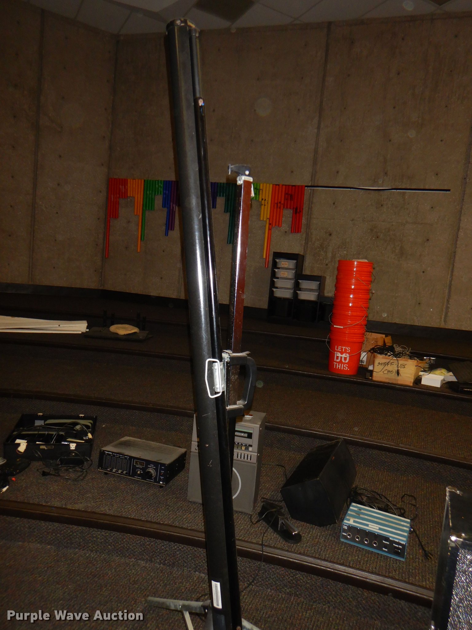 Purple Wave is selling a used Electronics in Kansas. This item is a Electronics with the following: Kimball piano, Bench, Damaged, Serial A79095, Sharp television, Panasonic VHS player, Zenith DVD player, Cart, Realistic speaker, Music In Education MIE-mixer, Peavey microphone, Projector screen, Portable music setup, Onkyo turn table, Shure mixer, Onkyo amp, Onkyo DVD/VHS player, Kipsch speaker and more