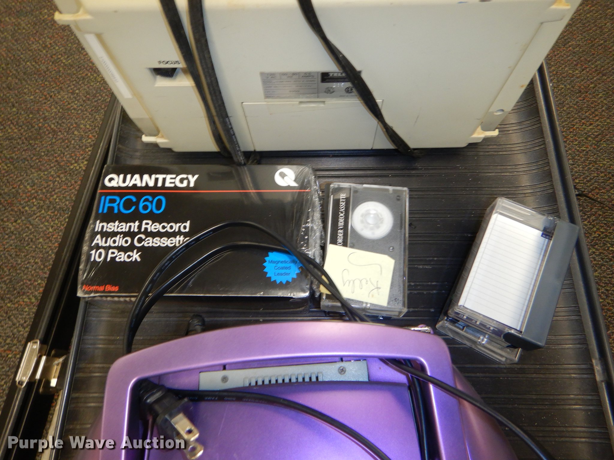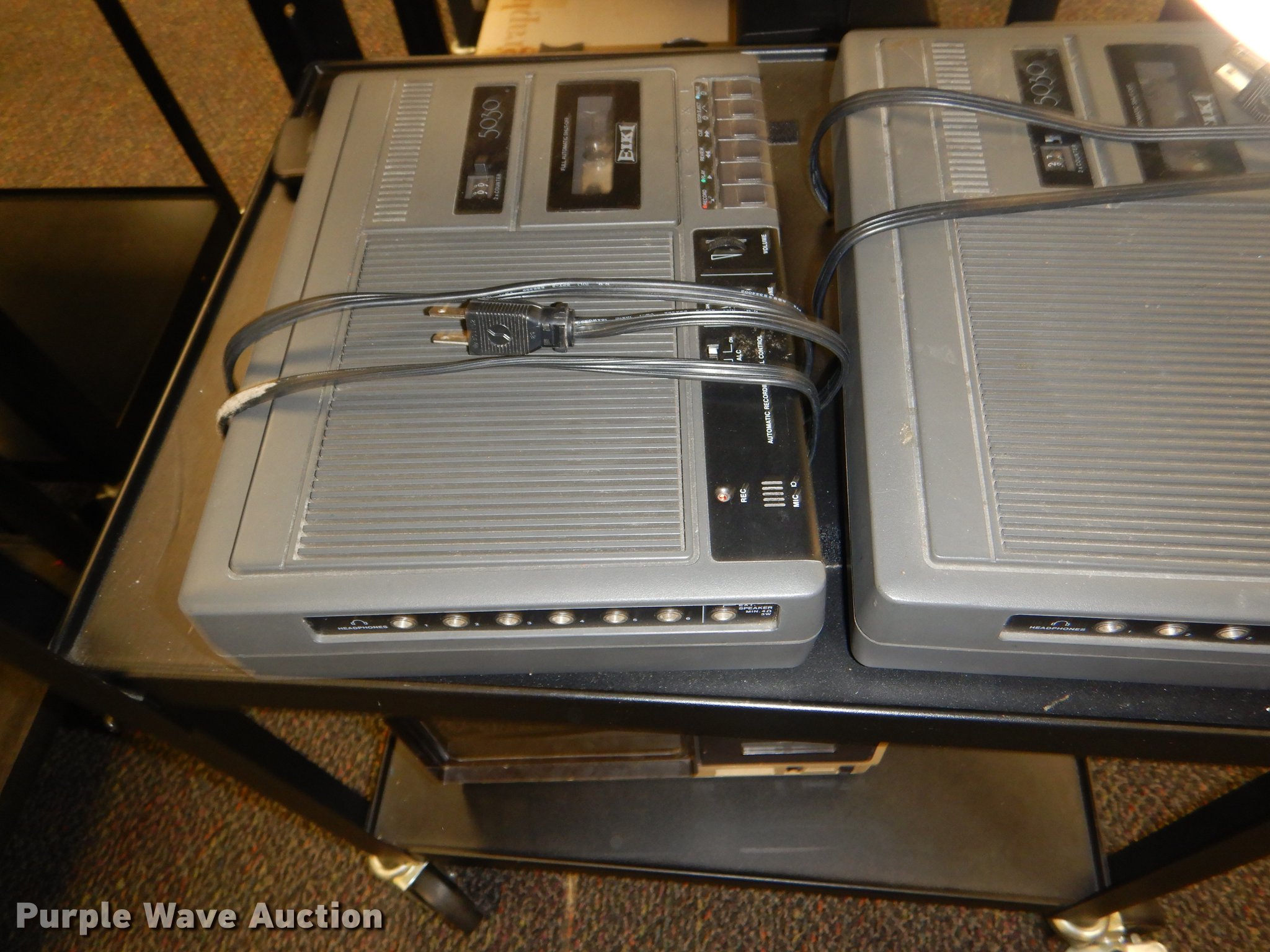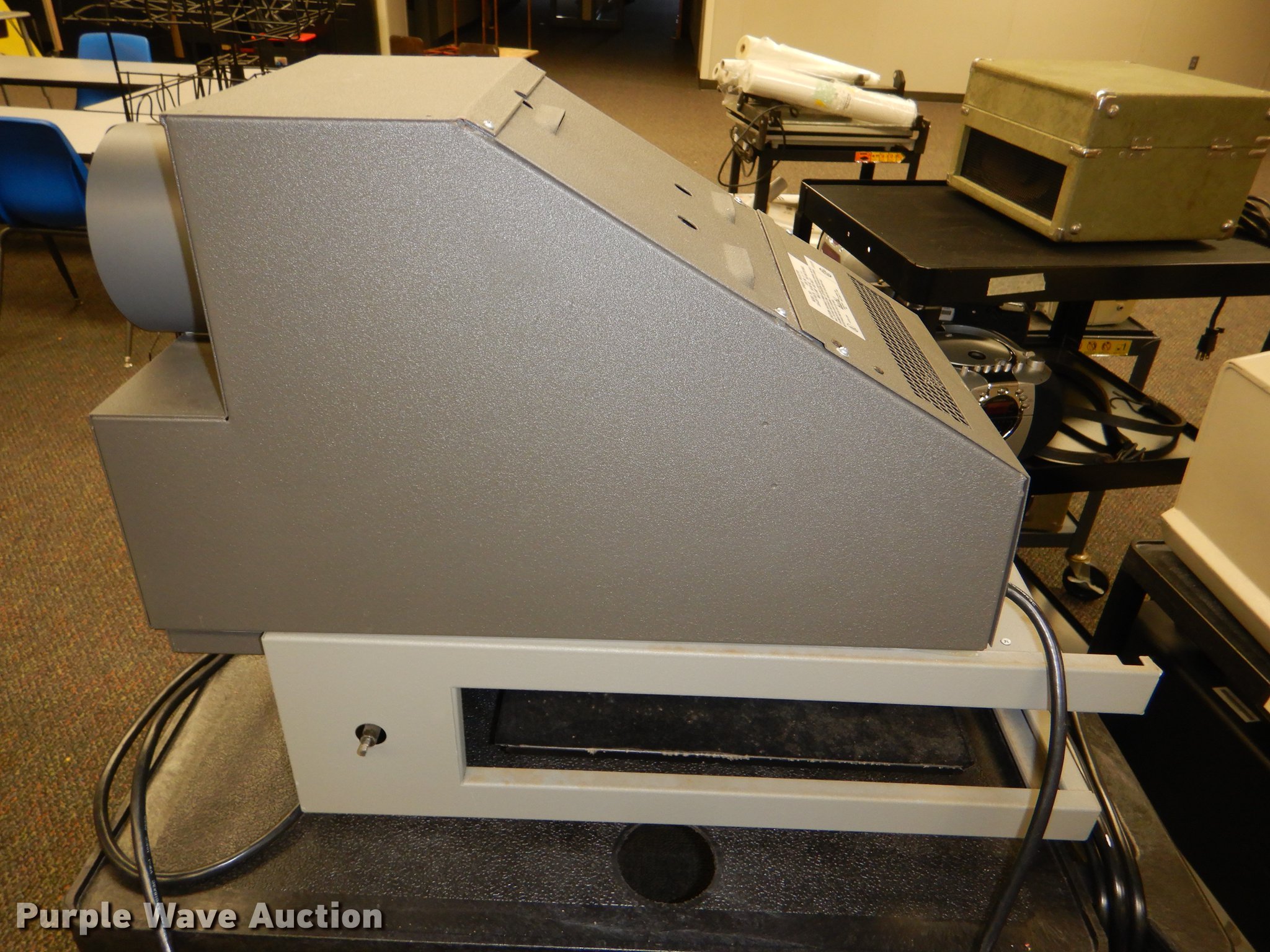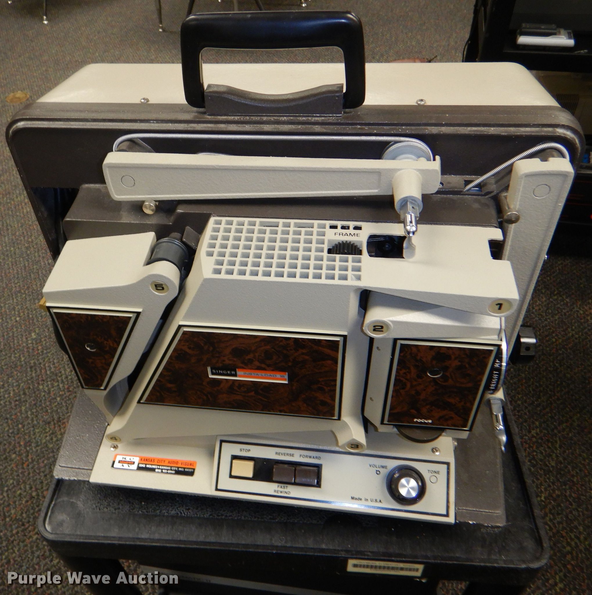Purple Wave is selling a used Electronics in Kansas. This item is a Electronics with the following: Cassette player, (2) AudioTronics 300E record players, (3) music players, Cassette tapes and players, Projector screen, Easel stand, Singer and Telex Microfische readers, VHS players, Kodiak Ektagraphic III projector, Headphones, Speakers, Leaflet stand and more, Carts not included