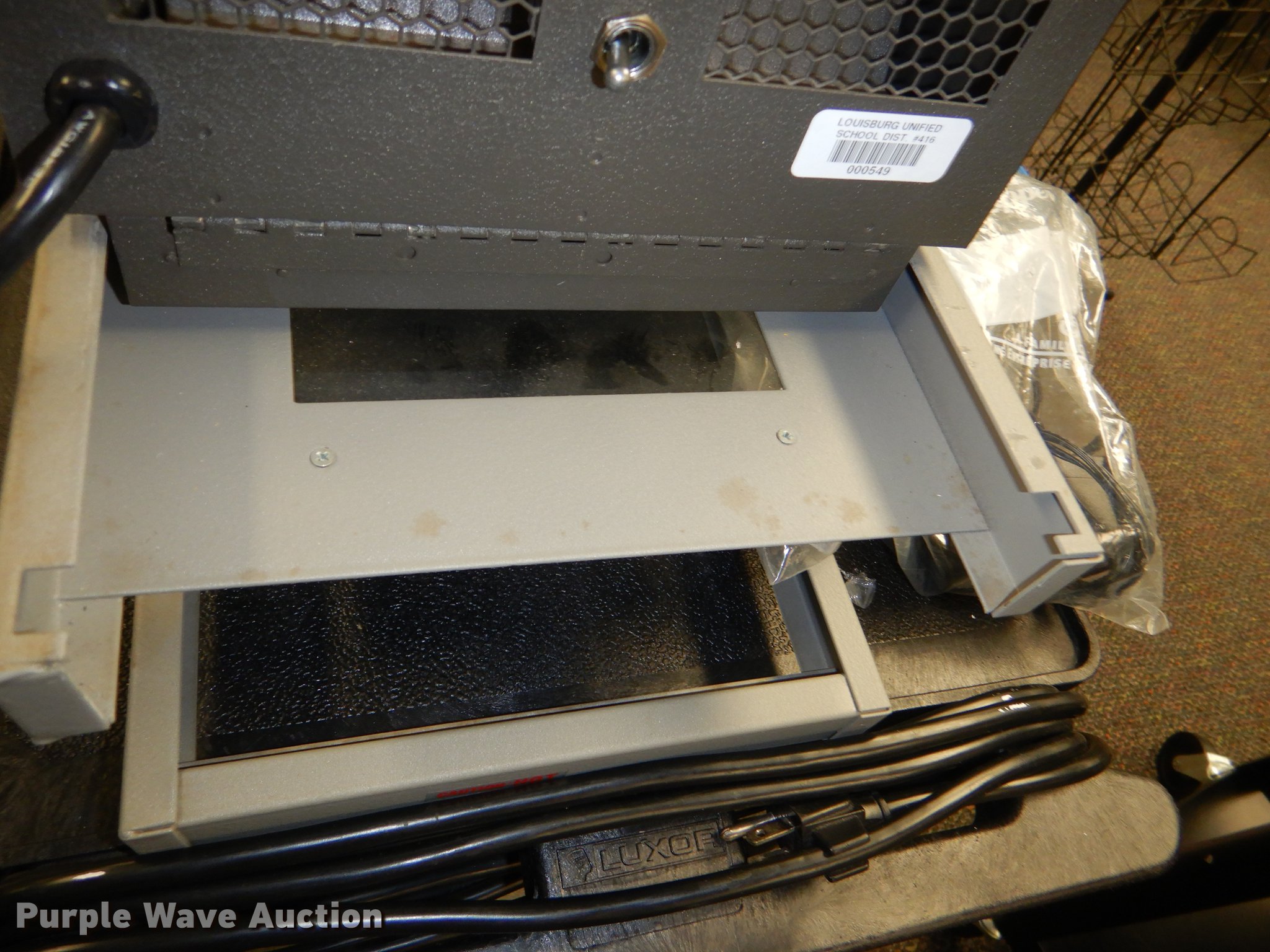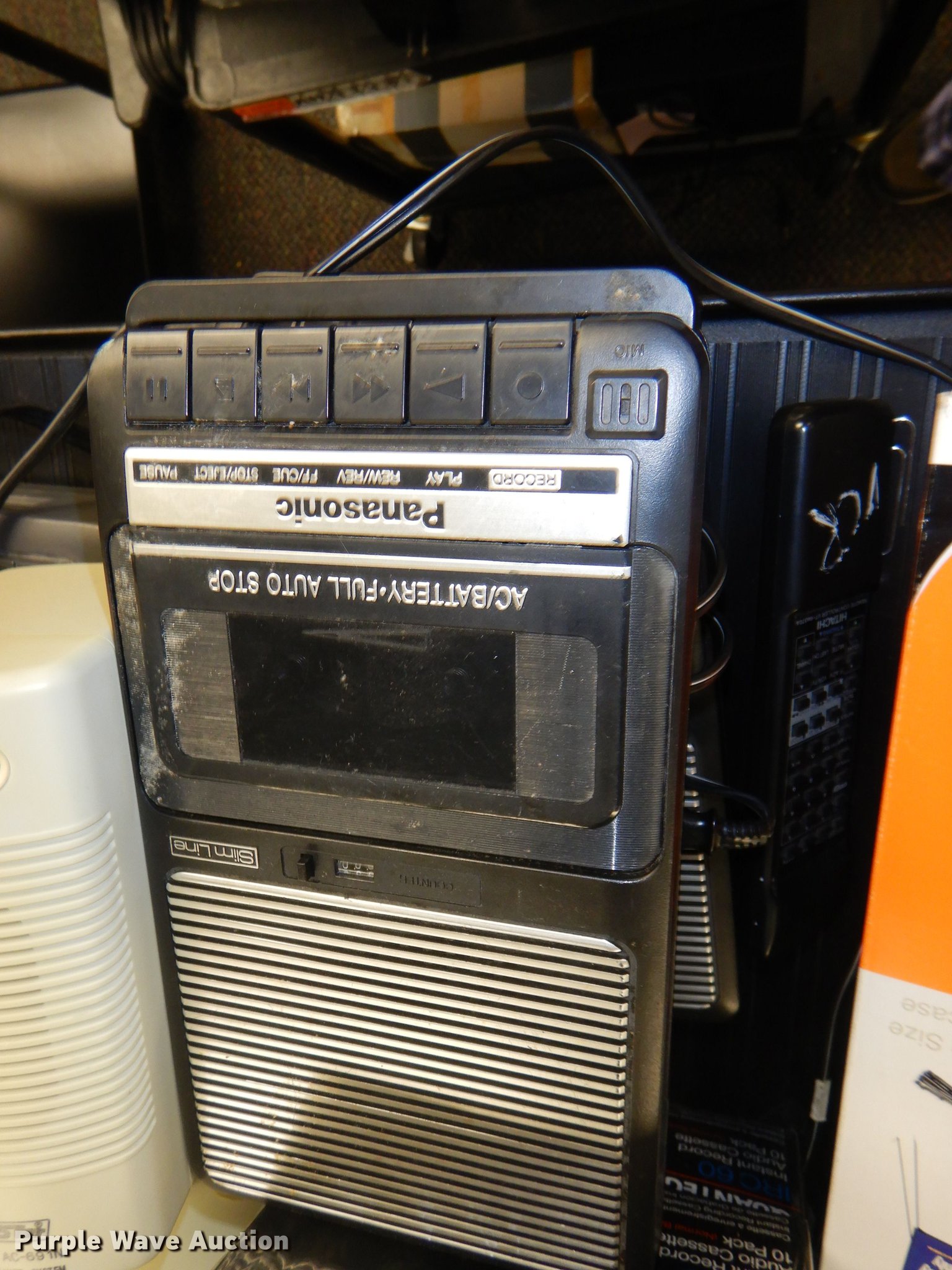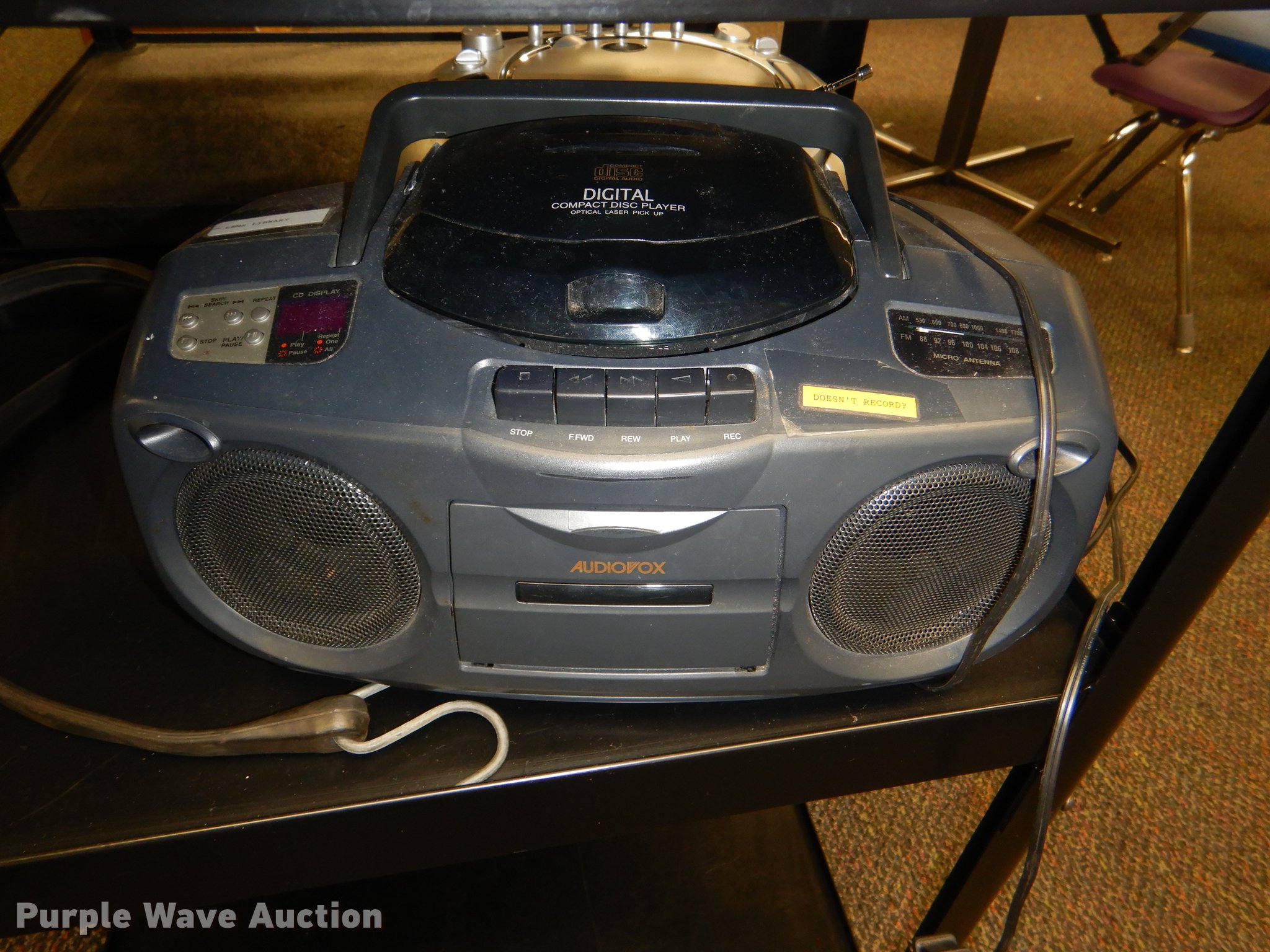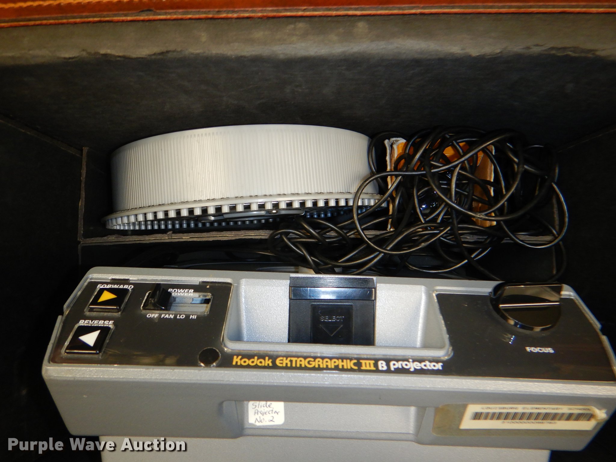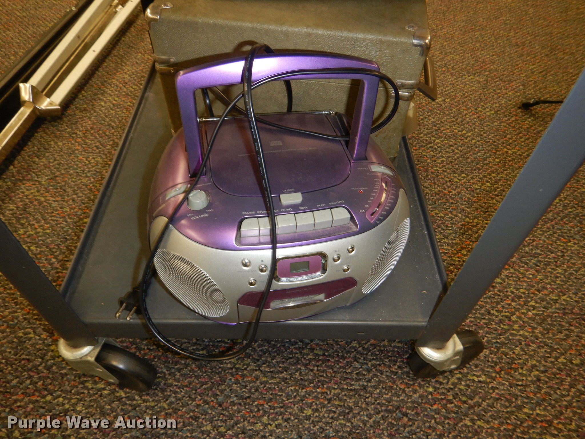 Purple Wave is selling a used Electronics in Kansas. This item is a Electronics with the following: Cassette player, (2) AudioTronics 300E record players, (3) music players, Cassette tapes and players, Projector screen, Easel stand, Singer and Telex Microfische readers, VHS players, Kodiak Ektagraphic III projector, Headphones, Speakers, Leaflet stand and more, Carts not included