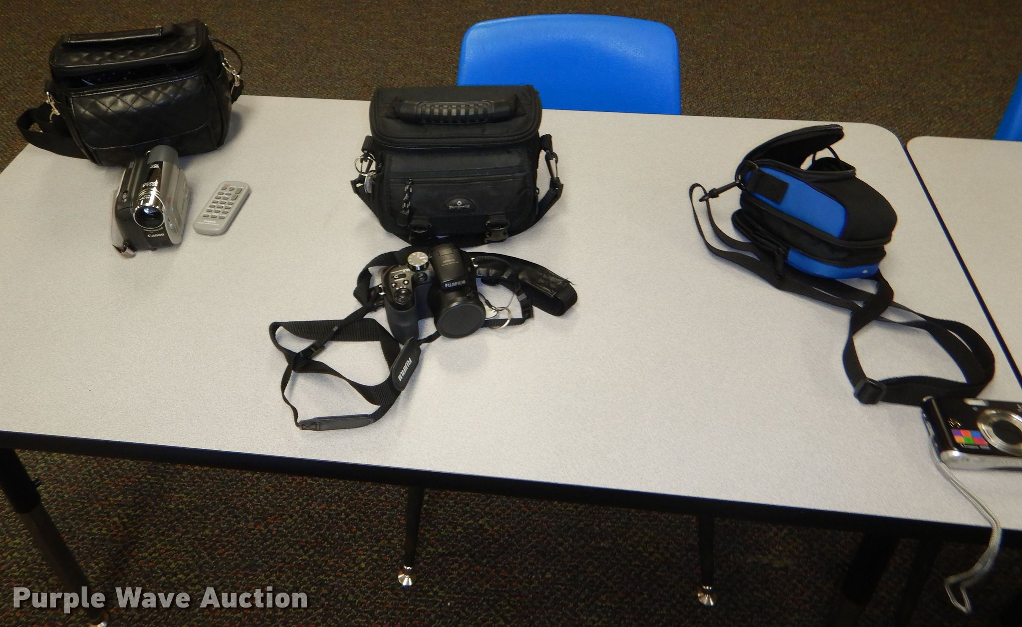 Purple Wave is selling a used Electronics in Kansas. This item is a Electronics with the following: (6) cameras, (5) camcorders, (3) tripods