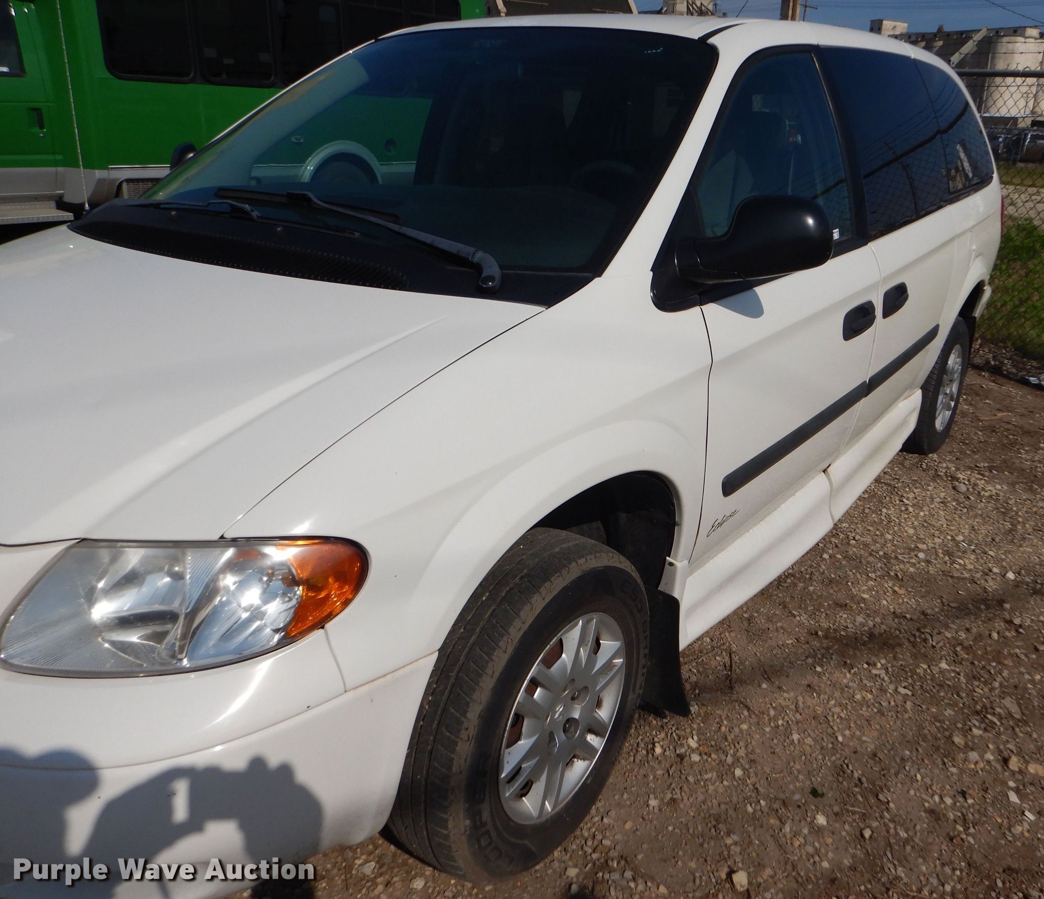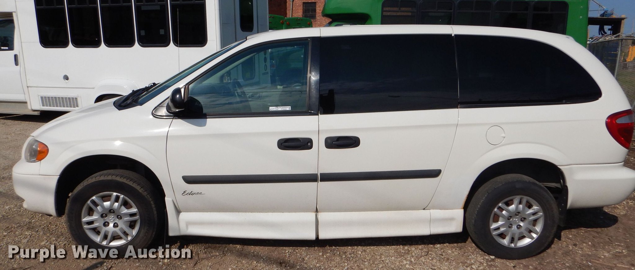 Purple Wave is selling a used Passenger Vehicle in Kansas. This item is a 2005 Dodge Grand Caravan Eclipse handicap accessible van with the following: 162,495 miles on odometer, 3.3L V6 OHV 12V gas engine, Automatic transmission, AC and heat, Cruise, Power windows and locks, Wheelchair ramp, Manual fold, Wheelchair tie down area, 215/70R15 tires