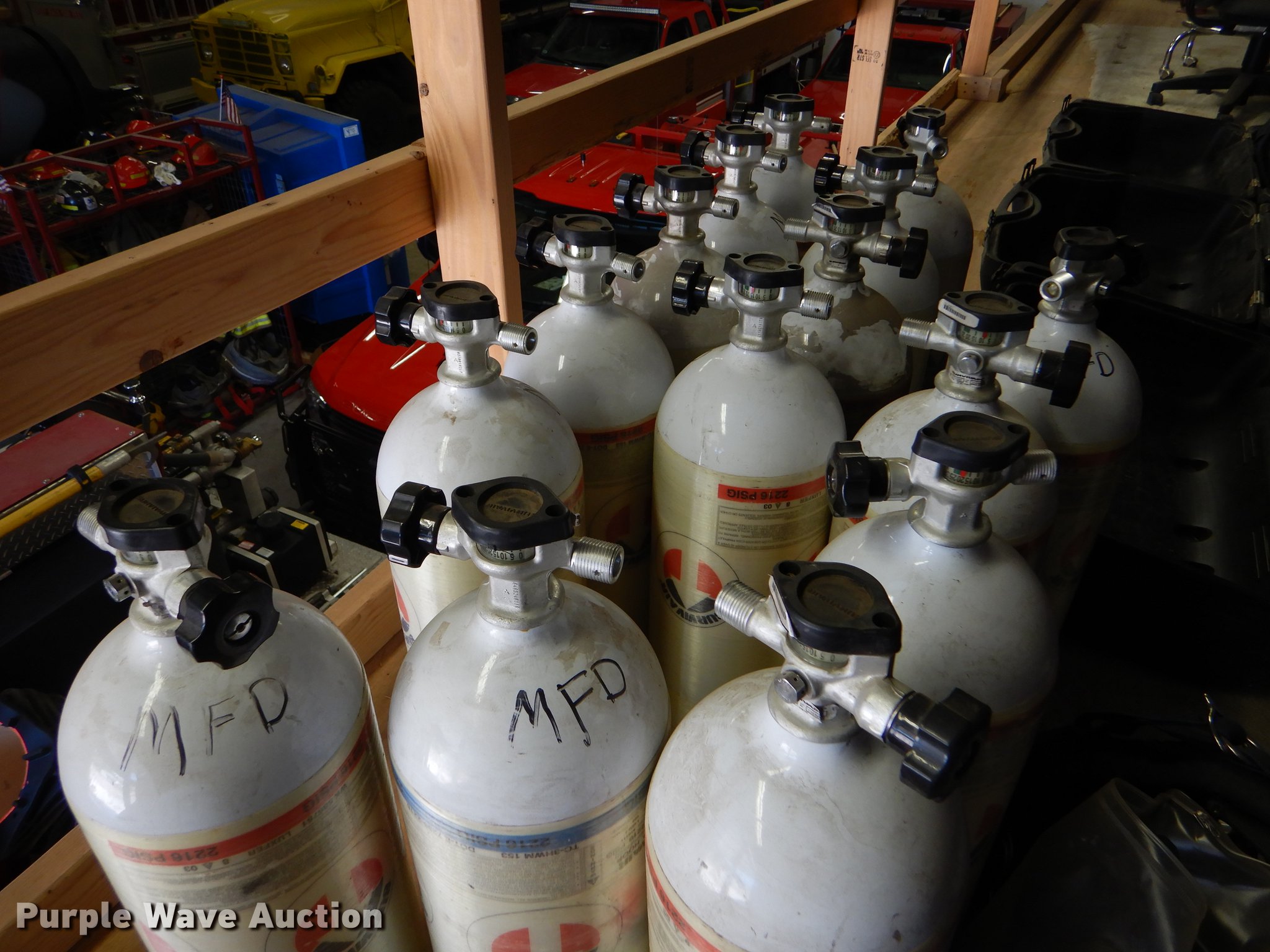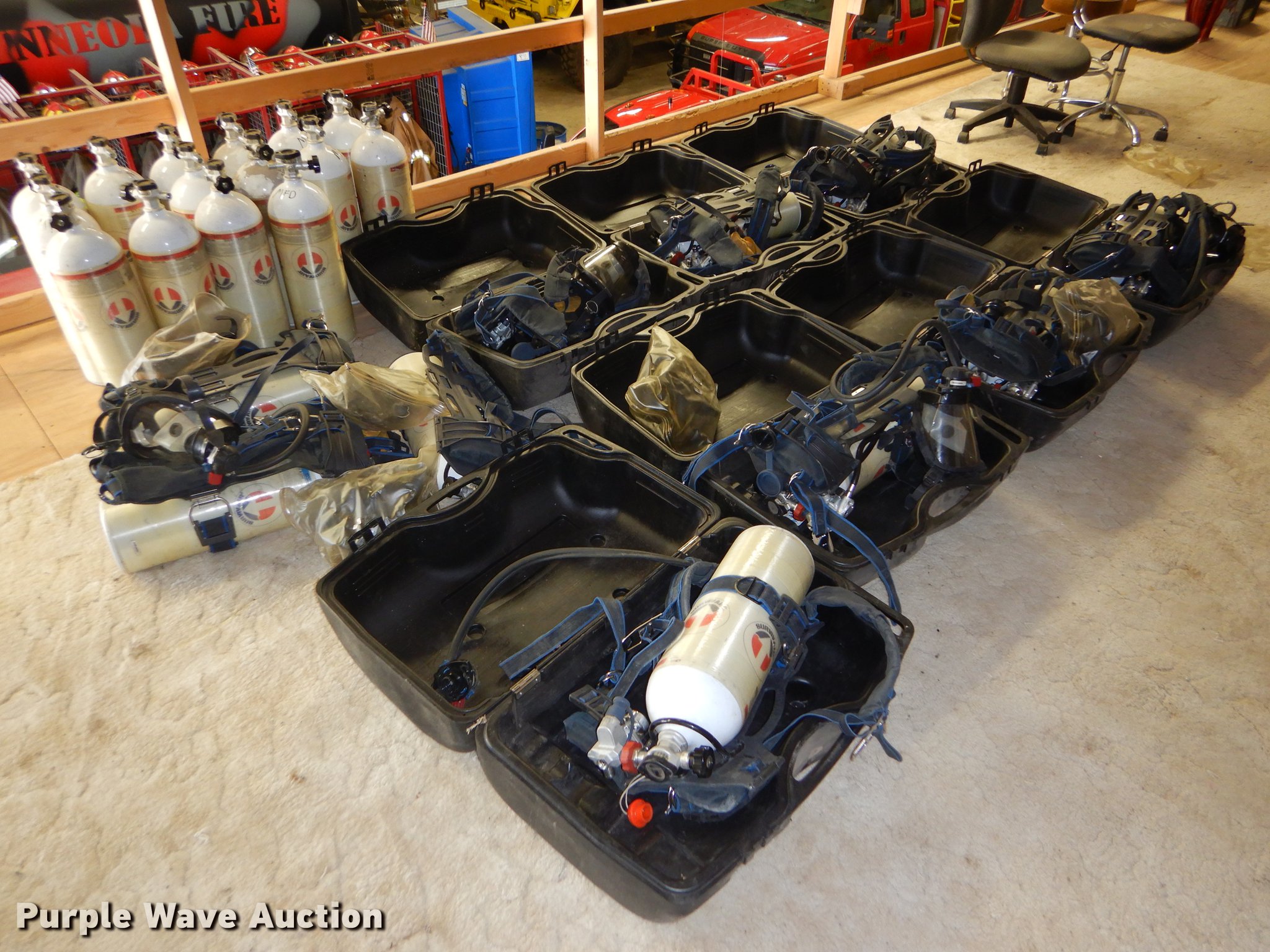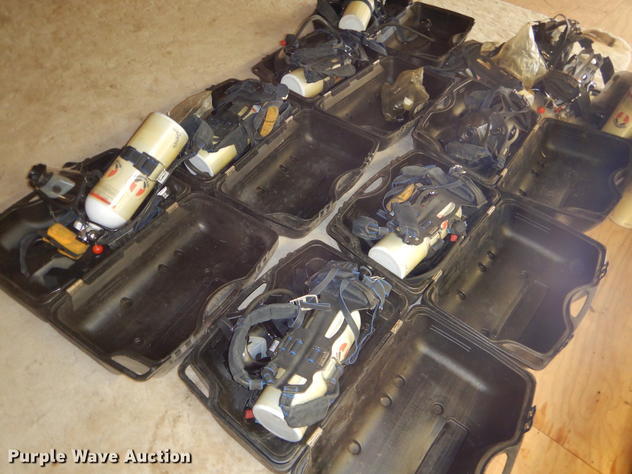 Purple Wave is selling a used Tools in Kansas. This item is a Fire fighting equipment with the following: (10) Survivair air packs, (24) Survivair air tanks, (7) Surviair plastic cases, Non-certifiable, out of certification