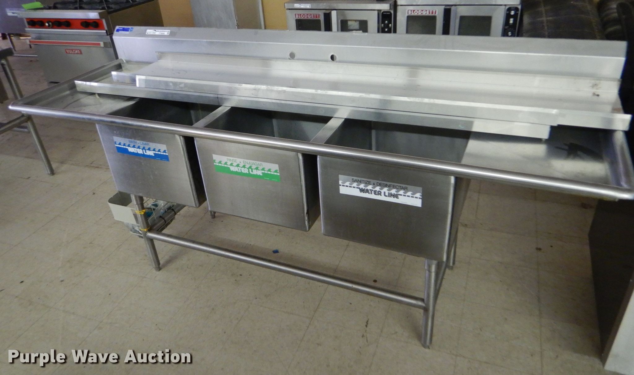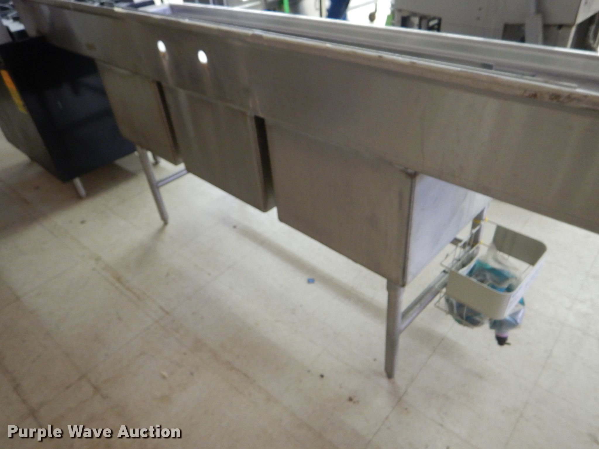 Purple Wave is selling a used Restaurant Equip. in Kansas. This item is a Universal three compartment stainless steel sink with the following: 94"W x 30"D x 36"H