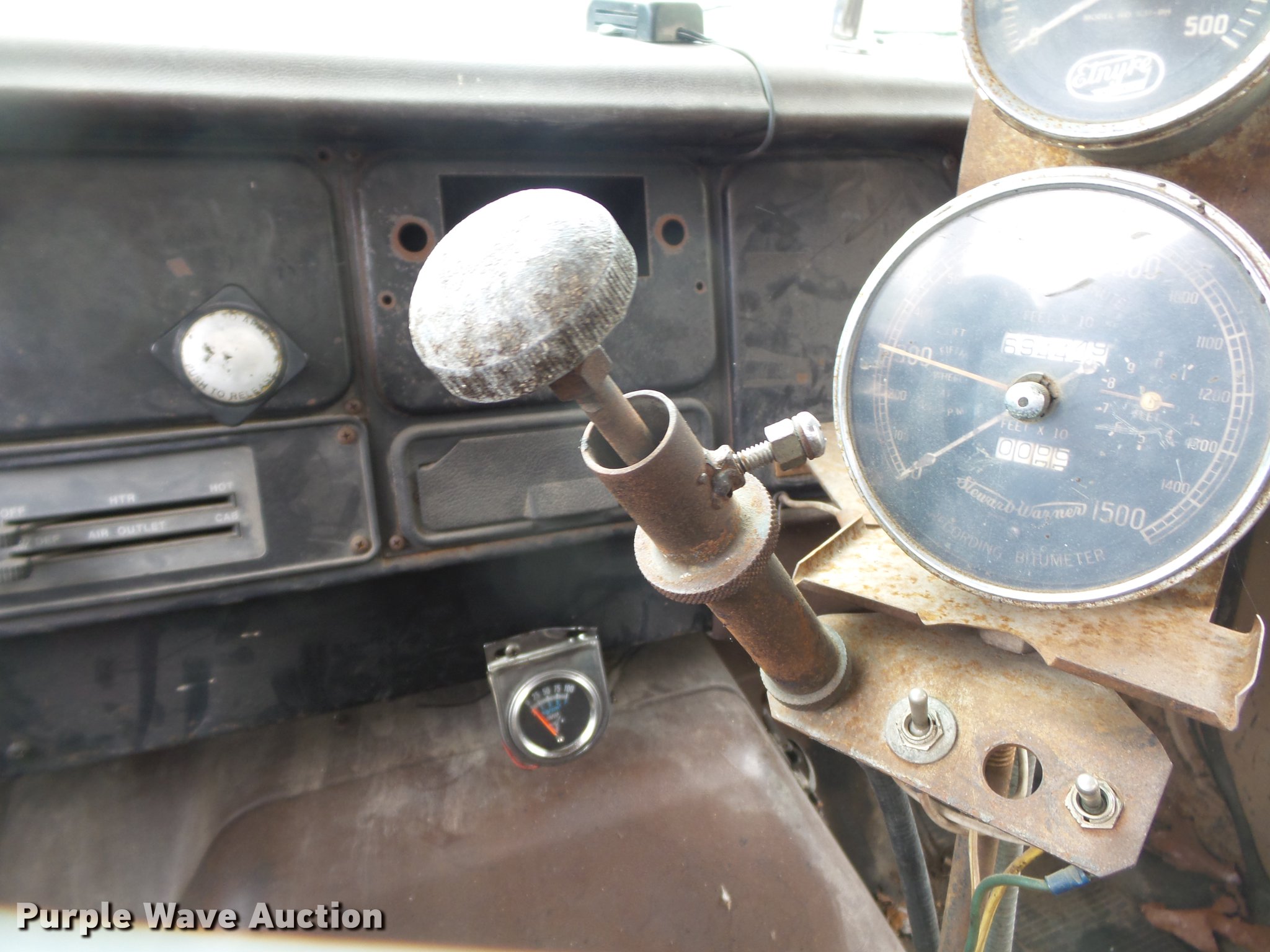 Purple Wave is selling a used Oil Distributor Truck in Missouri. This item is a 1984 International S1900 oil distributor truck with the following: 204,128 miles on odometer, International DT466 six cylinder diesel engine, Spicer Double D 10 speed manual transmission, Single axle, Heat, PTO, Toolbox, ED Etnyre BT oil distributor bed, 1,565 gallon capacity, Propane burner, In-cab controls, Spray wand, 144" folding spray boom, (36) nozzles, Serial J1341, Dual fuel tanks, Spring suspension, Air brakes, 236" wheelbase, 11R22.5 tires
