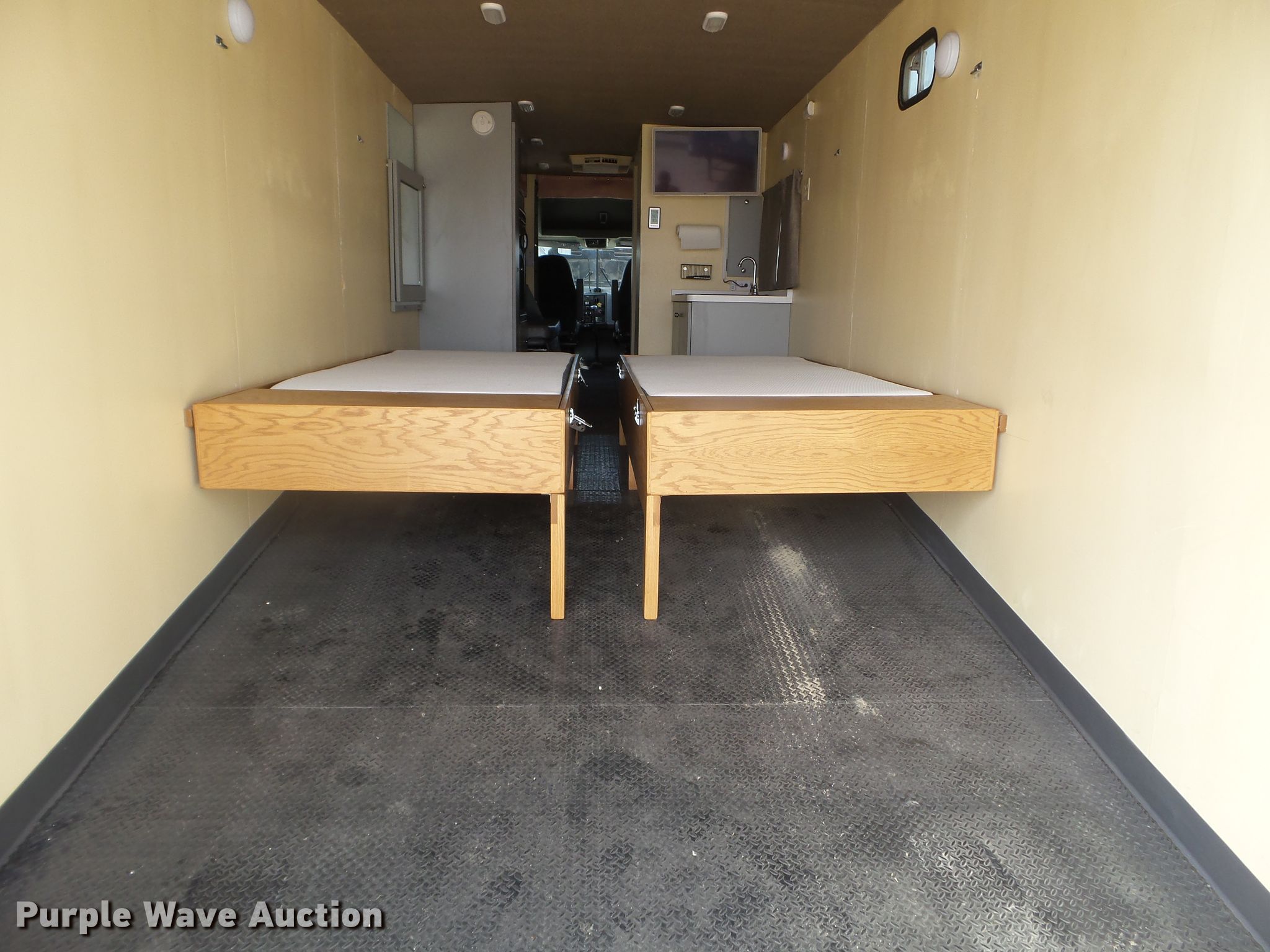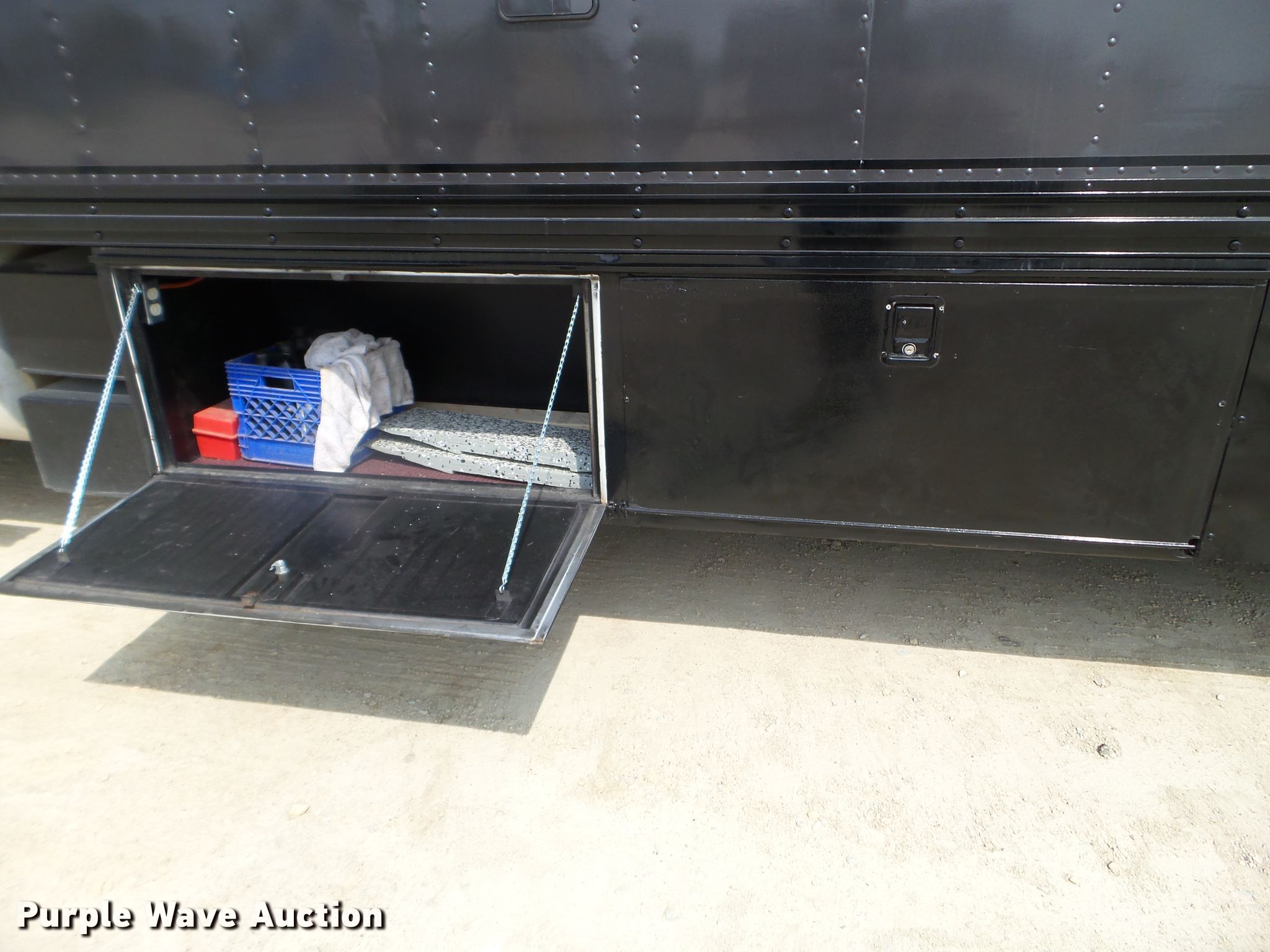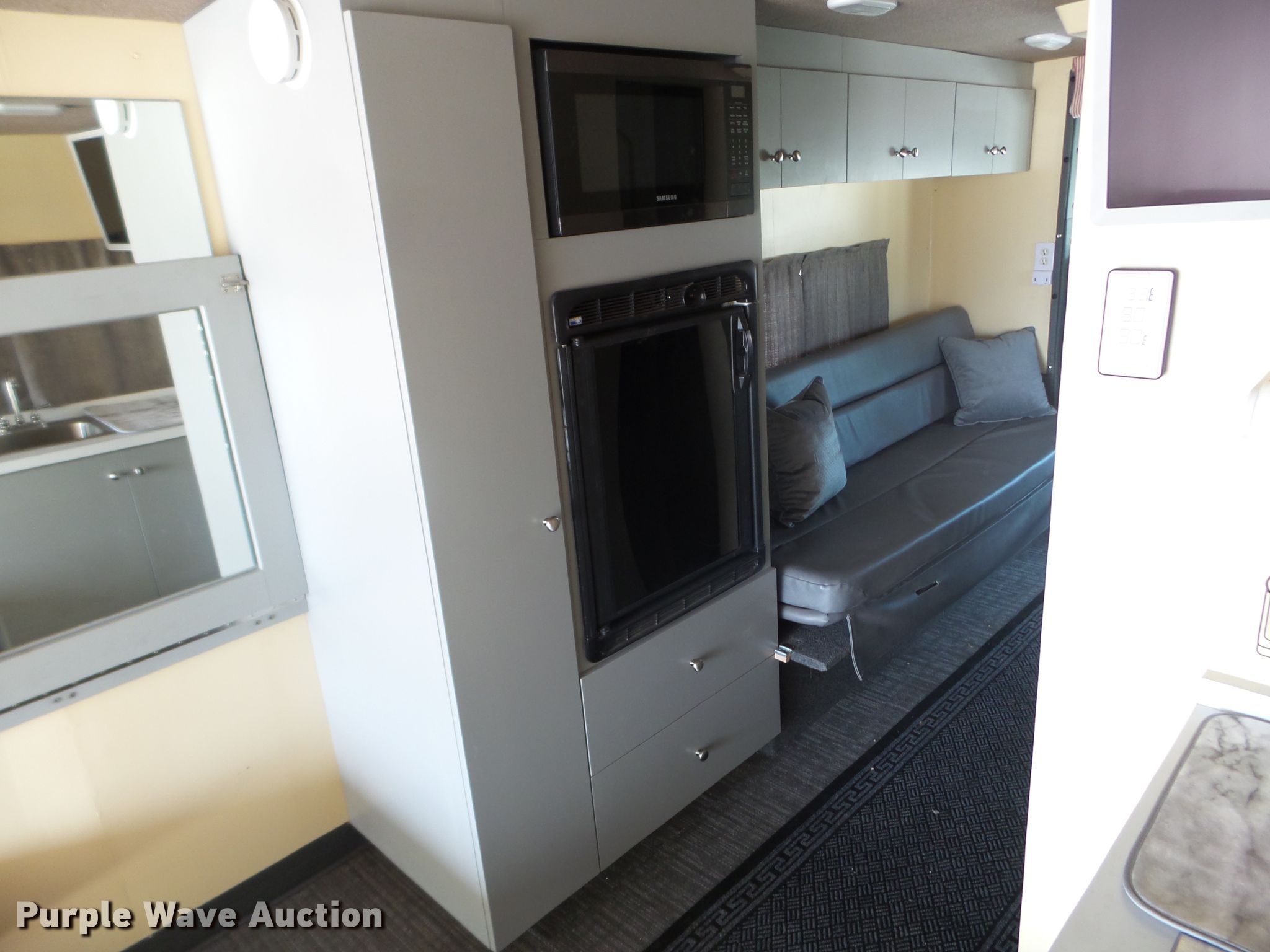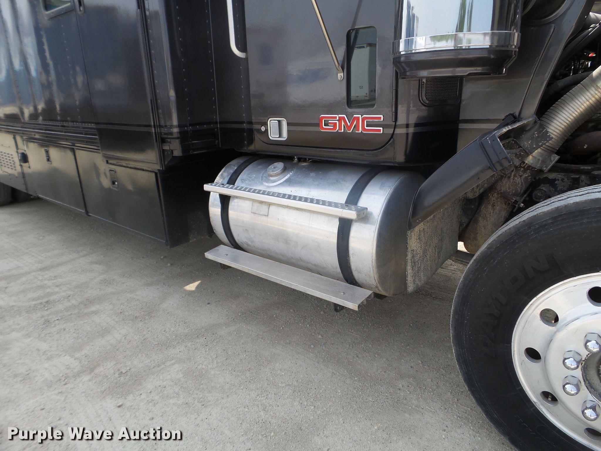 Purple Wave is selling a used RV in Minnesota. This item is a 1980 GMC General toy hauler RV with the following: 358,888 miles on odometer, 8,886 hours on meter, Detroit Diesel 6V92 six cylinder diesel engine, 13 speed manual transmission, Single axle, Cruise, Kitchen, Sink, Refrigerator, Microwave, Living room table, Bathroom, (3) twin beds, Televinsion, AC unit, Rear ramp door, Onan 408F-1R160004 generator, Gas engine, 11R24.5 tires, GVWR 48,460 lbs