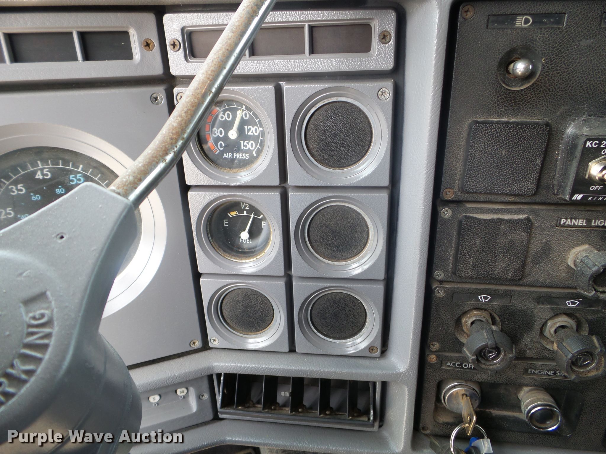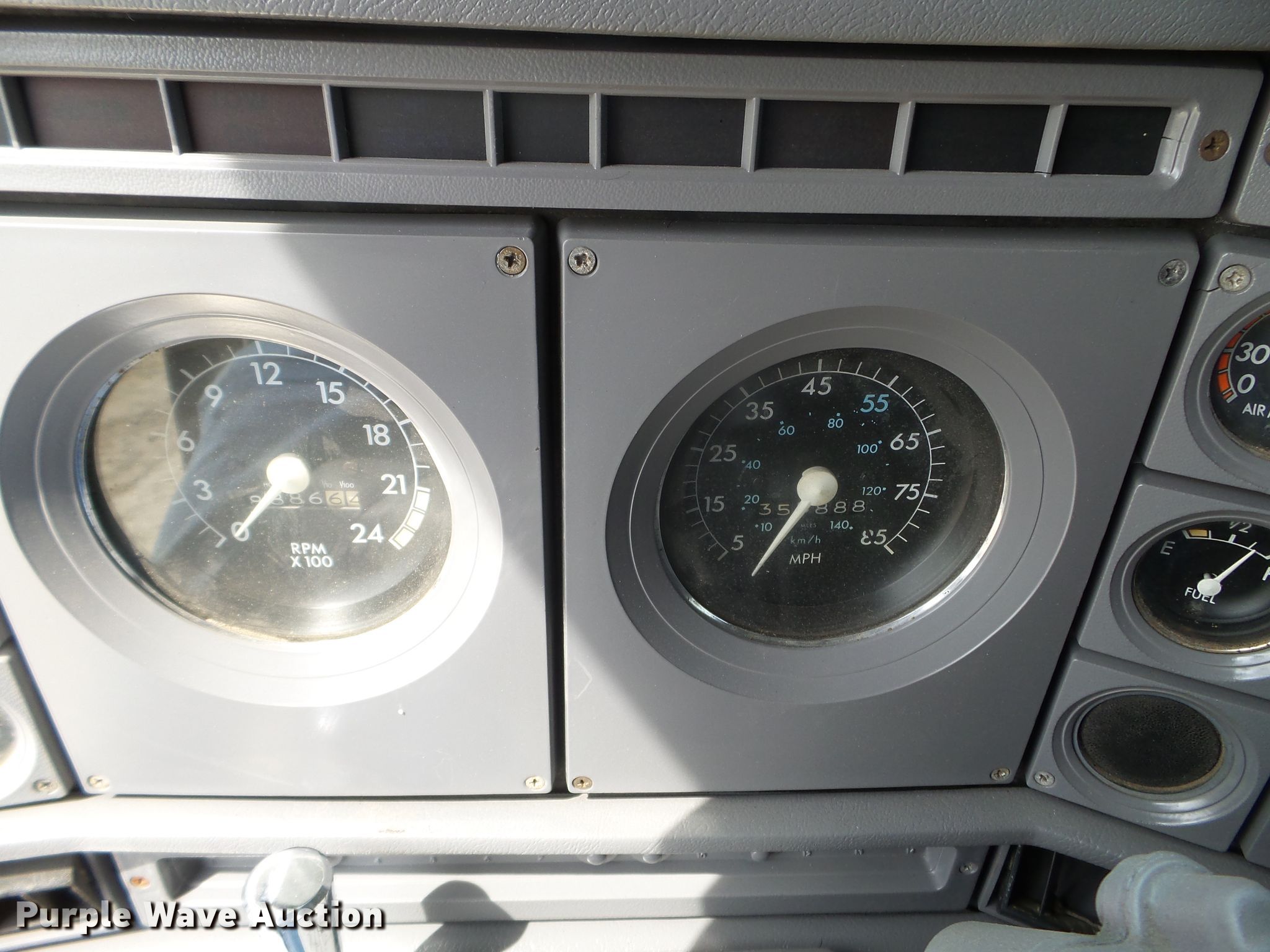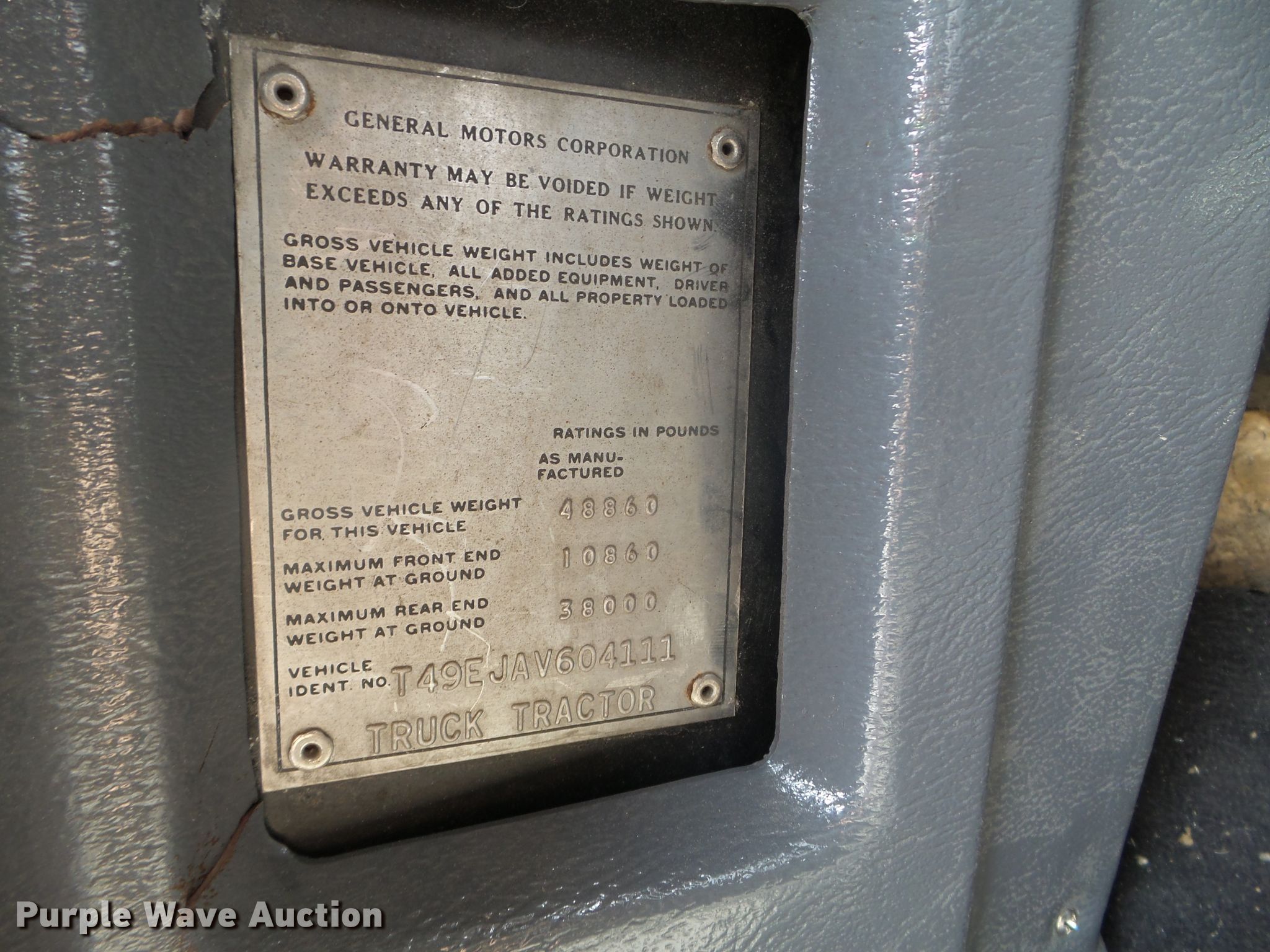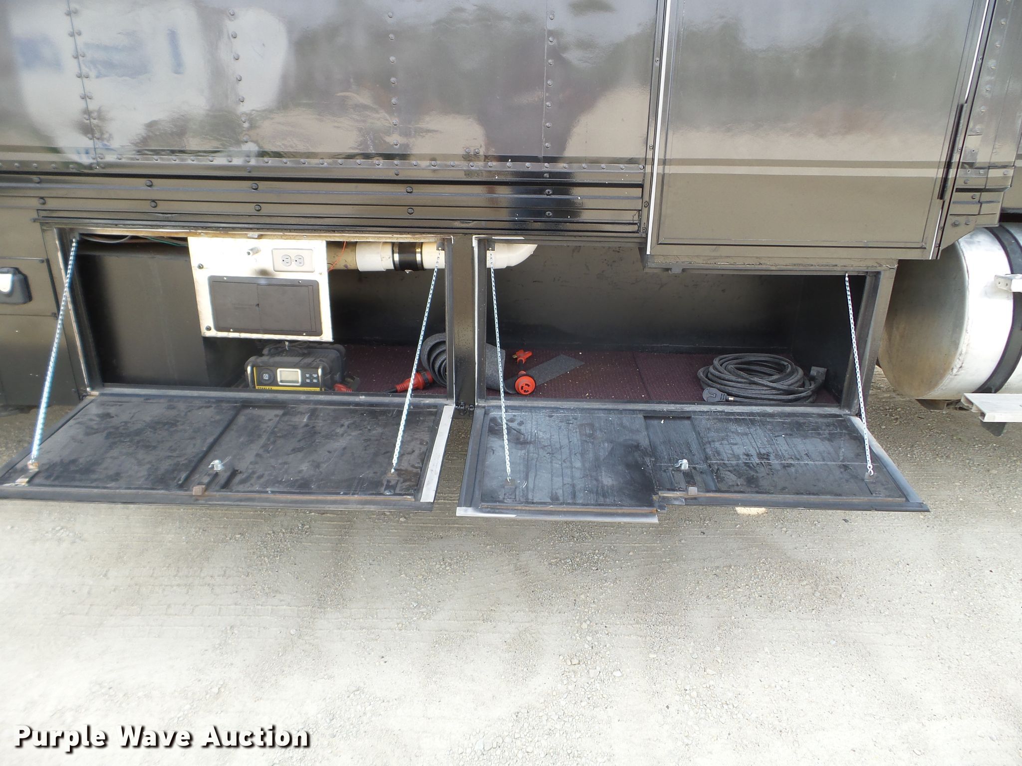 Purple Wave is selling a used RV in Minnesota. This item is a 1980 GMC General toy hauler RV with the following: 358,888 miles on odometer, 8,886 hours on meter, Detroit Diesel 6V92 six cylinder diesel engine, 13 speed manual transmission, Single axle, Cruise, Kitchen, Sink, Refrigerator, Microwave, Living room table, Bathroom, (3) twin beds, Televinsion, AC unit, Rear ramp door, Onan 408F-1R160004 generator, Gas engine, 11R24.5 tires, GVWR 48,460 lbs