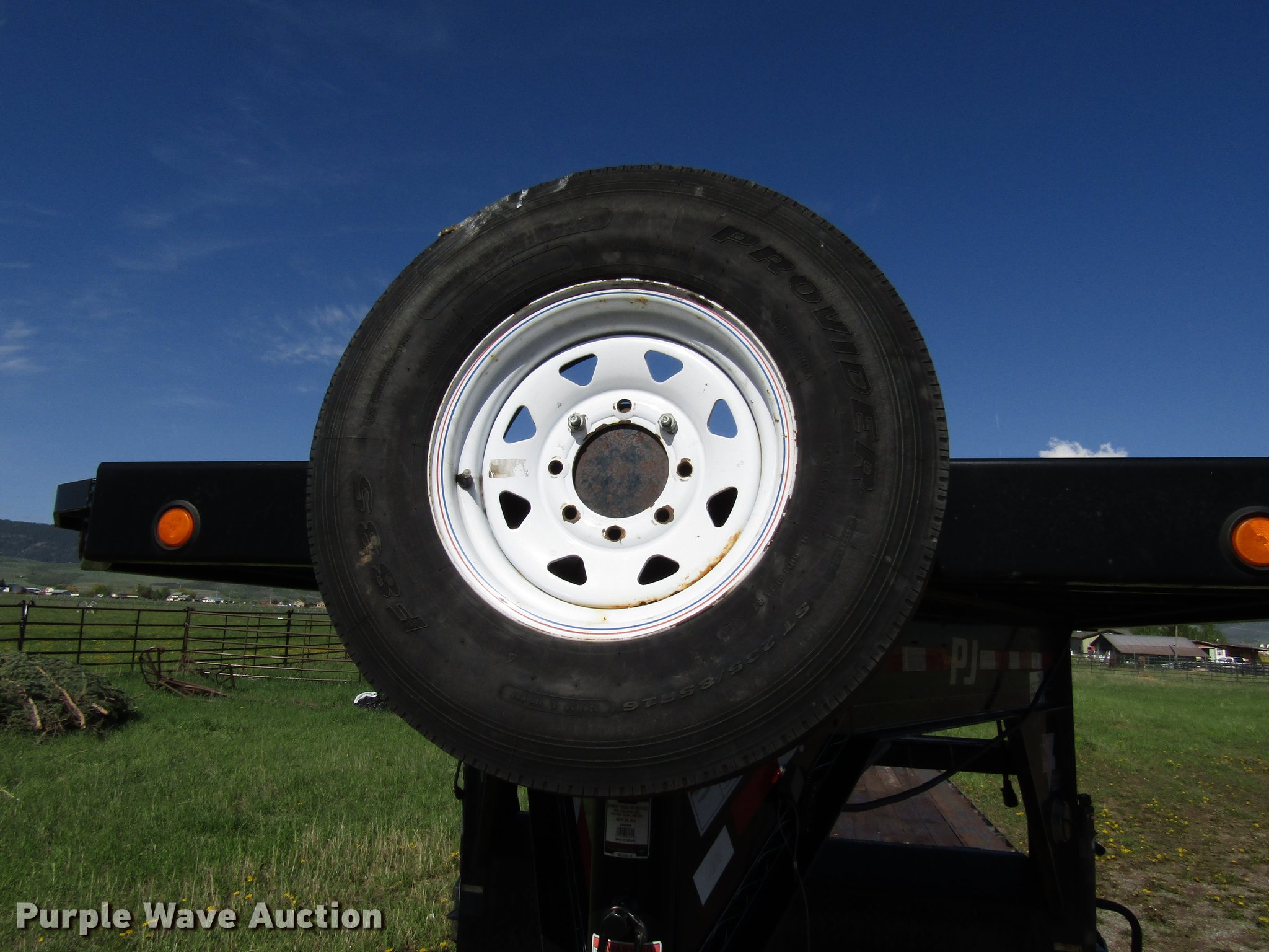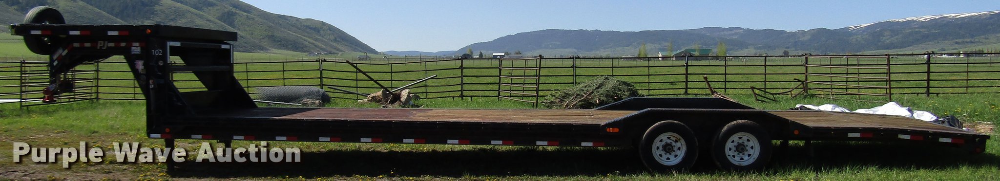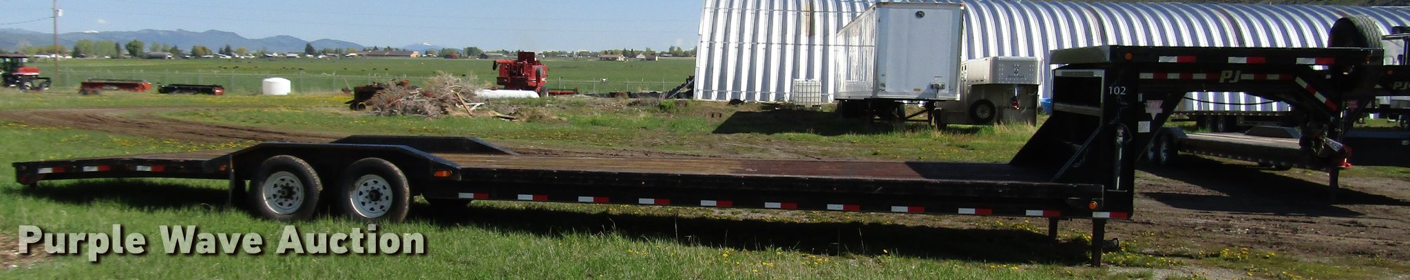 Purple Wave is selling a used Equip. Trailer in Wyoming. This item is a 2015 PJ drop deck equipment trailer with the following: 44'L x 101"W overall, 96"L top deck, 32'L main deck, 4' tail length, 6.5'L ramps, Wood deck, Dual leg landing gear, Spring suspension, Electric over hydraulic brakes, Tandem axle, Steel wheels, 235/85R16 tires, GVWR 15,800 lbs, GAWR 7,000 lbs