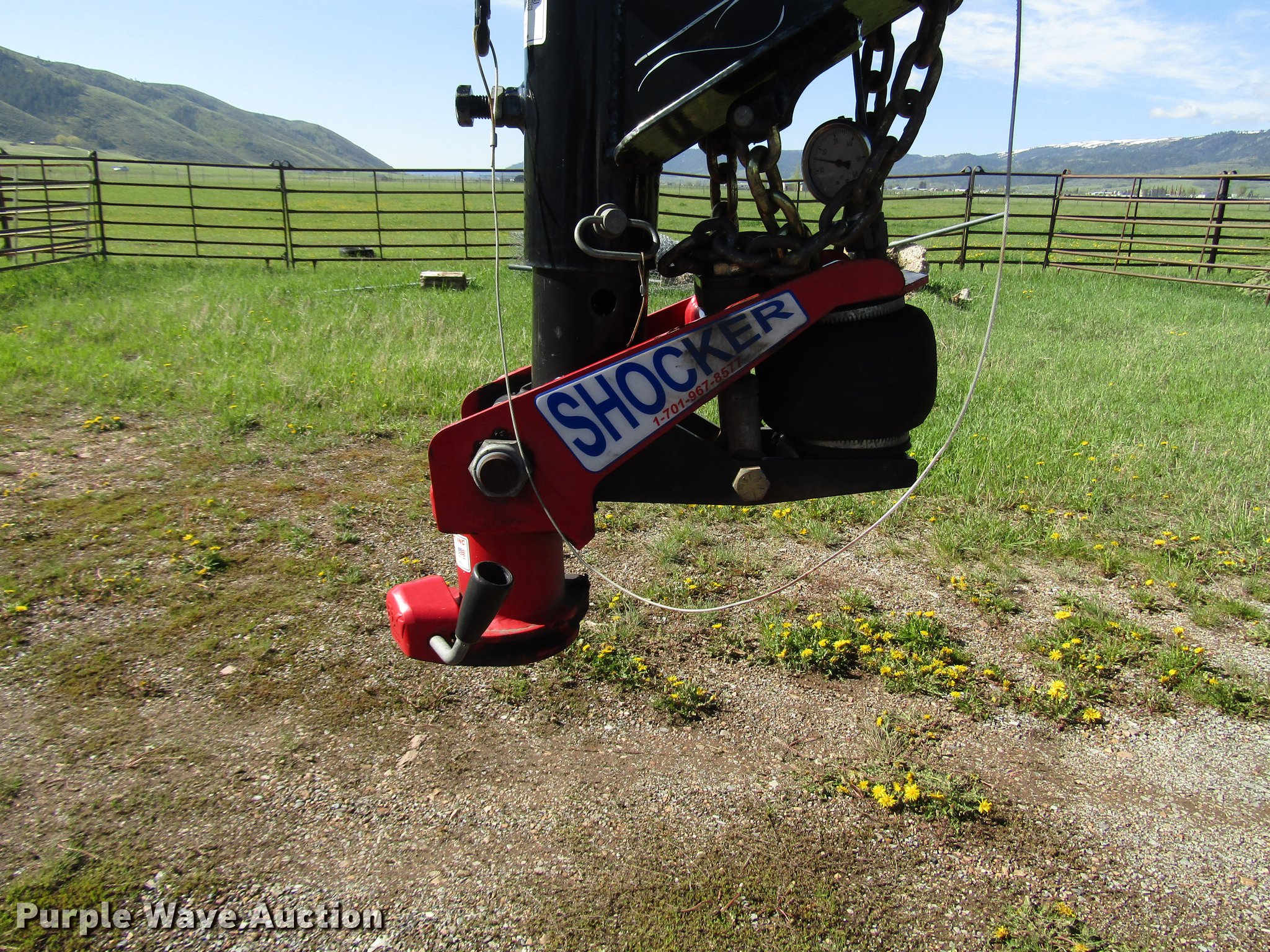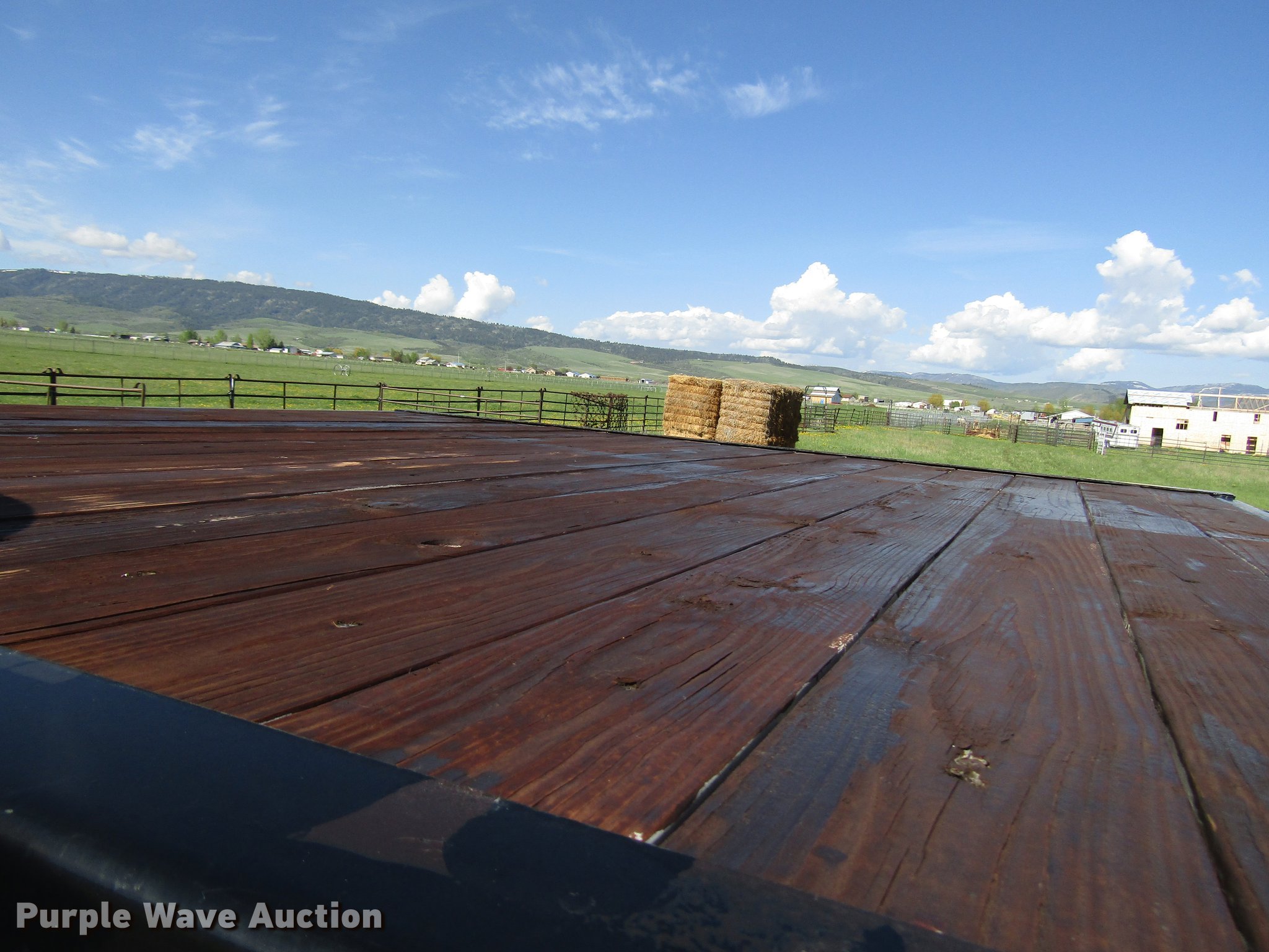 2015 PJ drop deck equipment trailer. 44'L x 101"W overall, 96"L top deck, 32'L main deck, 4' tail length, 6.5'L ramps, Wood deck, Dual leg landing gear, Spring suspension, Electric over hydraulic brakes, Tandem axle, Steel wheels, 235/85R16 tires, GVWR 15,800 lbs, GAWR 7,000 lbs. Wyoming title. 4P5B83627F1230266. 448 Bowles Ln. Afton, WY 83110