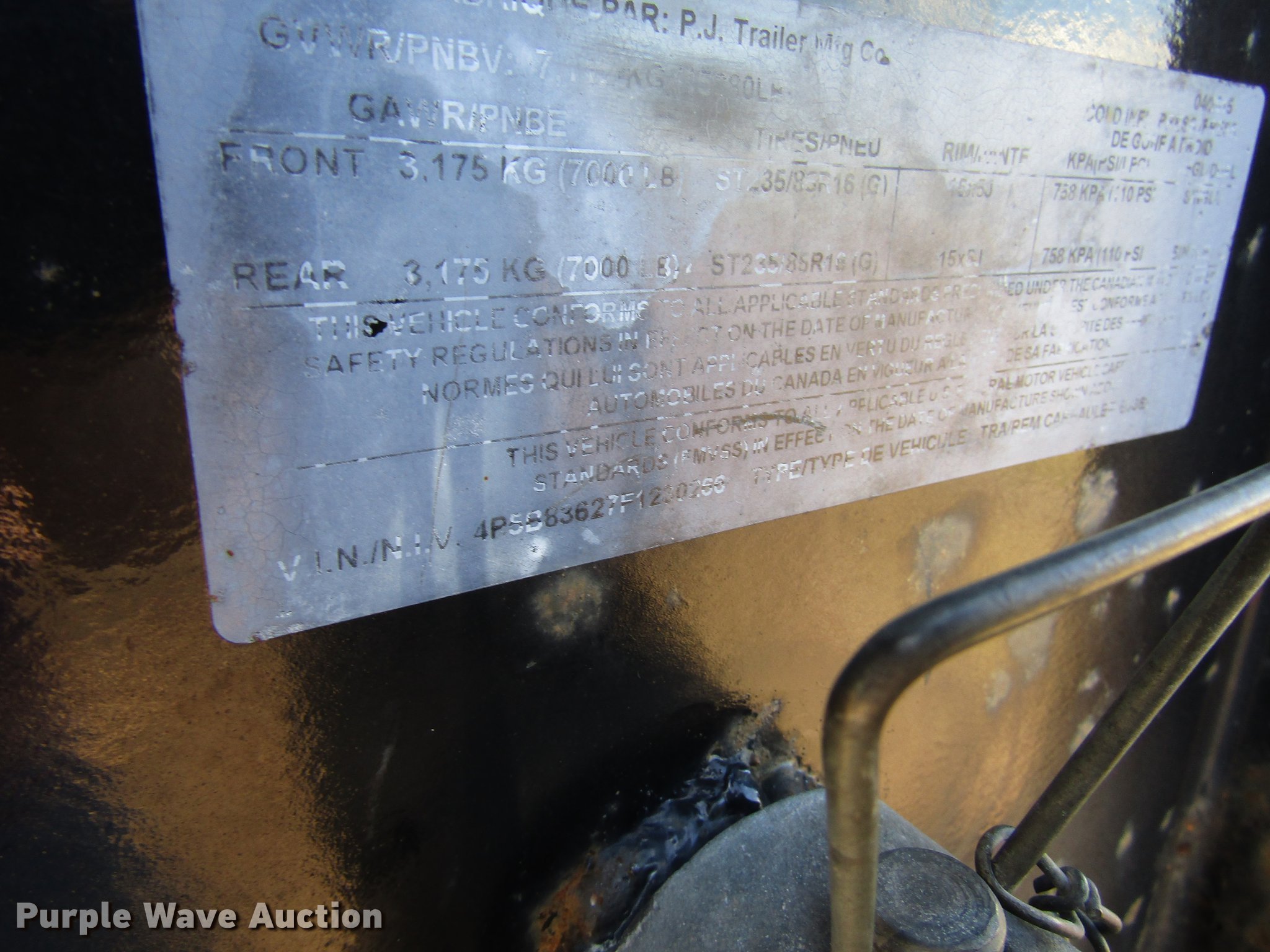 Take a look at this used 2015 PJ drop deck equipment trailer being sold on July 10th, 2019 in the SOLD! July 10 Vehicles and Equipment Auction made by PJ. Take a look at all of the item information below or take a look at similar auctions for Trailers.