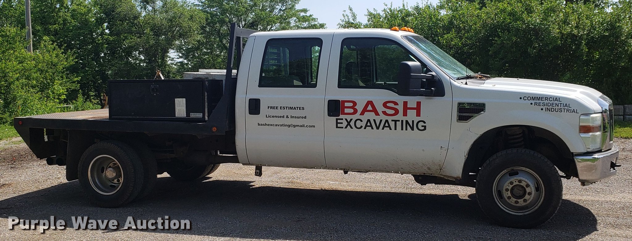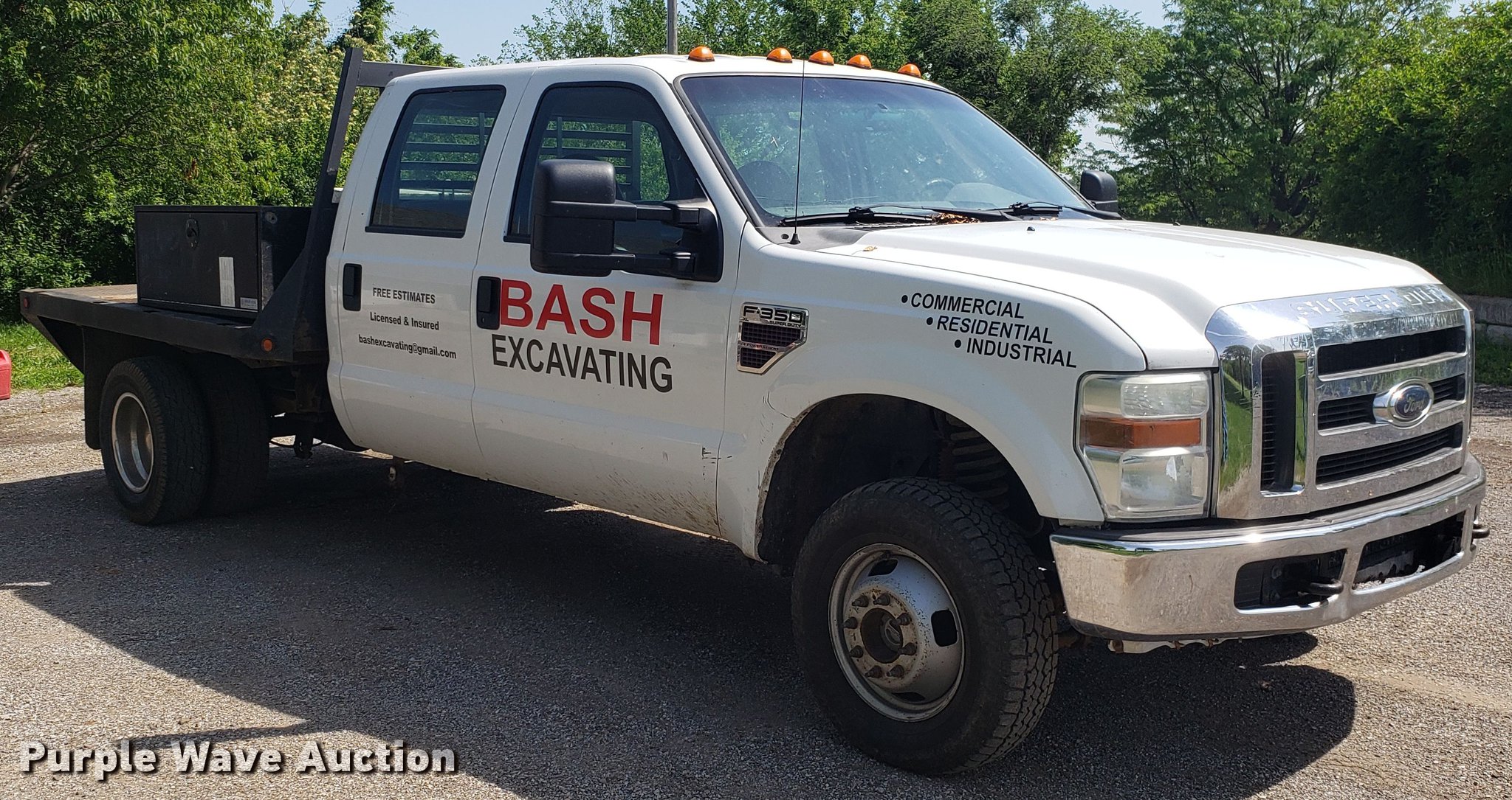 This 2008 Ford F350 Super Duty Crew Cab flatbed pickup truck will sell to the highest bidder regardless of price.