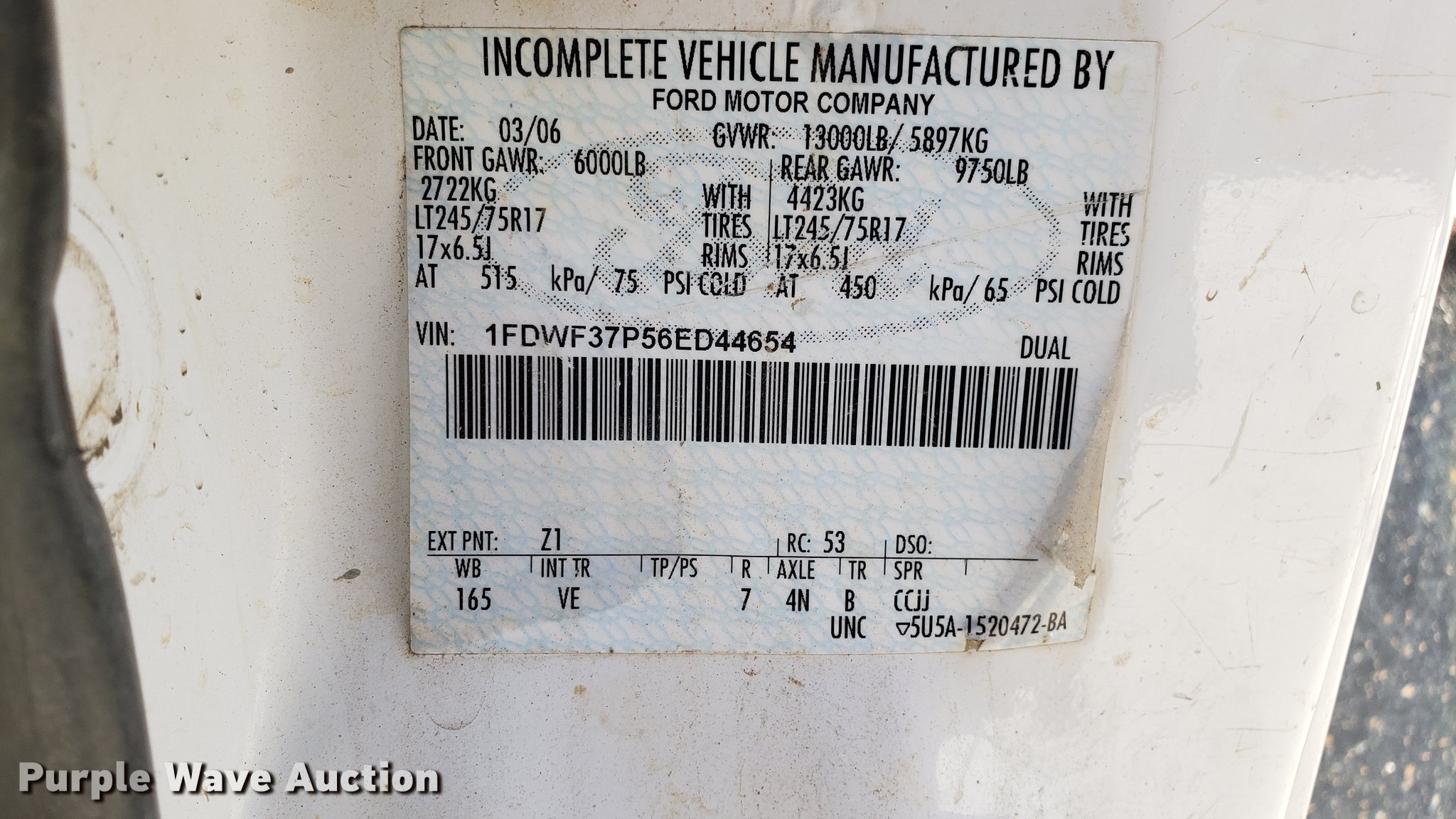 2006 Ford F350 Super Duty flatbed pickup truck. 164,133 miles on odometer, 6.0L V8 OHV 32V diesel engine, Automatic transmission, Four wheel drive, AC and heat, Cruise, 11'L x 96"W flatbed Utility rack, 245/75R17 tires, Cracked windshield, ABS light on. Missouri title. Title distribution may be delayed up to 14 days from verification of funds. 1FDWF37P56ED44654. Shaw Construction Inc.. 7017 Hwy D. Bates City, MO 64011