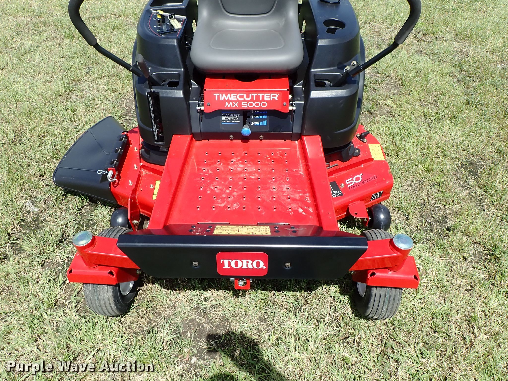 Purple Wave is selling a used Lawn Mower in Kansas. This item is a Toro Time Cutter MX5000 ZTR lawn mower with the following: 50" cut, Toro V-twin gas engine, 24.5 HP, Hydrostatic transmission, 18x9.50-8 tires, Unused