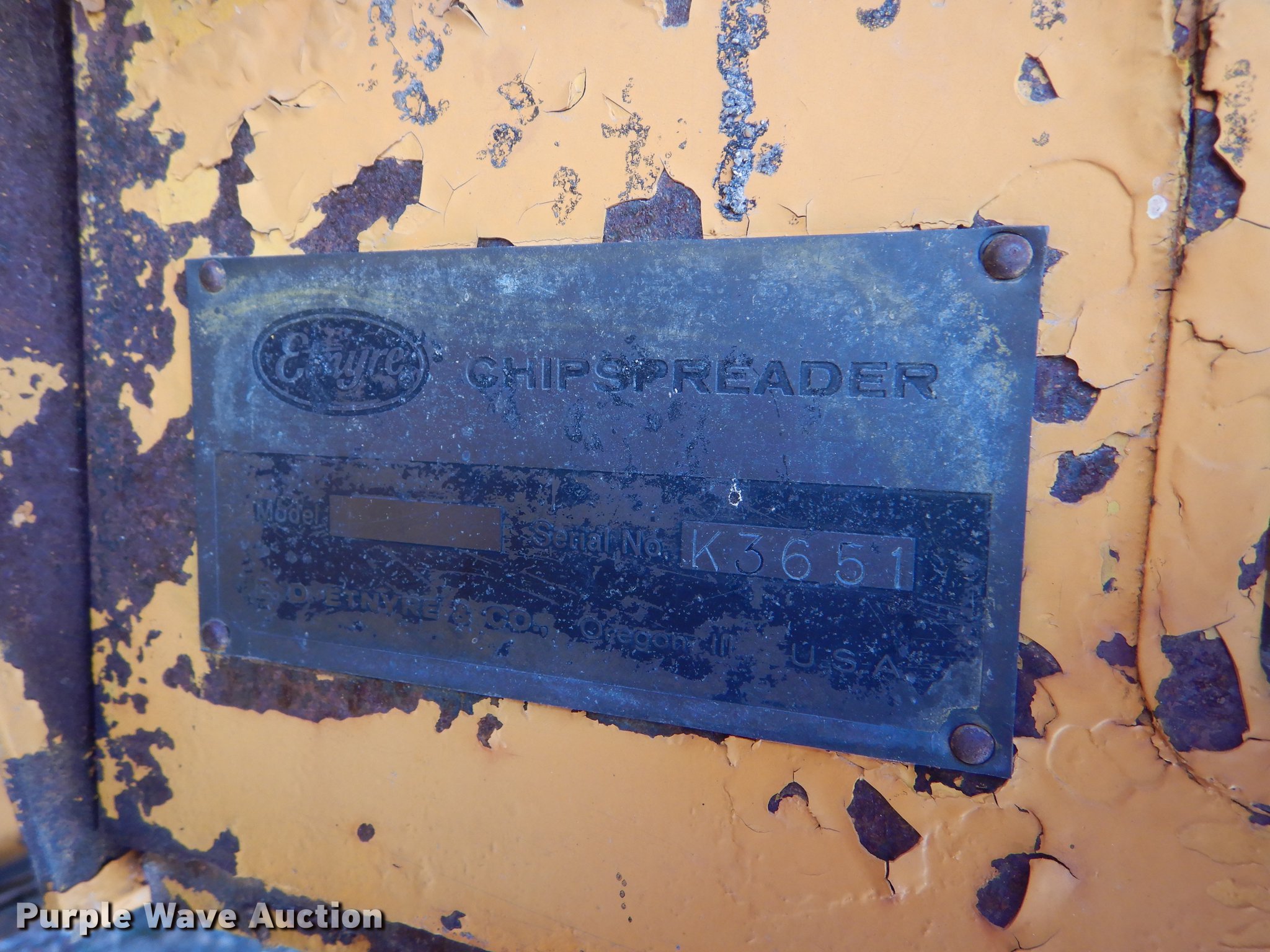 Purple Wave is selling a used Chip Spreader in Kansas. This item is a Etnyre 720 chip spreader with the following: Detroit Diesel four cylinder diesel engine, Four speed manual transmission, 9.5' hopper, 18'L x 20"W conveyor, 14' spreader, Unknown operating condition, Serial K3651