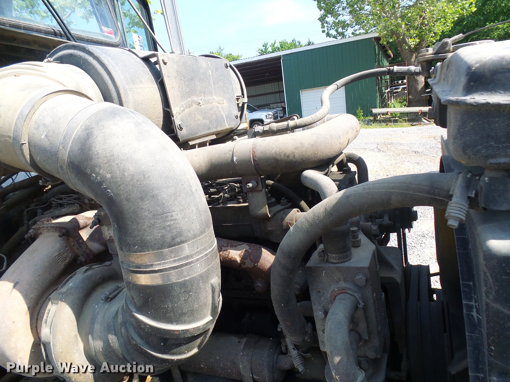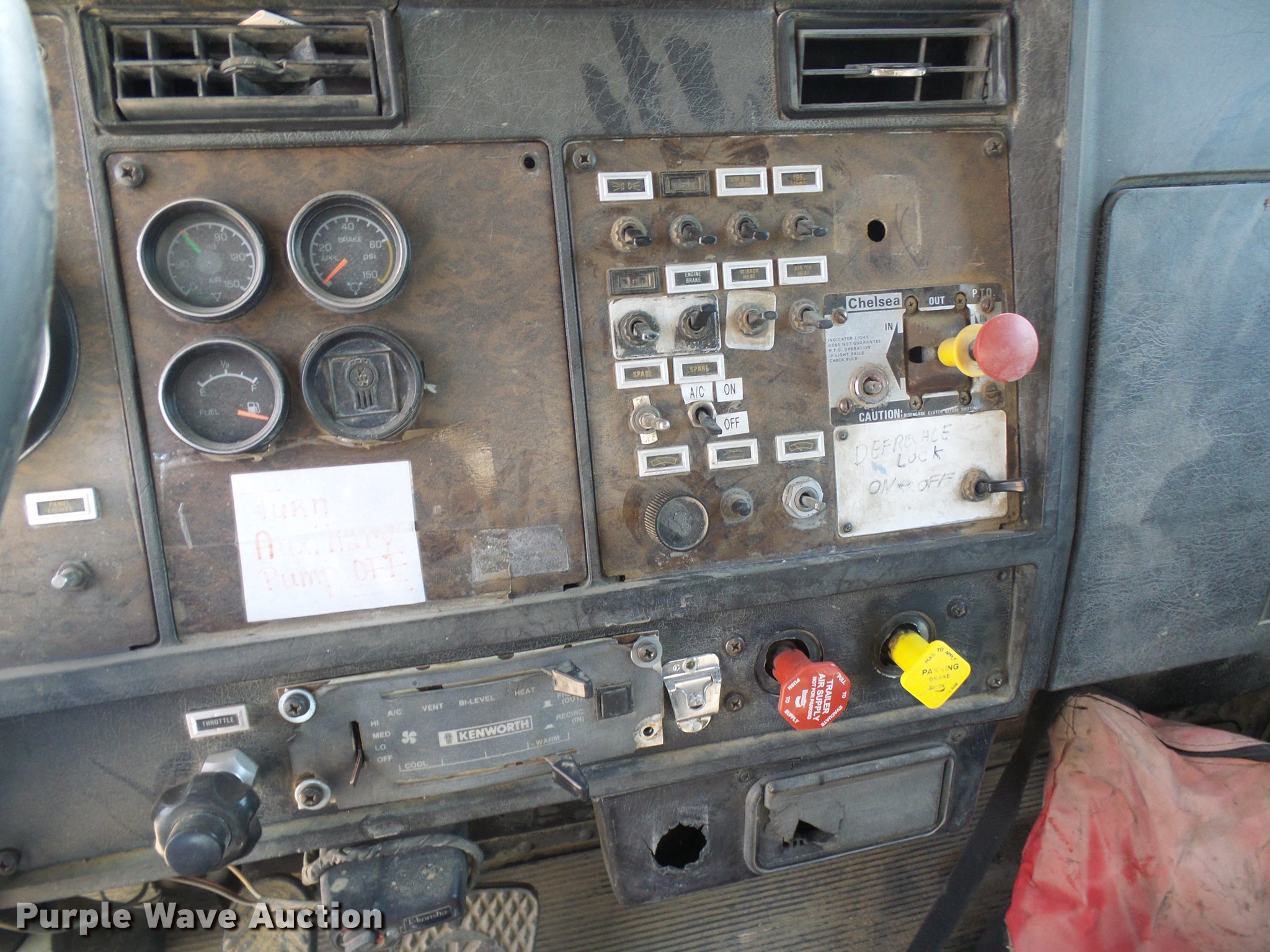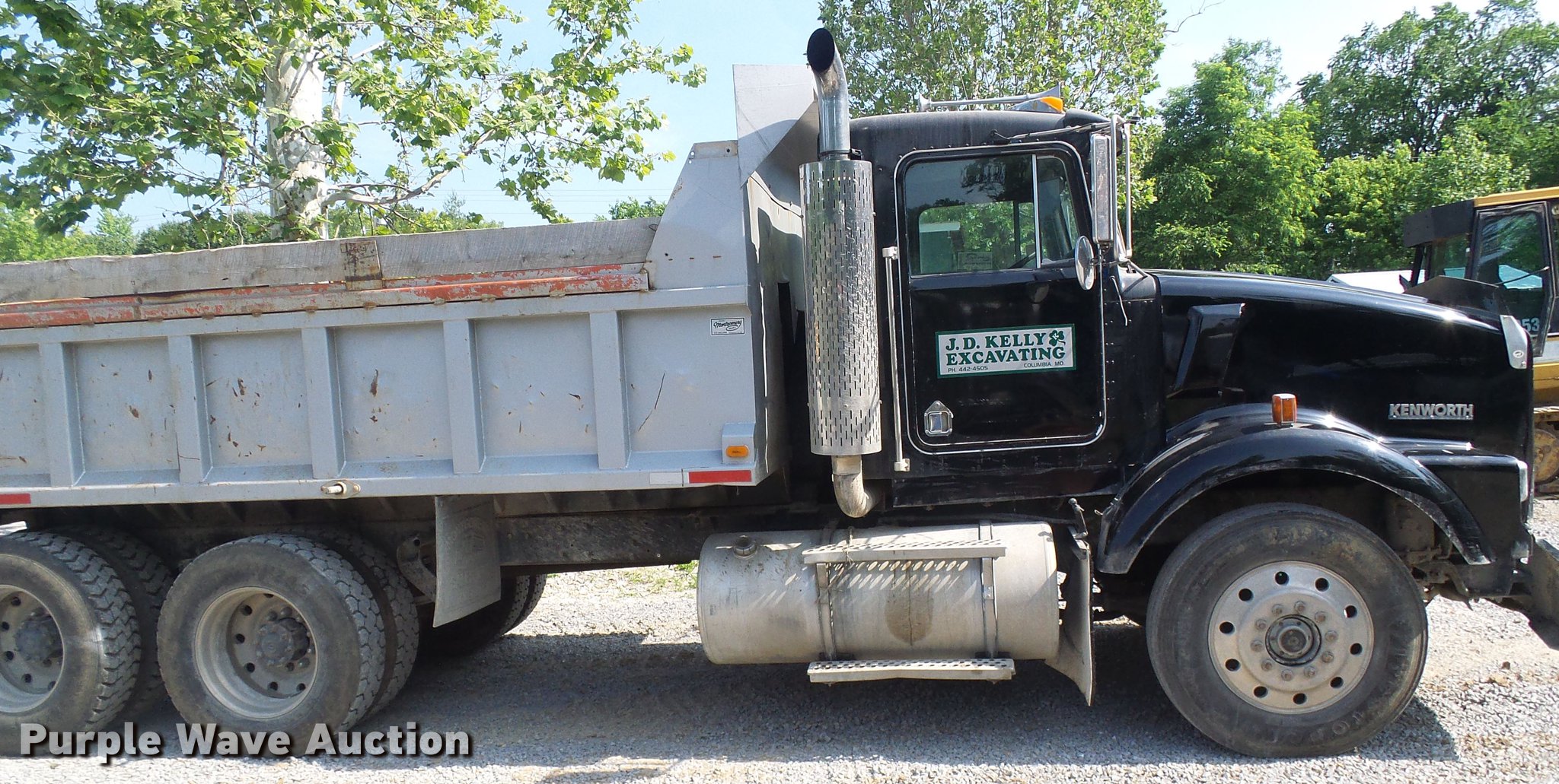 Purple Wave is selling a used Construction Dump Truck in Missouri. This item is a 1988 Kenworth T800 dump truck with the following: 896,247 miles on odometer, Cummins six cylinder diesel engine, Nine speed manual transmission, Inter-axle differential lock, Tandem axle, AC and heat, Heated mirrors, Brake controller, 14'4"L x 8'W steel dump bed, 36" side height, 8" side board height, Single ram hoist, Spring suspension, Air brakes, 11R24.5 tires, GVWR 50,000 lbs