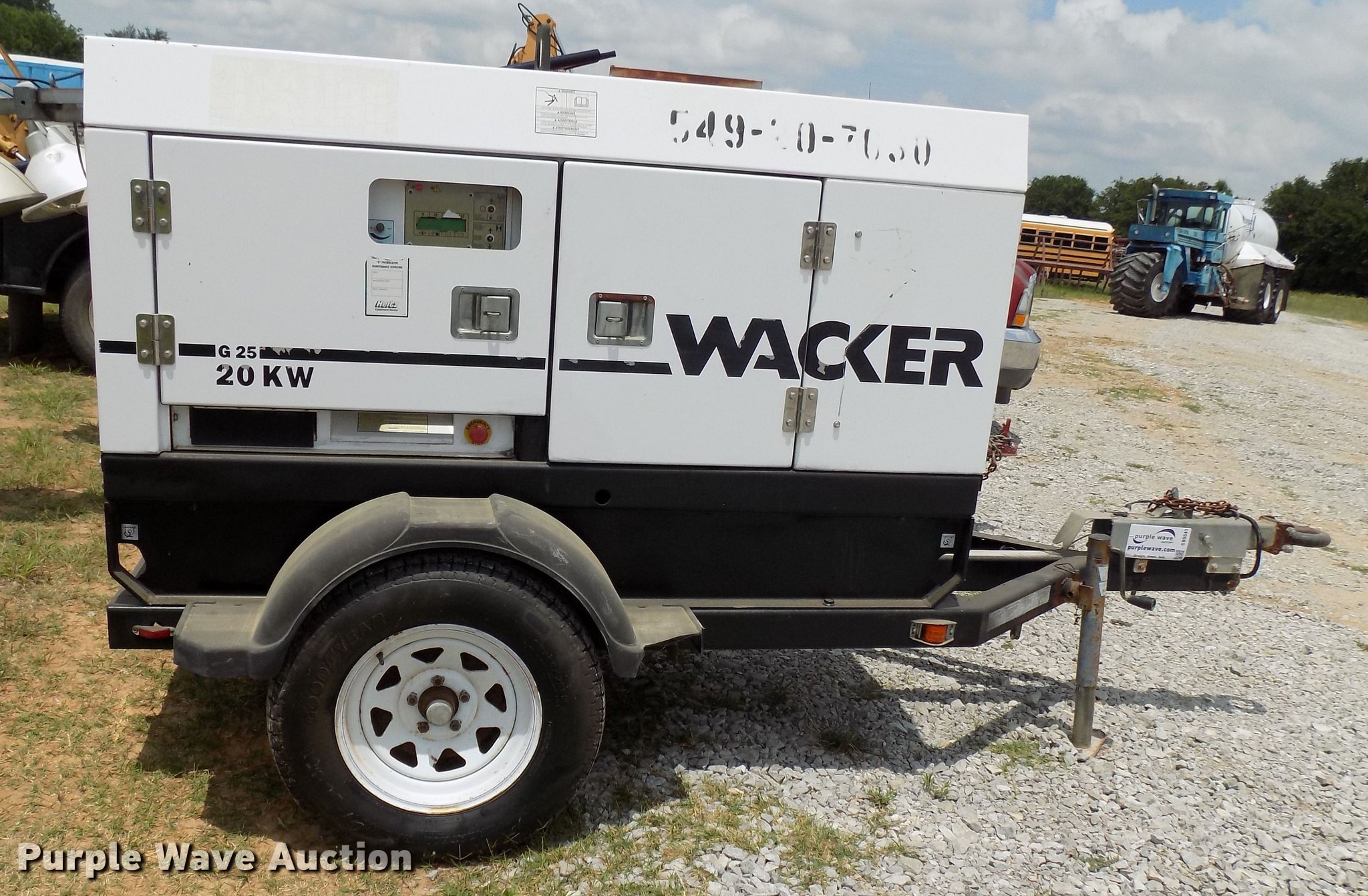 Purple Wave is selling a used Generator Set in Oklahoma. This item is a 2007 Wacker MGT1S generator with the following: 10,336 hours on meter, Isuzu diesel engine, 20 kW, 11'L x 4'W trailer, 205/75R15 tires
