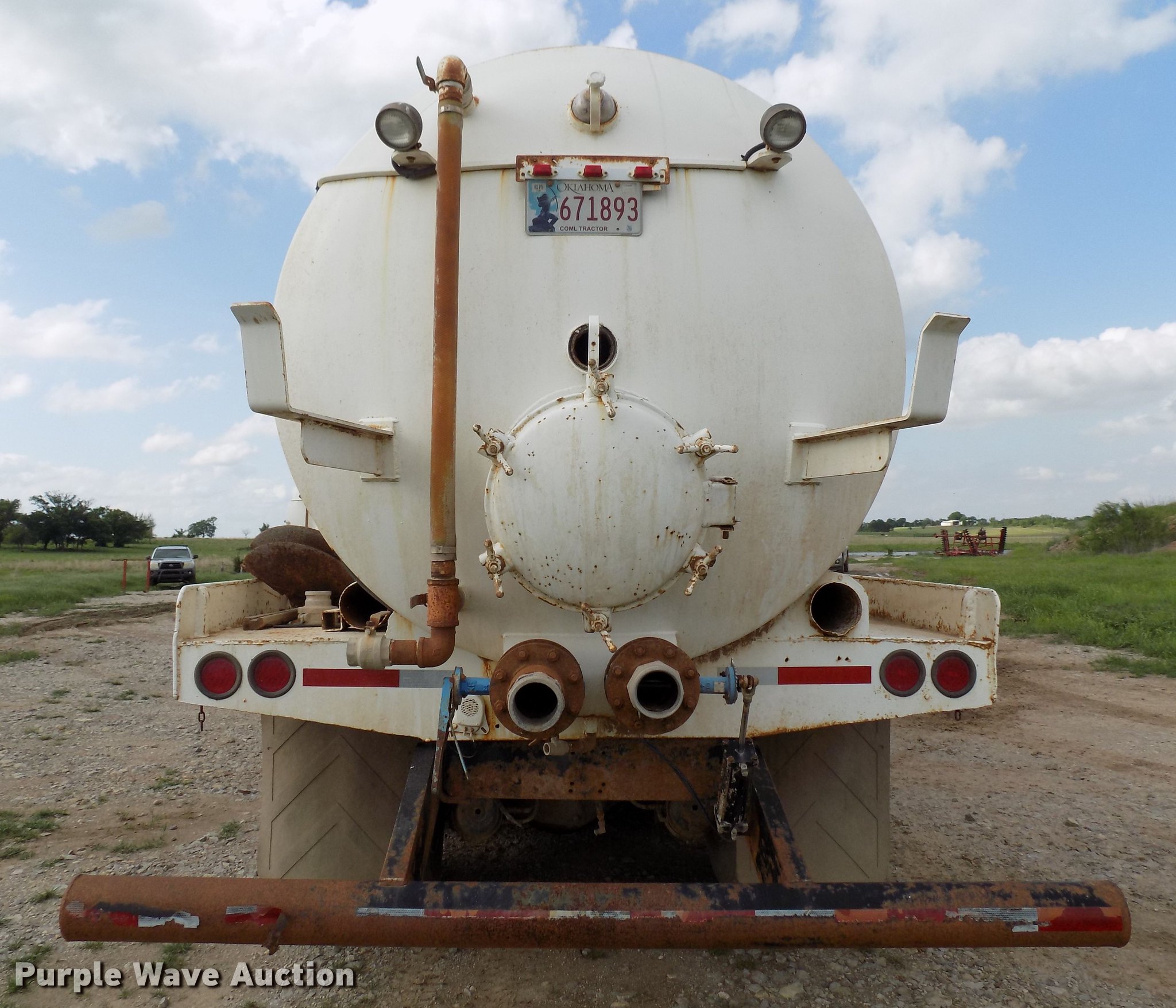 1981 Peterbilt 378 vacuum truck. 96,896 miles on odometer, Cummins six cylinder diesel engine, Eight speed manual transmission, Tandem axle, PTO, Steel tank 100 barrel capacity, 4" rear outlet, Mastport pump, Spring suspension, Air brakes, 11R24.5 tires, GVWR 54,000 lbs. Oklahoma classic title. 1XP3L29X2BP143864. 21311 E McElroy Rd. Yale, OK 74085