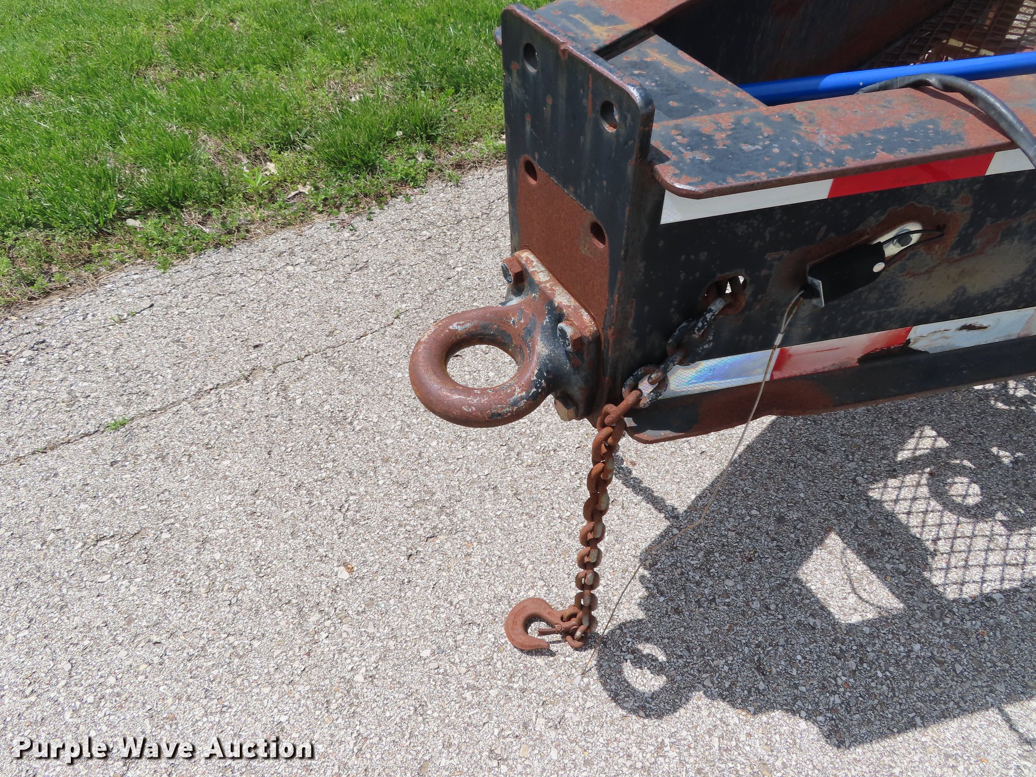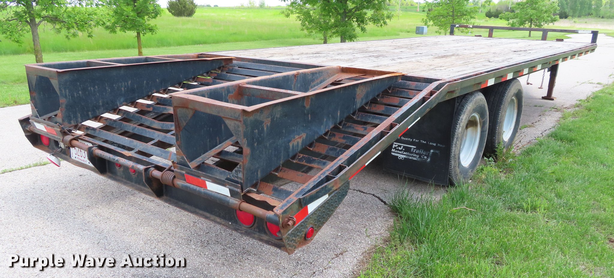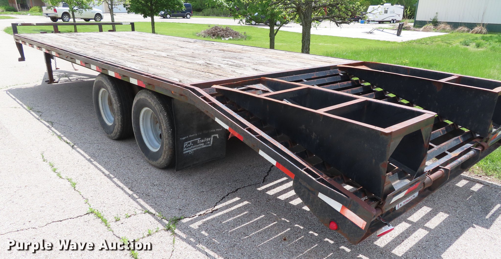 Purple Wave is selling a used Equip. Trailer in Kansas. This item is a 2000 PJ equipment trailer with the following: 25'L x 101.5"W wood deck, 5' tail length, 5'L ramps, Dual leg landing gear, Spring suspension, Electric brakes, Tandem axle, 235/85R16 tires