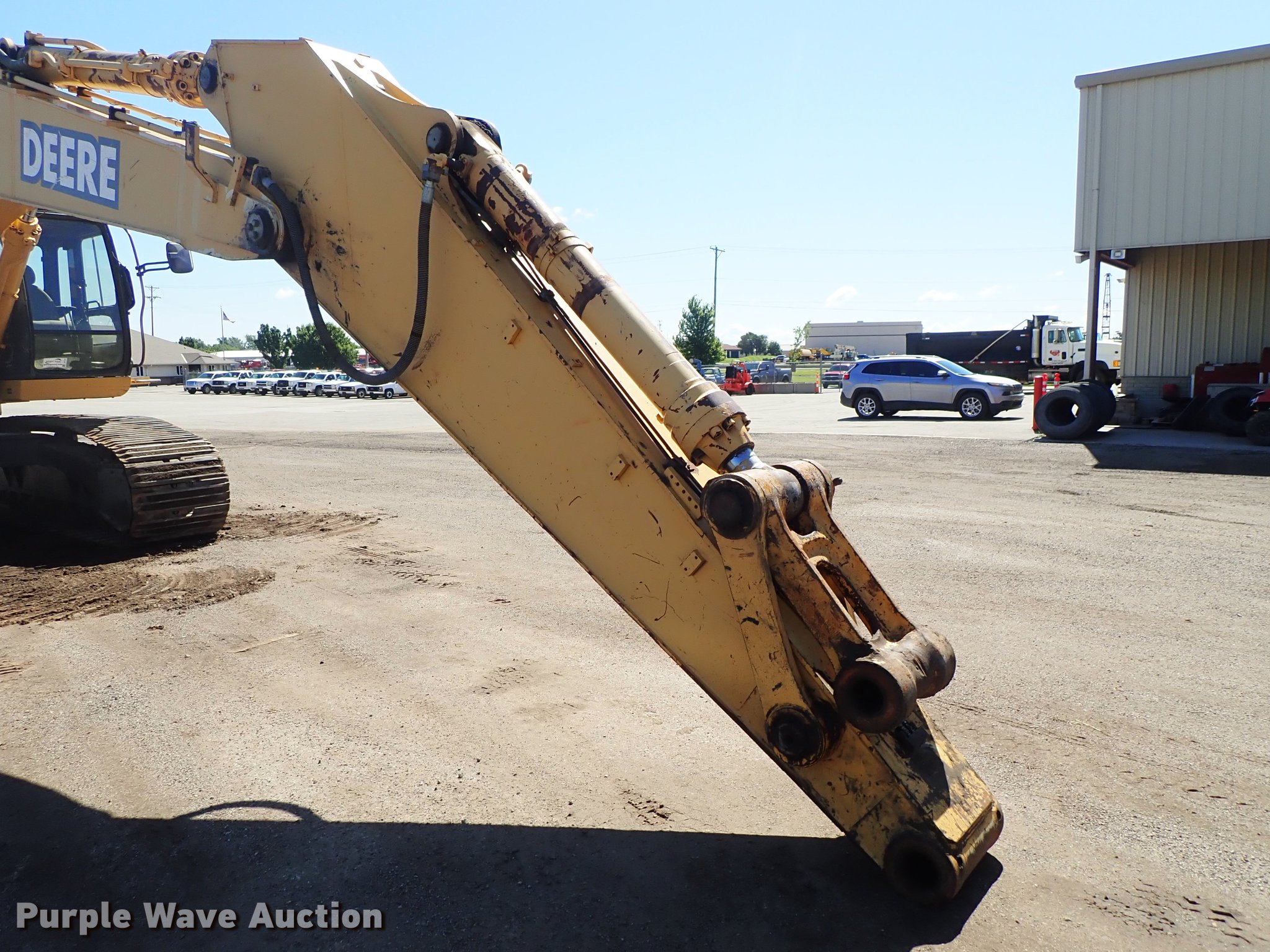 Purple Wave is selling a used Hydraulic Excavator in Kansas. This item is a 2002 John Deere 450C LC excavator with the following: 14,424 hours on meter, John Deere 6125H six cylinder diesel engine, 316 HP, Hydrostatic transmission, EROPS, AC and heat, Standard boom, 12' stick length, 36"W triple grouser steel tracks, Serial FF450CX091132