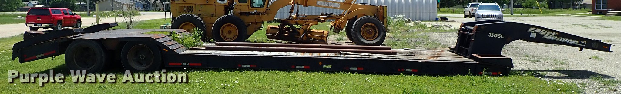 Purple Wave is selling a used Equip. Trailer in Kansas. This item is a 1995 Eager Beaver 35GSL lowboy equipment trailer with the following: 25'L x 102"W wood and steel main deck, 144"L rear deck, 60"L x 22"W ramps, 12"W swing-out extensions, Detachable neck, Air suspension, Air brakes, Tandem axle, 255/70R22.5 tires, Hydraulic detach needs repair