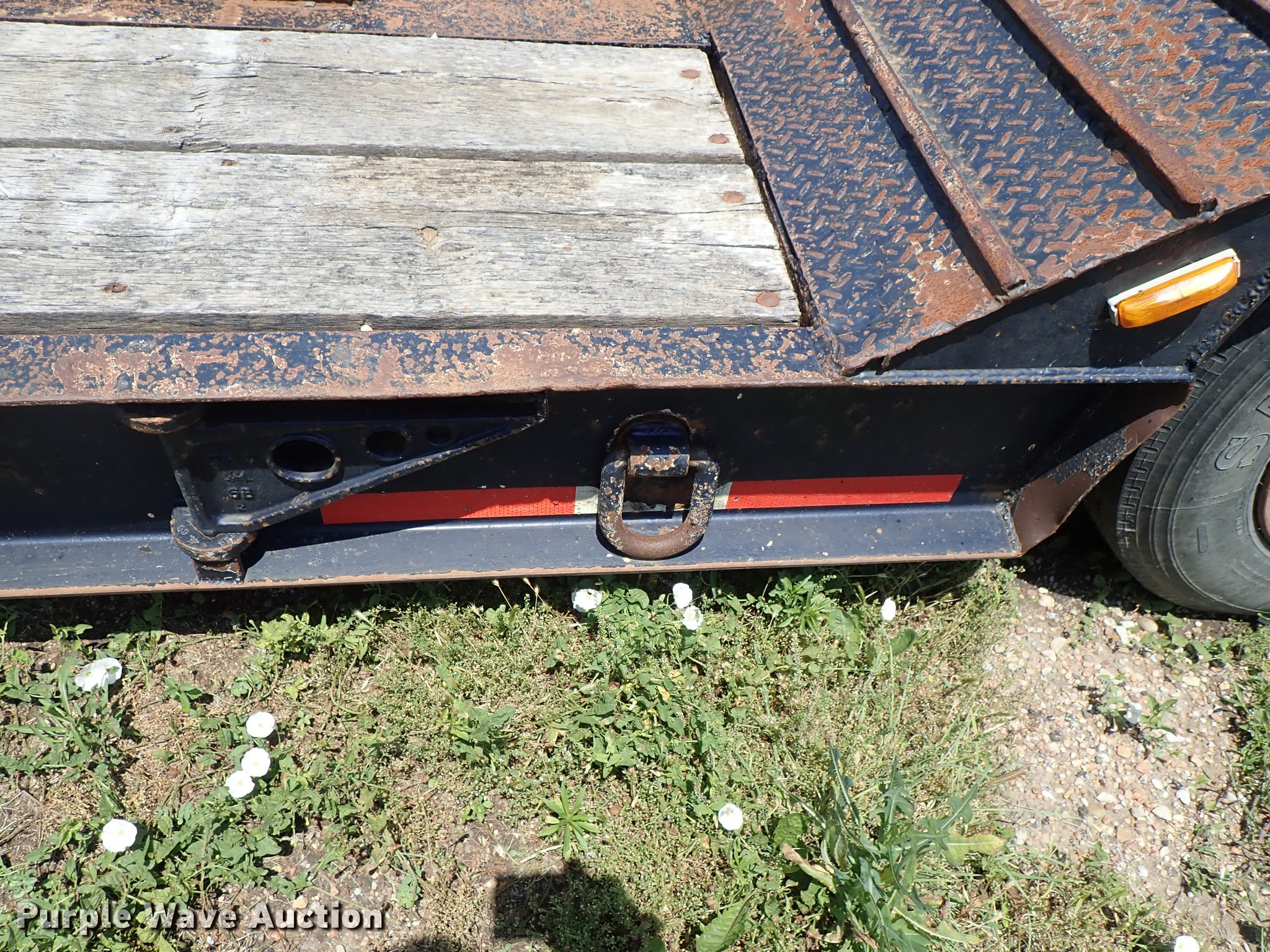 1995 Eager Beaver 35GSL lowboy equipment trailer. 25'L x 102"W wood and steel main deck, 144"L rear deck, 60"L x 22"W ramps, 12"W swing-out extensions, Detachable neck, Air suspension, Air brakes, Tandem axle, 255/70R22.5 tires, Hydraulic detach needs repair. Kansas title. Title distribution may be delayed up to 14 days from verification of funds. 112SAZ441SL044911. Ressler Well Service. Burrton, KS 67020