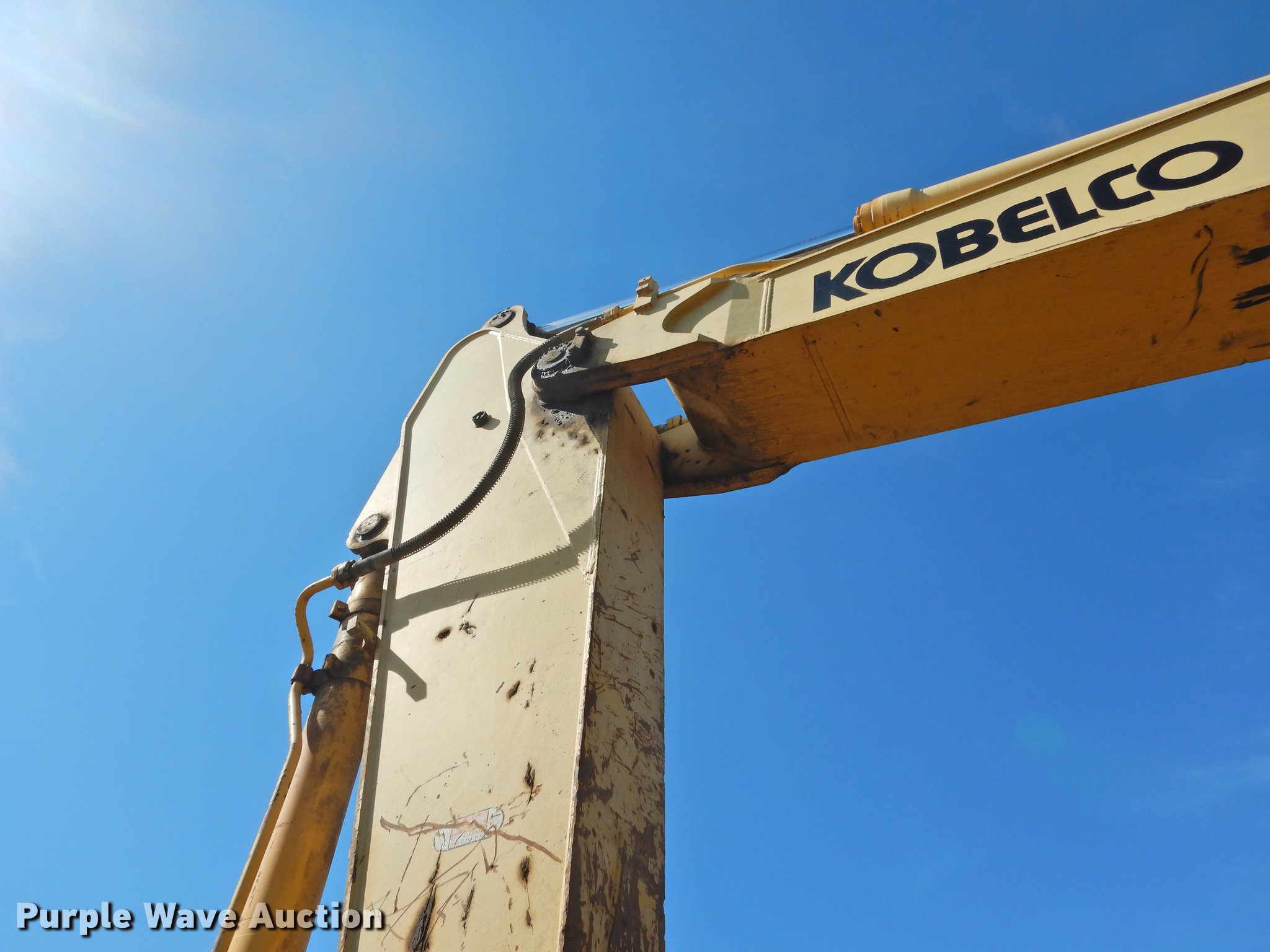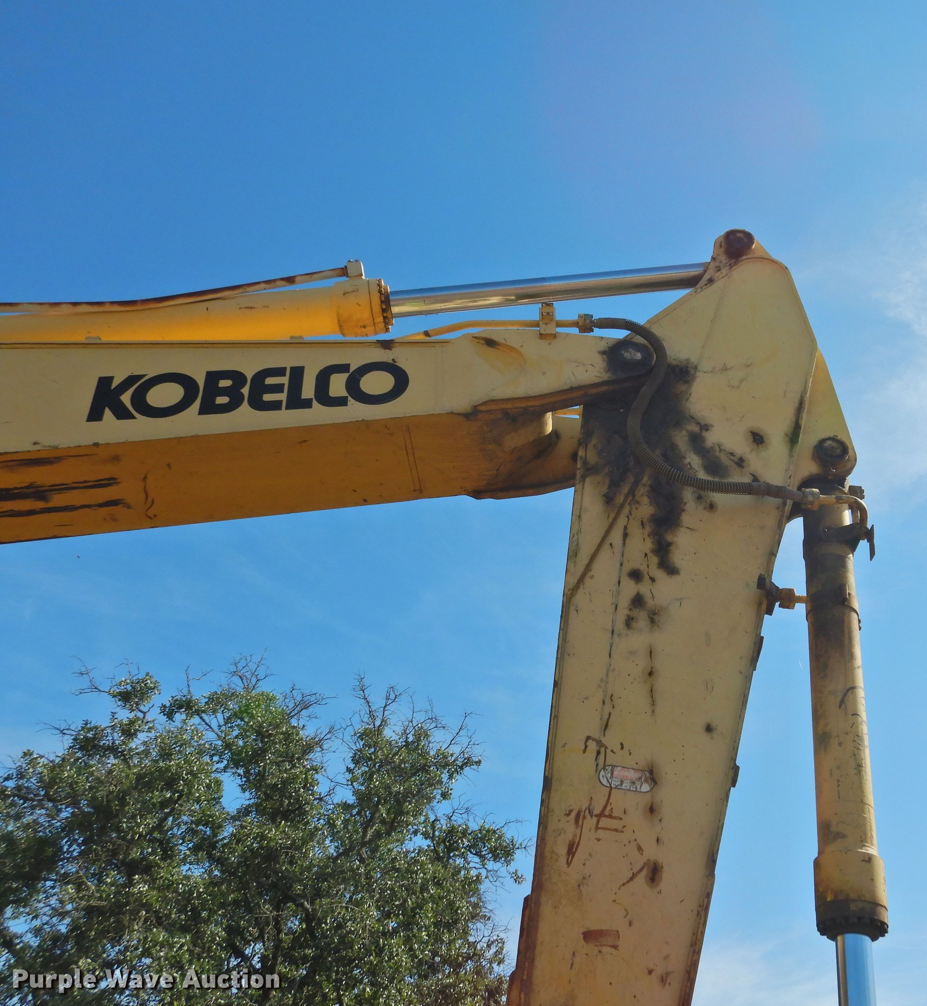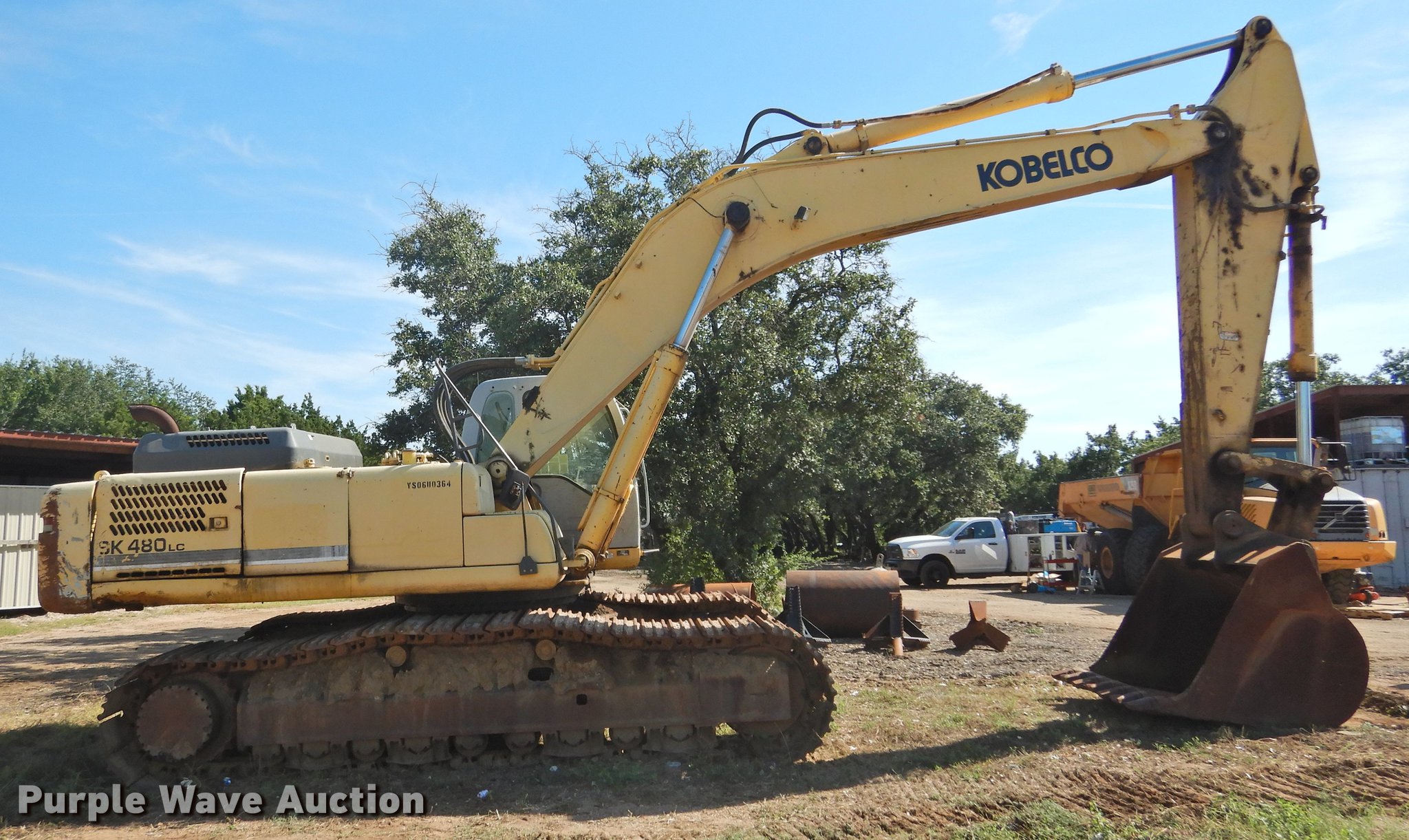Purple Wave is selling a used Hydraulic Excavator in Texas. This item is a 2005 Kobelco SK480LC excavator with the following: 8,286 hours on meter, Mitsubishi 6D24TLA2B 11.95L four cylinder diesel engine, 315 HP, Hydrostatic transmission, EROPS, AC and heat, Standard boom, 11.3' stick length, Kobelco 71"W bucket, (7) teeth, Mechanical quick coupler, Removable counter weights, 35.5"W steel triple grouser track pads, Non-operational right side tracks, Serial YS06U0364