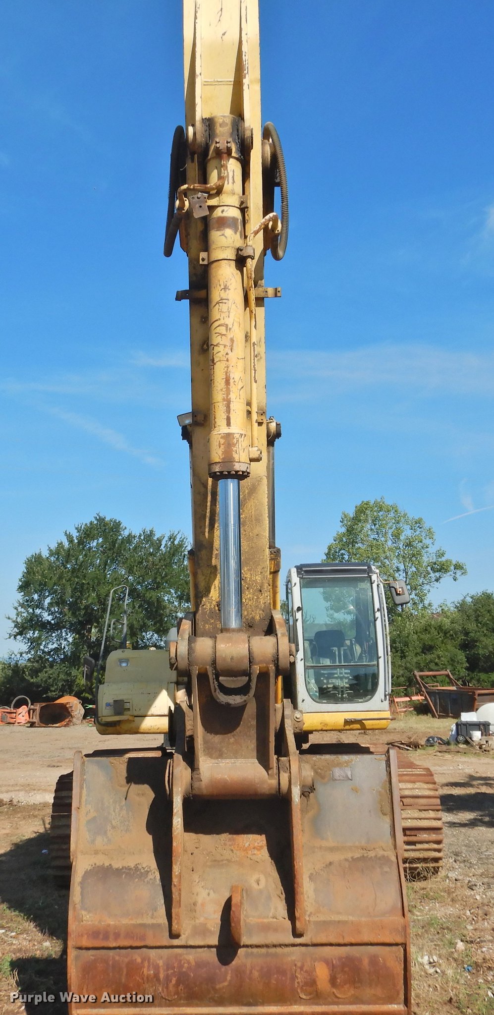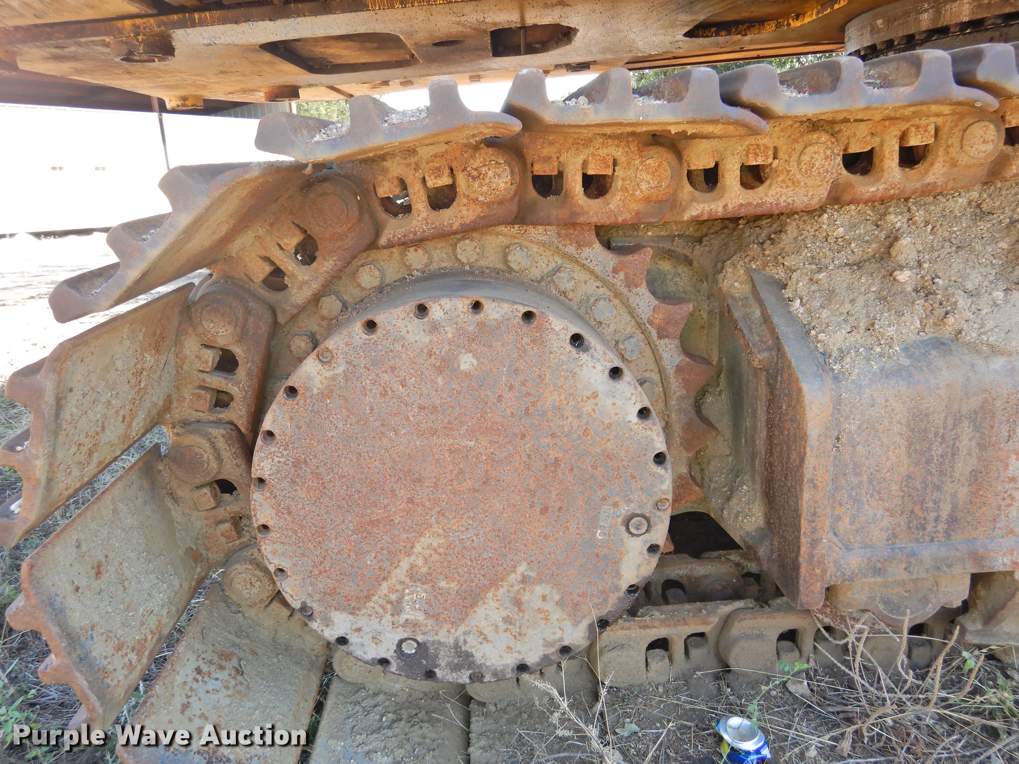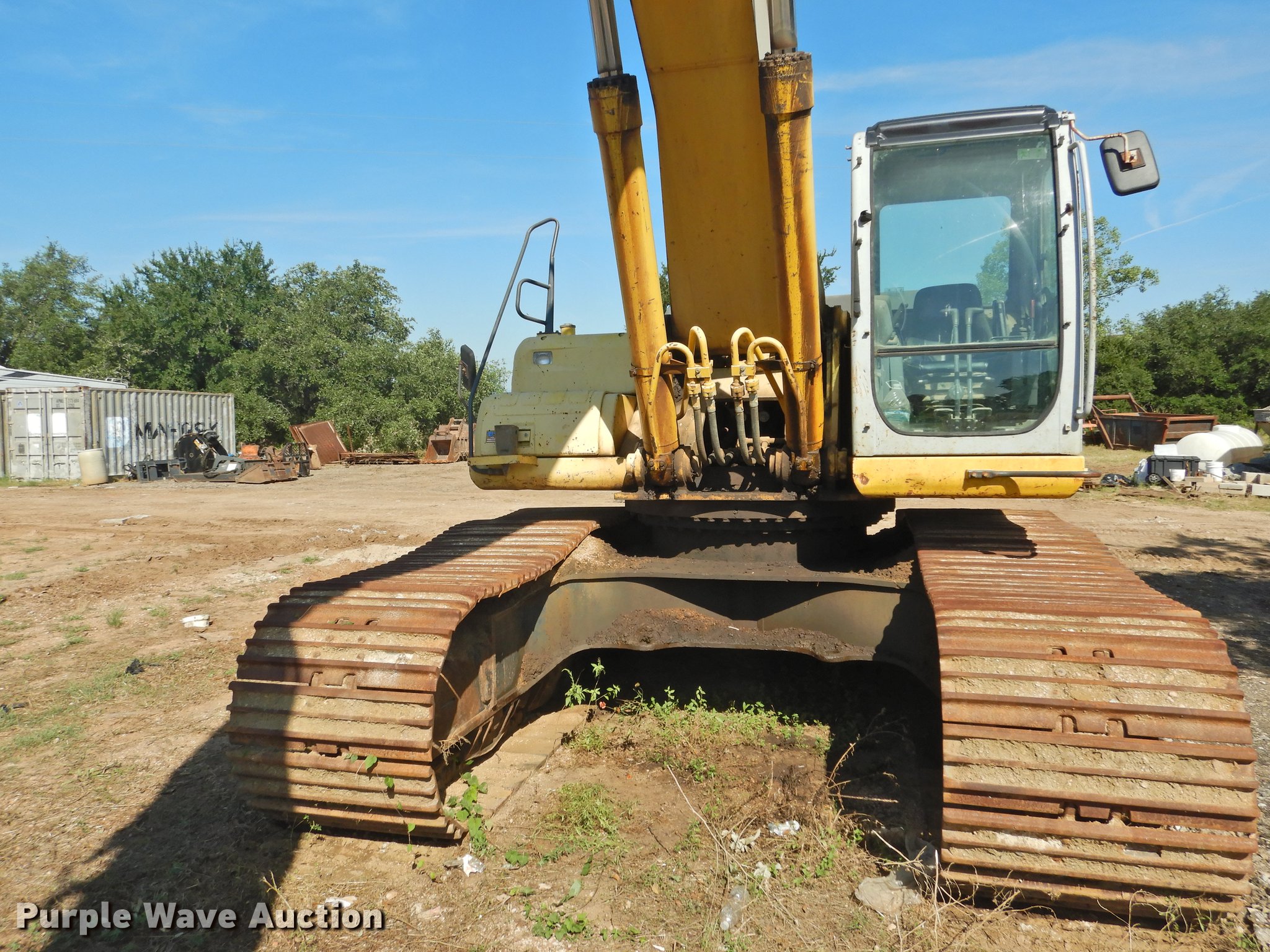 Purple Wave is selling a used Hydraulic Excavator in Texas. This item is a 2005 Kobelco SK480LC excavator with the following: 8,286 hours on meter, Mitsubishi 6D24TLA2B 11.95L four cylinder diesel engine, 315 HP, Hydrostatic transmission, EROPS, AC and heat, Standard boom, 11.3' stick length, Kobelco 71"W bucket, (7) teeth, Mechanical quick coupler, Removable counter weights, 35.5"W steel triple grouser track pads, Non-operational right side tracks, Serial YS06U0364