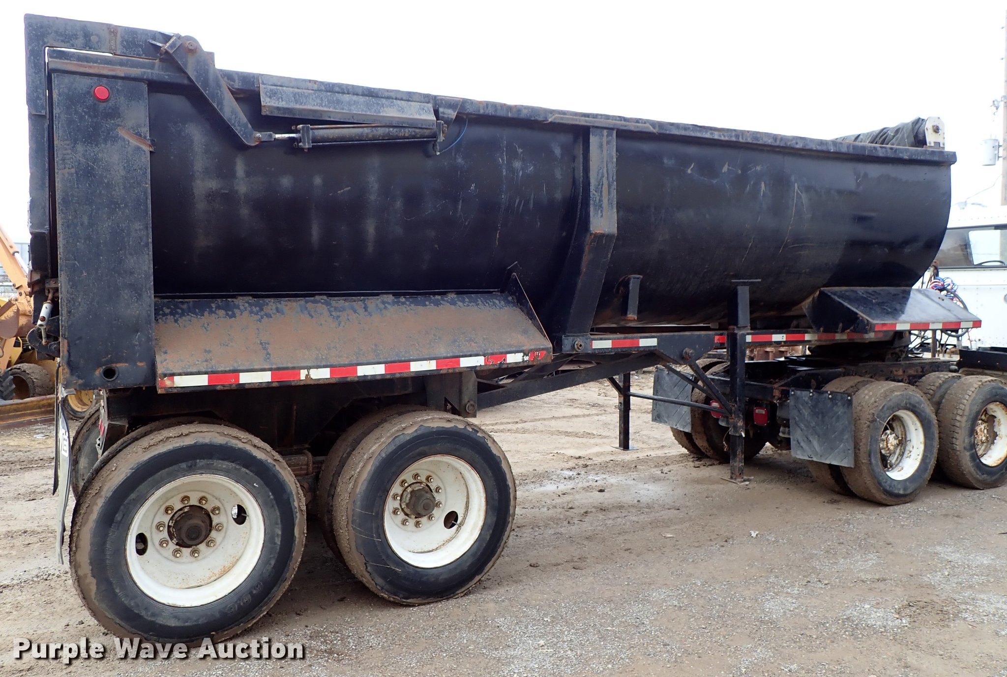 Purple Wave is selling a used End Dump Rock Trailer in Kansas. This item is a 1995 Clement end dump trailer with the following: Approx. 23'L x 8'W steel body, 55" side height, Air operated end gate, Single ram hoist, Roll tarp, Fifth wheel plate, Dual leg landing gear, Spring suspension, Air brakes, Tandem axle, 11R24.5 tires