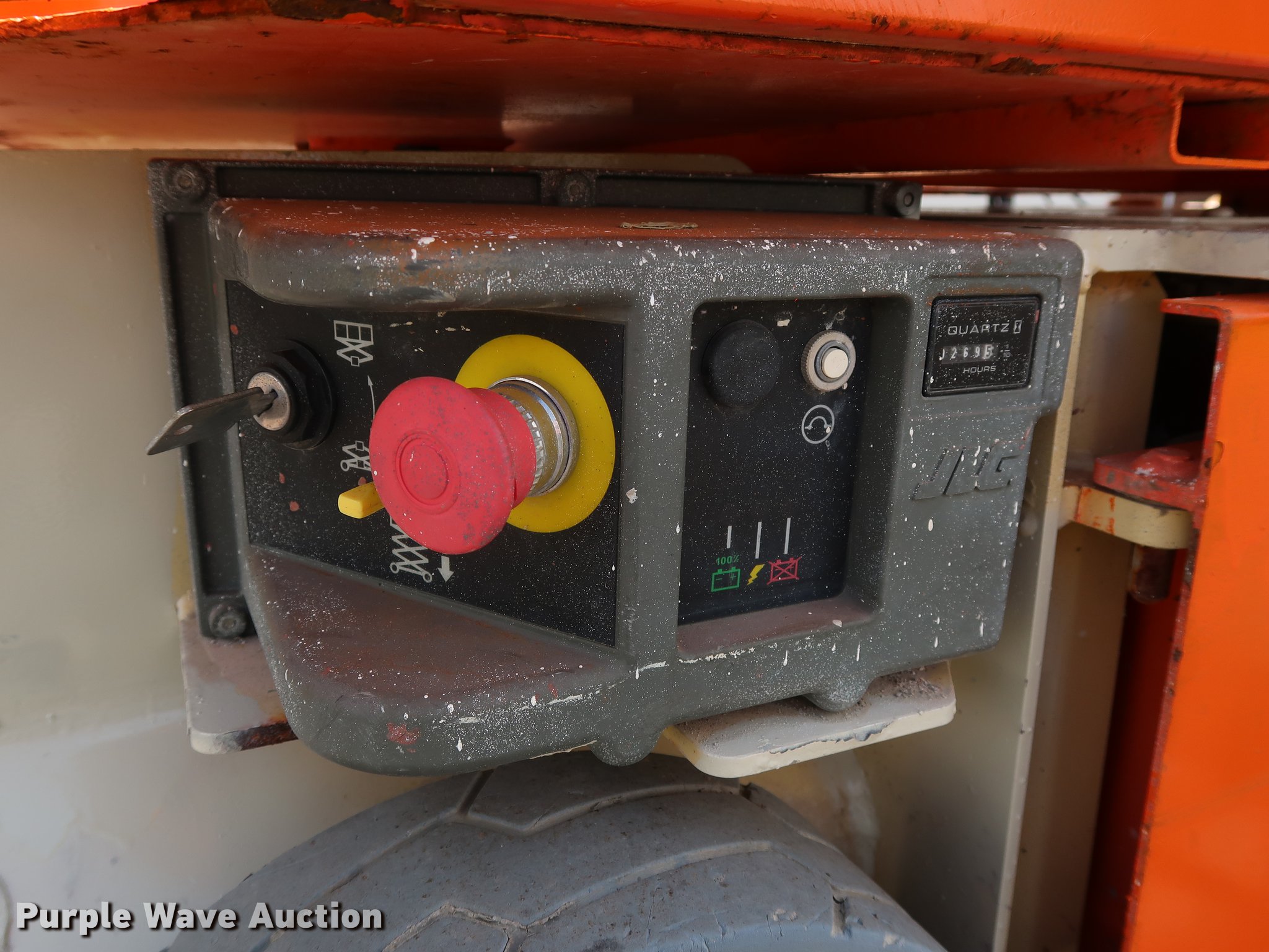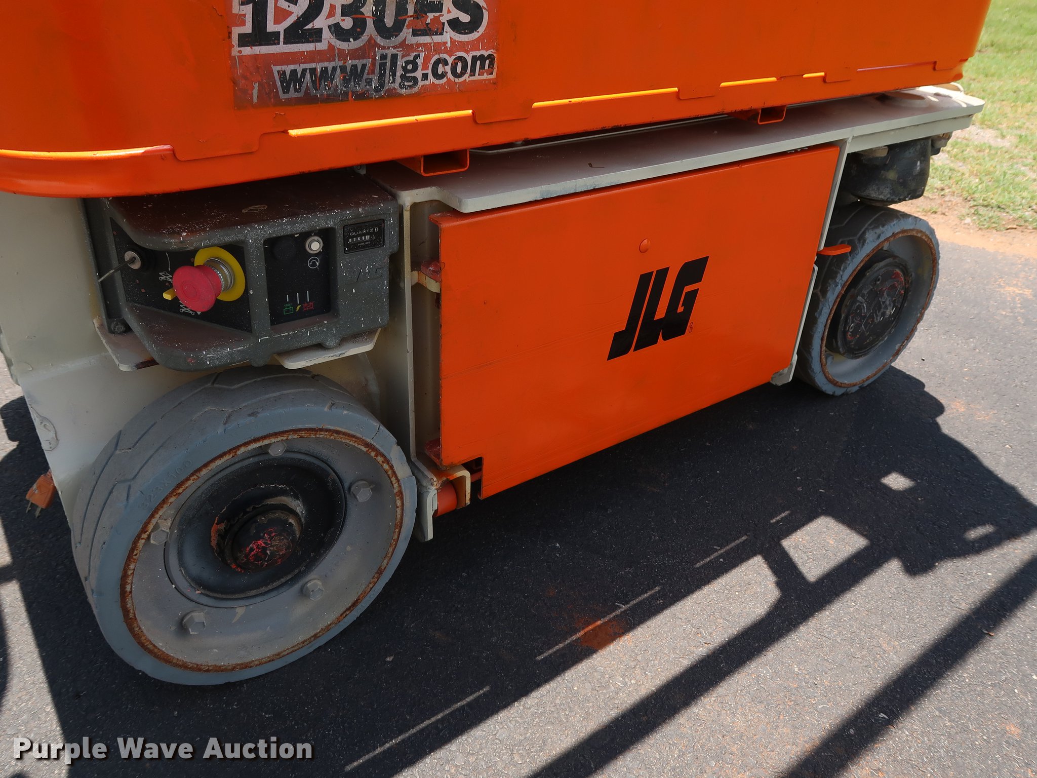 Purple Wave is selling a used Scissor or Vertical Lift in Oklahoma. This item is a 2010 JLG 1230ES vertical lift with the following: 270 hours on meter, 24V electric operation, 8 HP, 500 lbs maximum lift capacity, 12' maximum lift height, 52"L x 30"W platform, Platform and ground controls, AC power outlet, Three mph travel speed, Safety alarm, 318 x 100 solid non-marking tires, Serial 0200196492