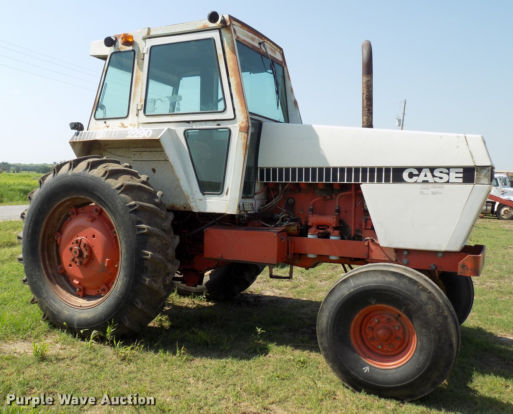 Purple Wave is selling a used Tractor in Kansas. This item is a 1979 Case 2290 tractor with the following: 4,098 hours on meter, Six cylinder diesel engine, Powershift transmission, 12F-3R gears, AC and heat, 540 PTO, Three point, (2) rear hydraulic remotes, 11.00-16 front tires, 18.4-38 rear tires, Serial 8847136