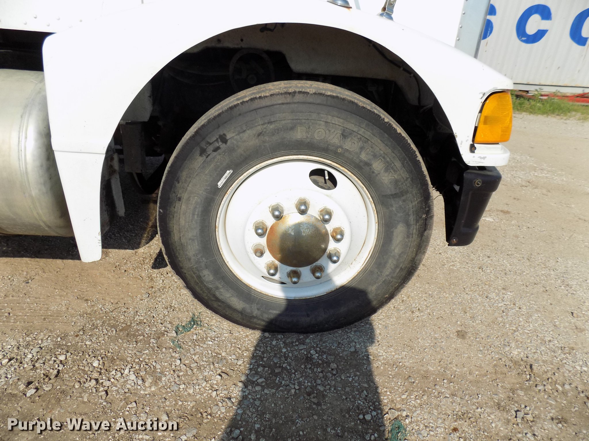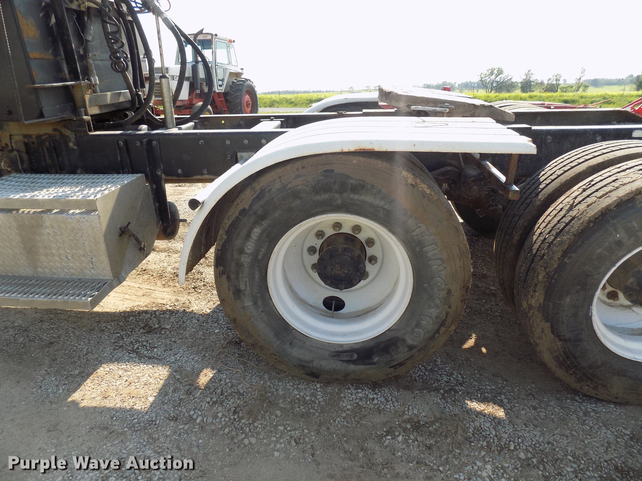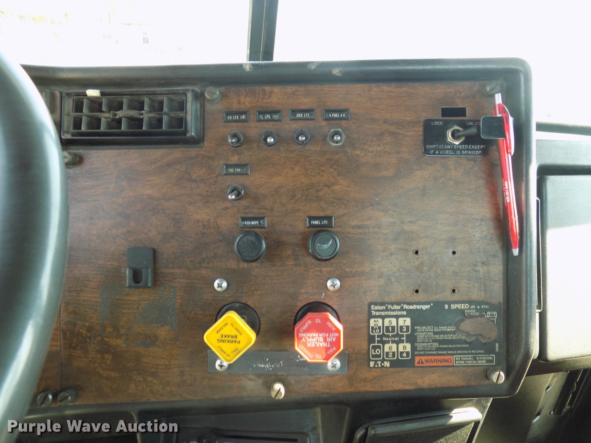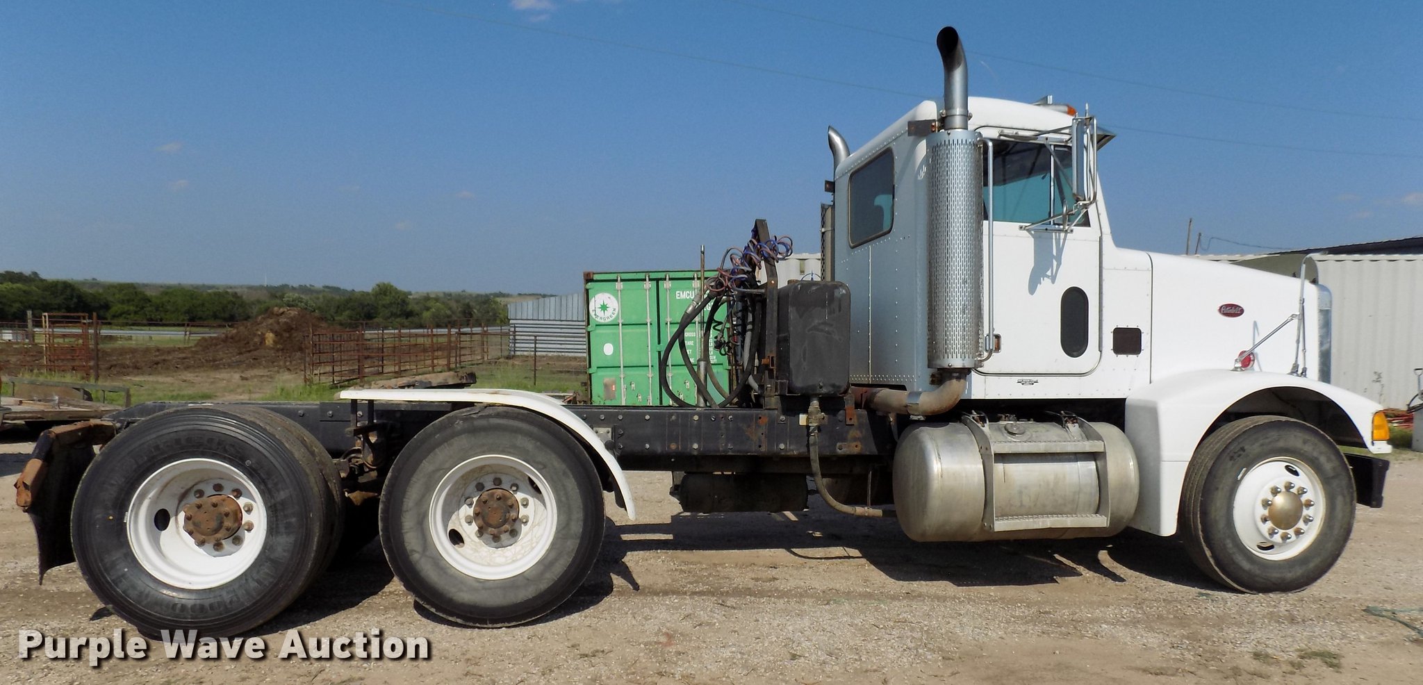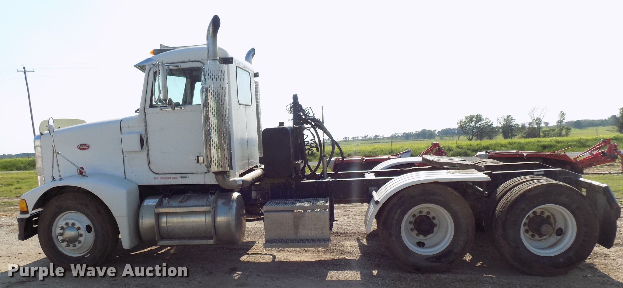 Purple Wave is selling a used Truck Tractor in Kansas. This item is a 1990 Peterbilt semi truck with the following: 620,114 miles on odometer, Caterpillar six cylinder diesel engine, Nine speed manual transmission, Tandem axle, Full differential lock, AC and heat, PTO, Fixed fifth wheel plate, Dual fuel tanks, Spring suspension, Air brakes, 11R22.5 front tires, 315/80R22.5 rear tires, GVWR 50,000 lbs