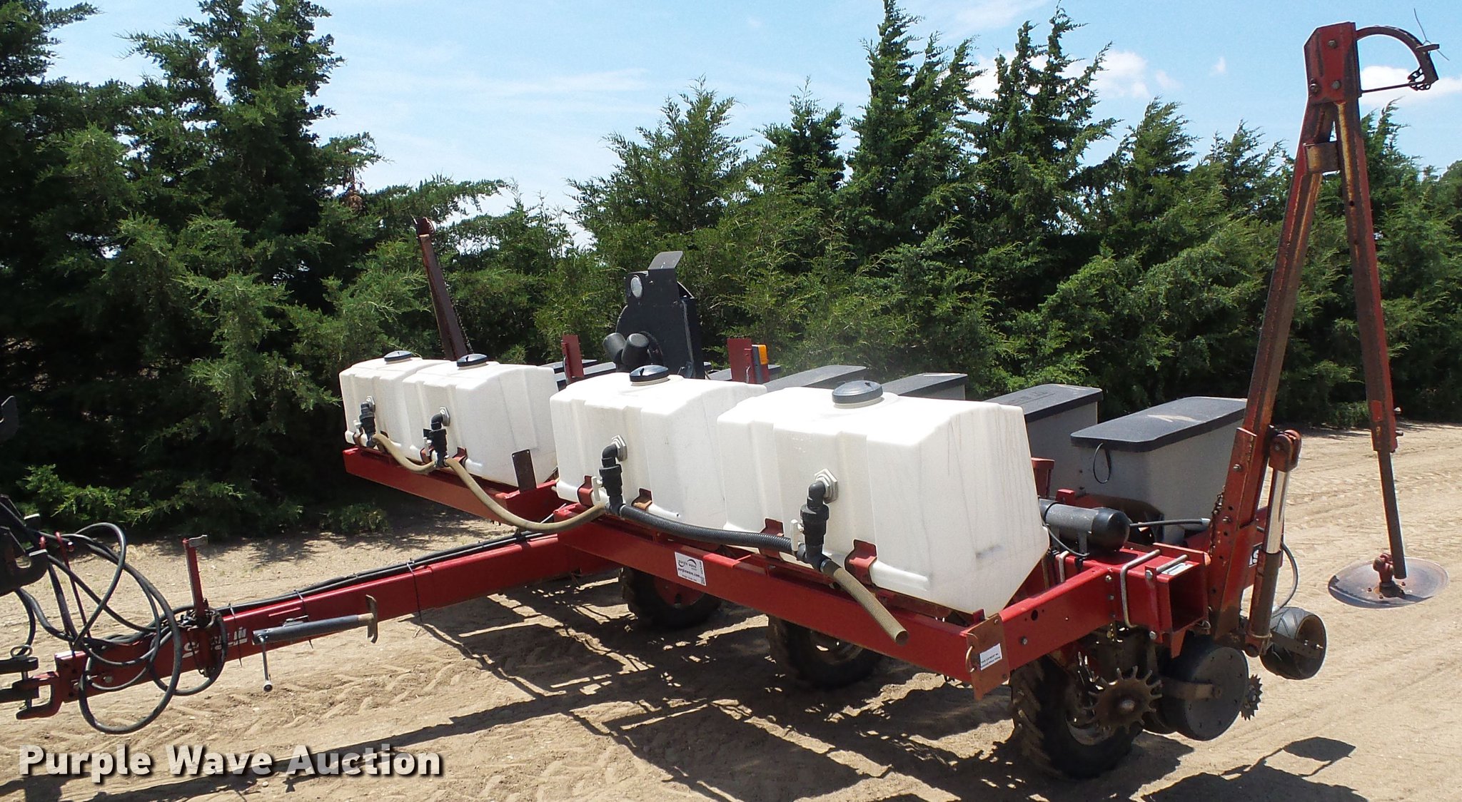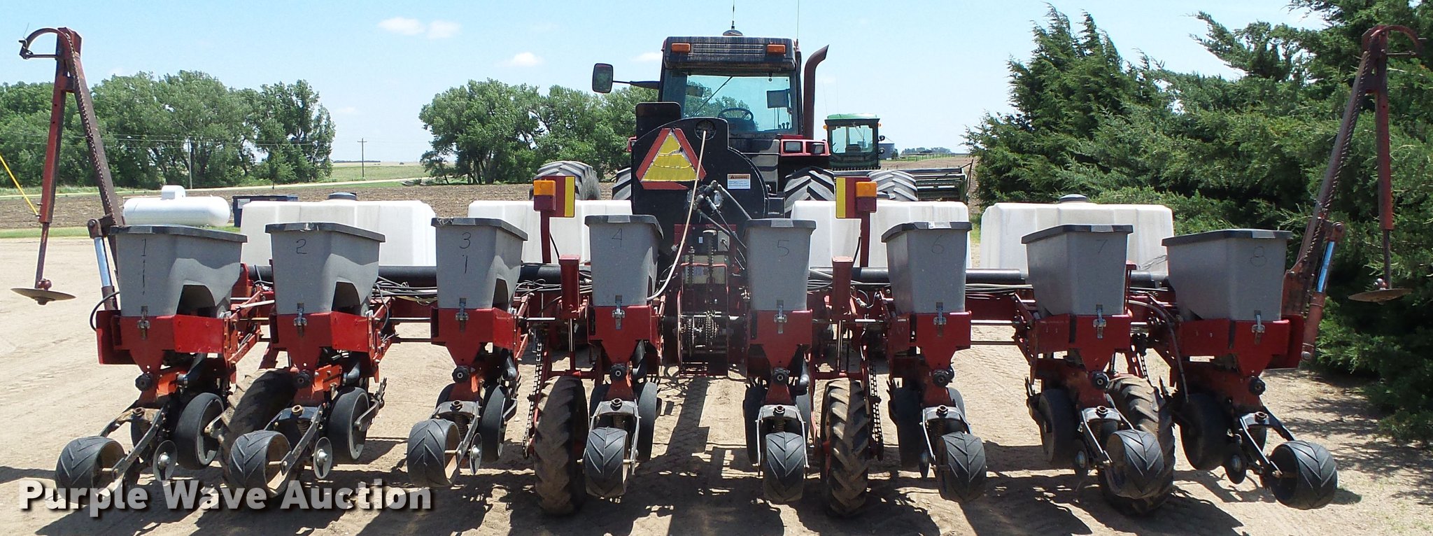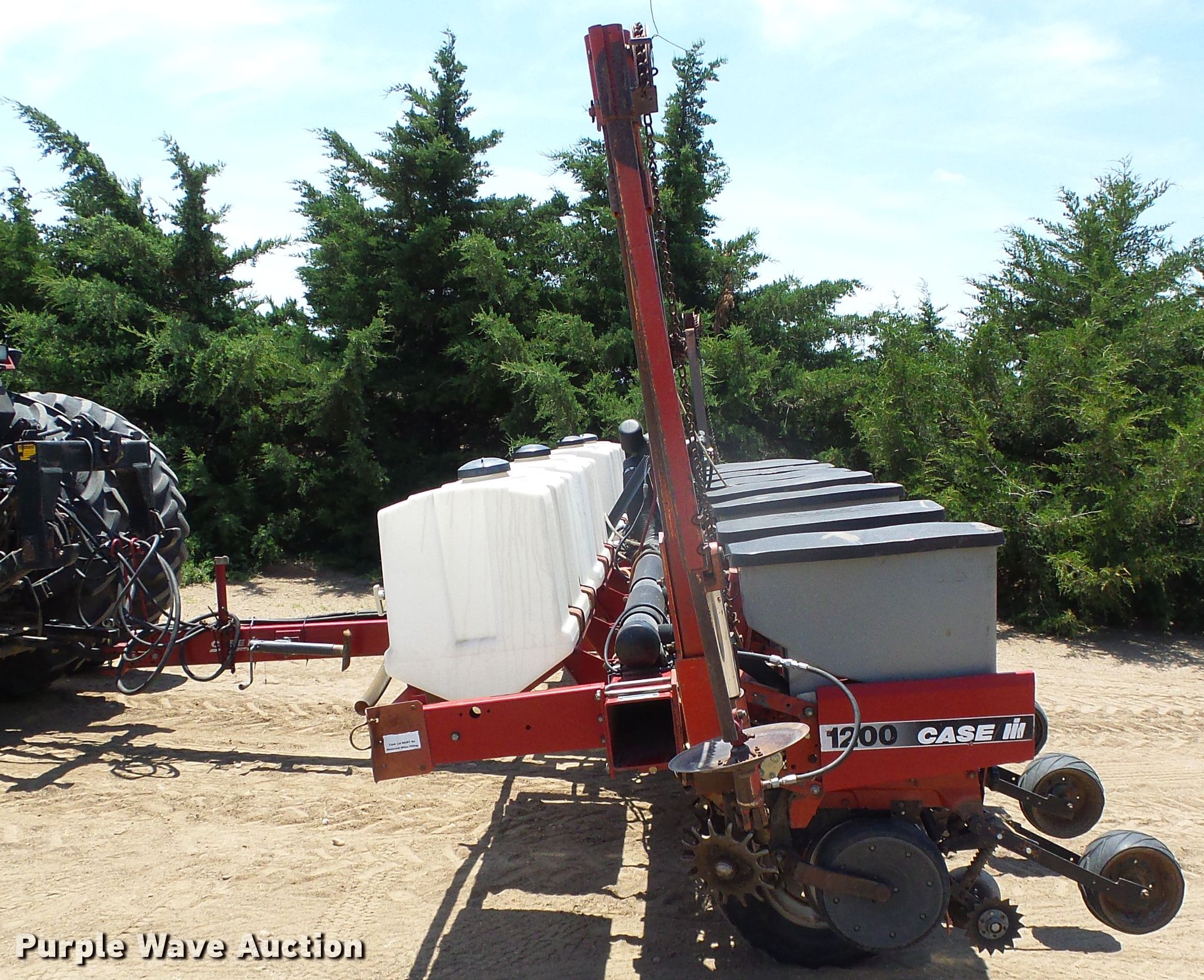 Purple Wave is selling a used Planter in Kansas. This item is a Case IH 1200 planter with the following: 20'W, Eight row units, 30" row spacing, Marker arms, Individual seed hoppers, Vacuum metering, Ground meter drive, HD spring down pressure, Row cleaners, Double disk openers, Double gauge wheels, Single rubber closing system, (4) 70 gallon liquid fertilizer tanks, System currently not hooked up, Case AFS Pro 600 monitor, (4) 7.60-15 drive/outside tires, Operators manual, Additional corn, soybean, and milo seed meters, Serial CBJ0001097