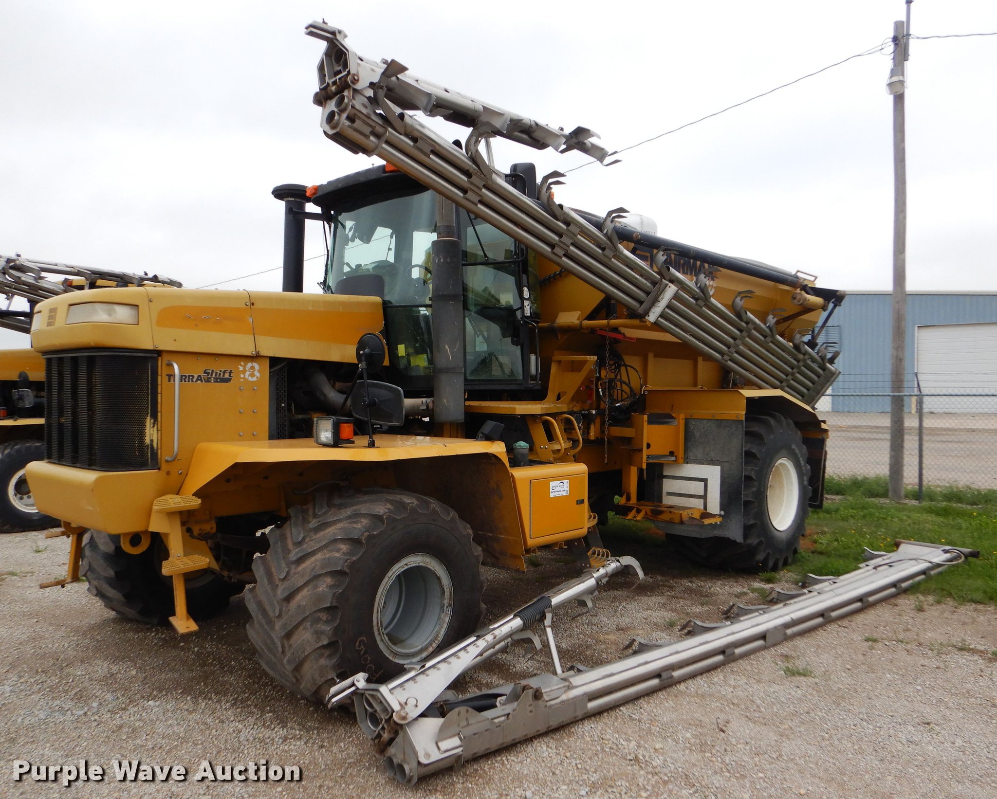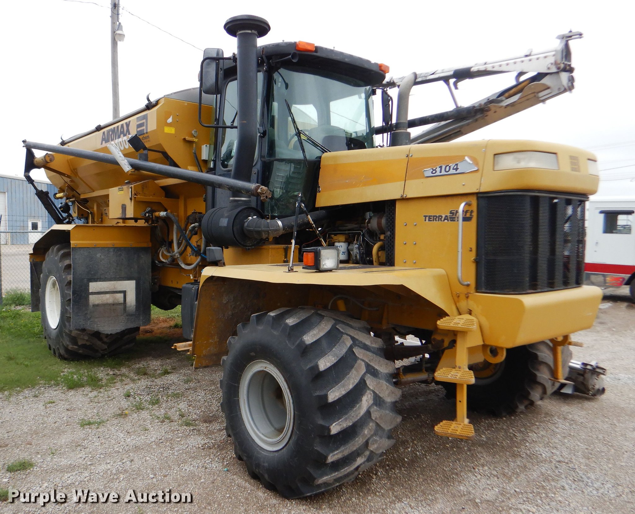 Purple Wave is selling a used Applicator Self Propelled in Kansas. This item is a 2002 Ag-Chem TerraGator 8104 applicator with the following: Approx. 13,000 hours, John Deere 6081HF001C 8.1L six cylinder diesel engine, TerraShift powershift transmission, AC and heat, Airmax 1000 dry spreader bed, 12'L, 1,000 cu. ft. capacity, Roll tarp, 70'W boom, Hydraulic boom fold,, Hydraulic axle width adjust, 48x31.00-20 front flotation tires, 66x43.00-25 rear flotation tires, Boom arm broken, Parts may be missing, Unknown operating condition, Unit# 18