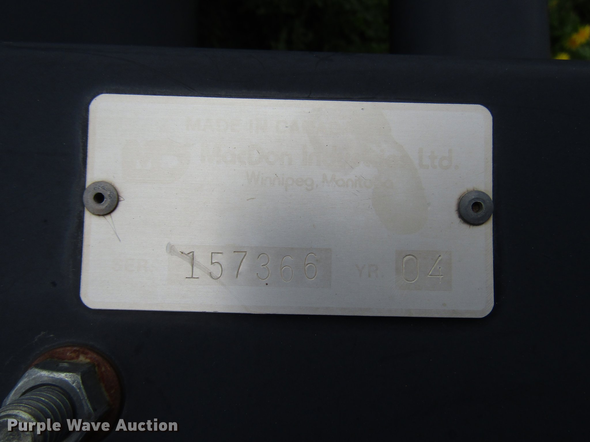 Purple Wave is selling a used Platform or Stripper Head in Wyoming. This item is a 2004 MacDon 922 auger head with the following: 14'W, Finger reel, Steel conditioners, Model 722, Serial 158009, Single driveline, Serial 157366