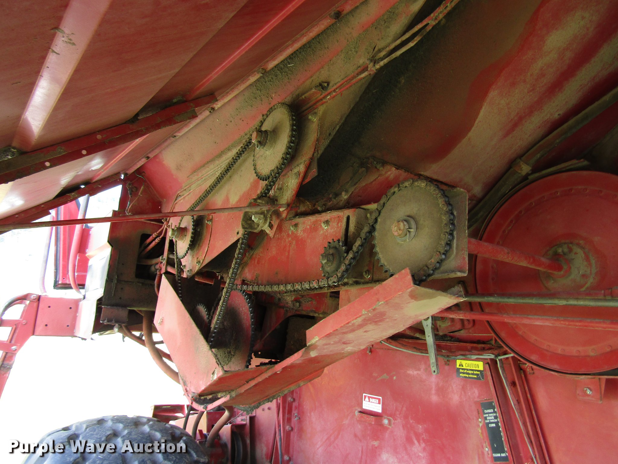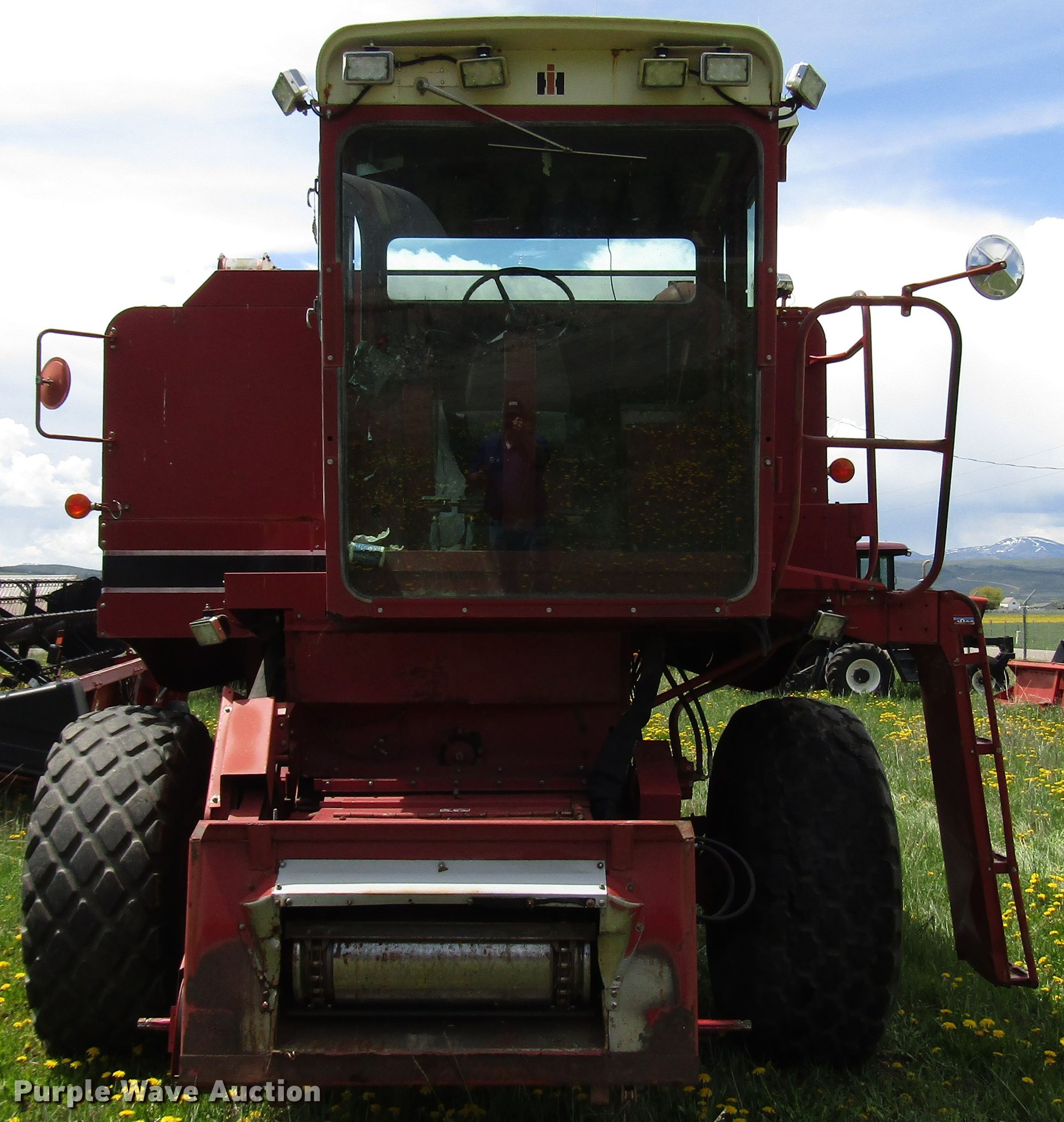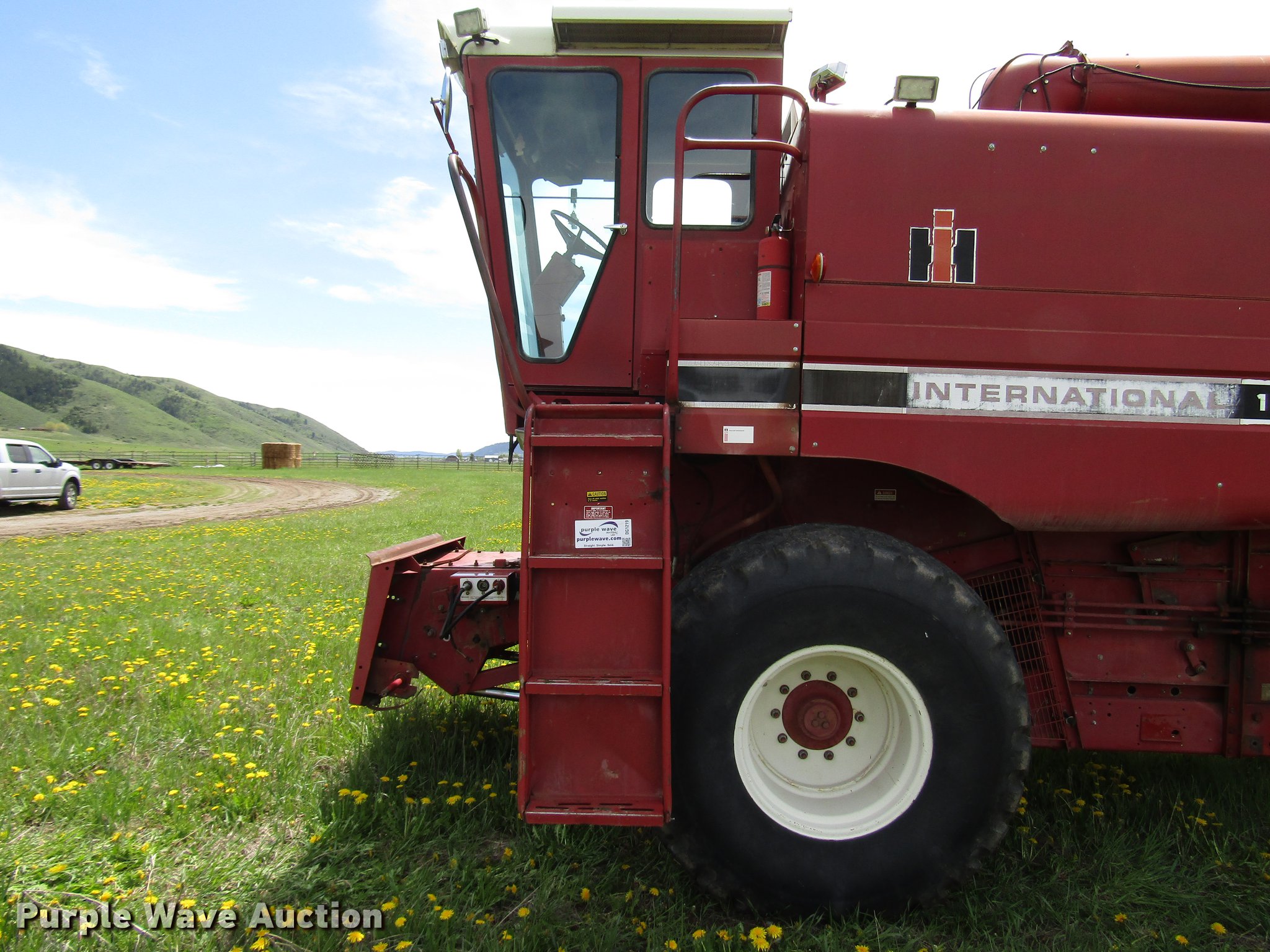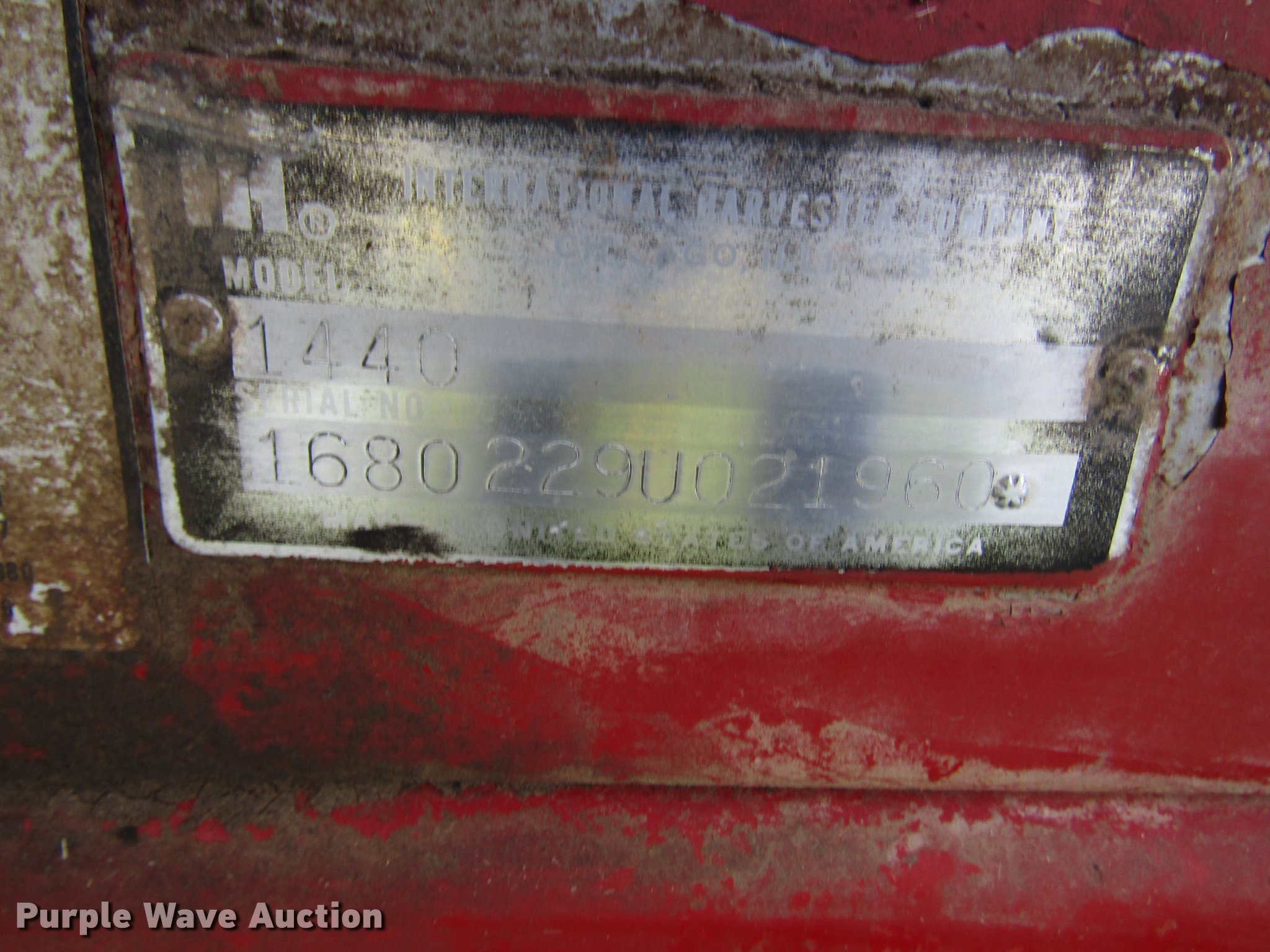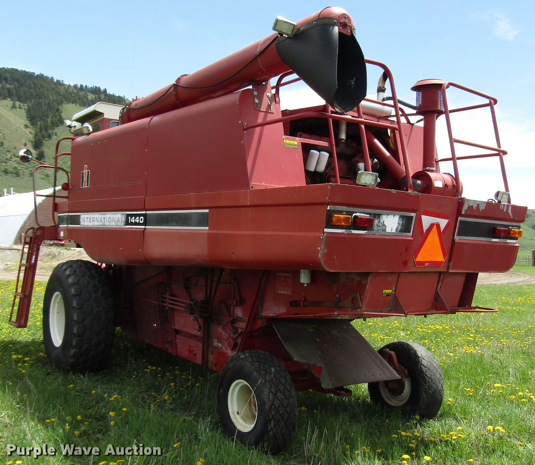 Purple Wave is selling a used Combine in Wyoming. This item is a 1981 International 1440 combine with the following: 3,883 engine hours on meter, International six cylinder diesel engine, Hydrostatic transmission, Heat, Round concaves, Chaff spreader, 12.5'L unloading auger, 23.1-26 front tires, 12.4-16 rear tires, Serial 1680229U021960