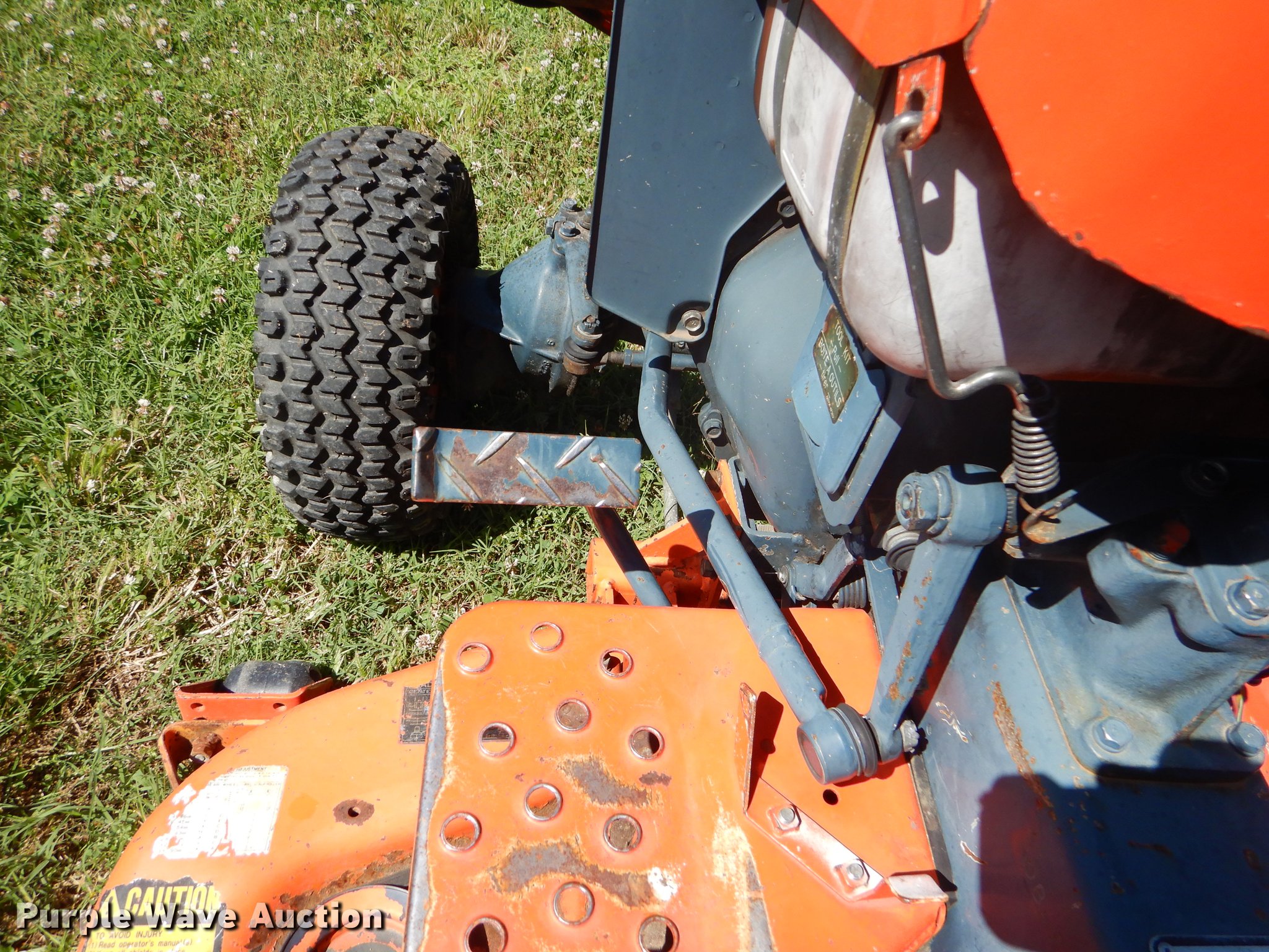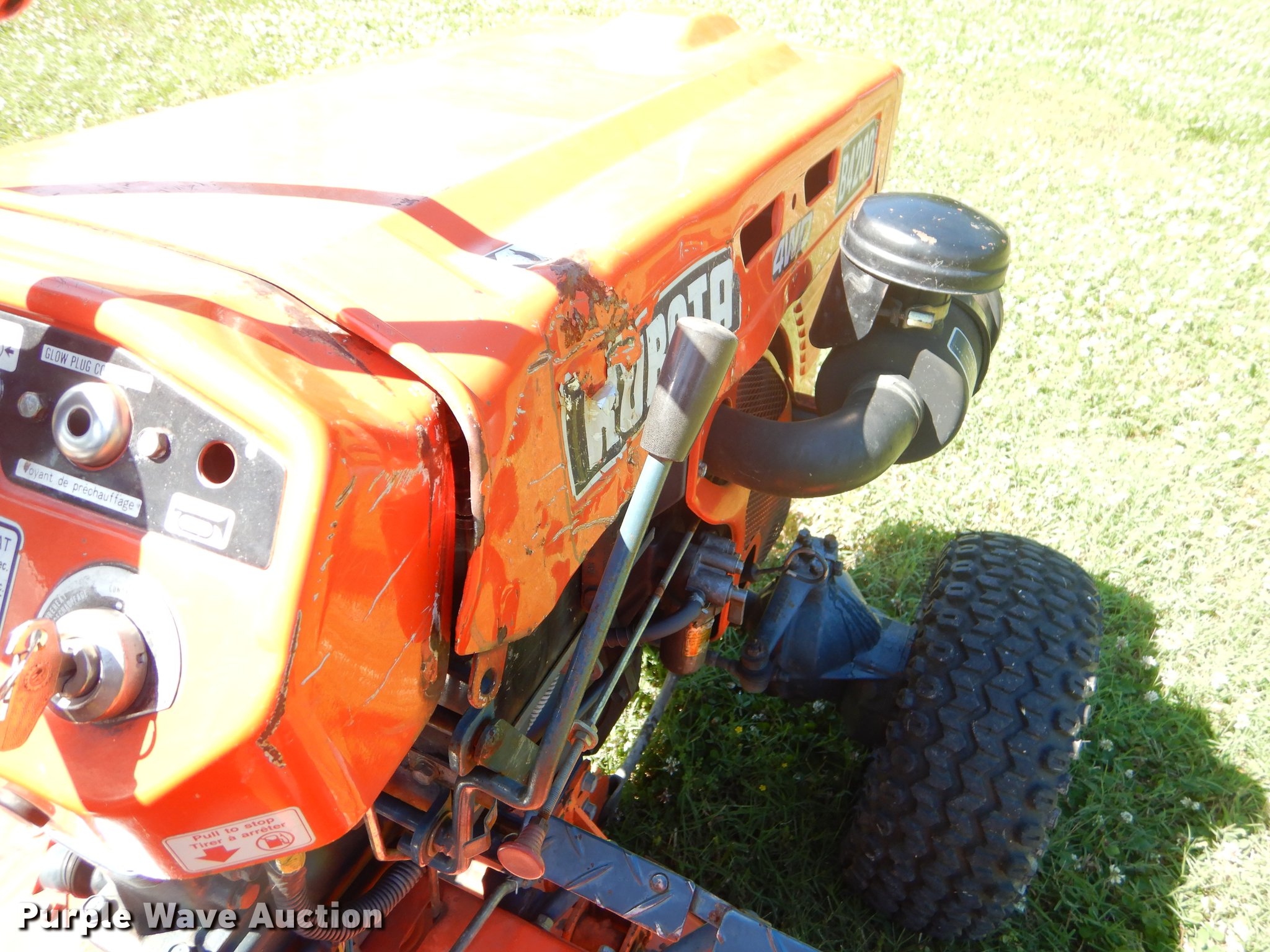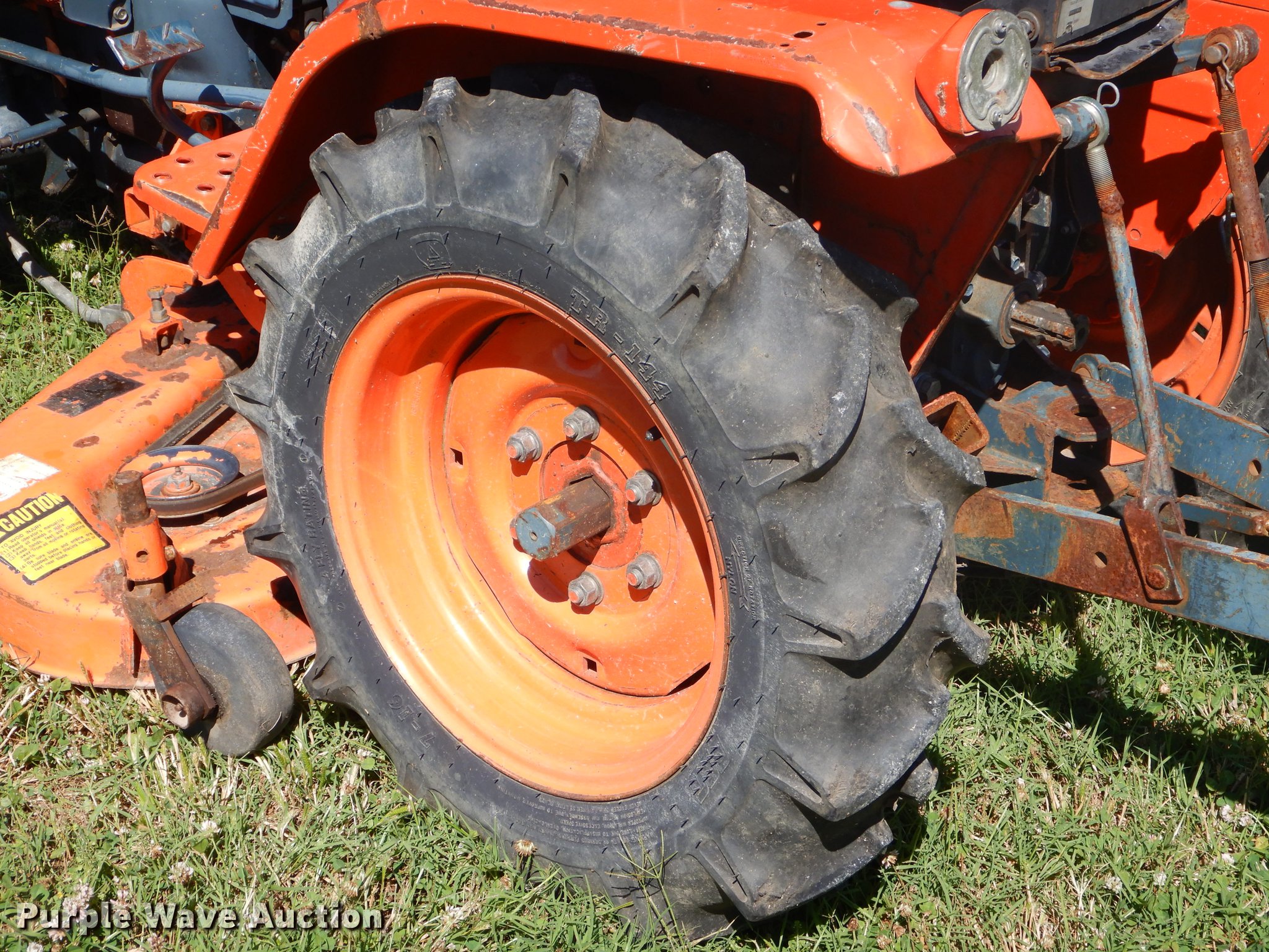 Purple Wave is selling a used Tractor in Kansas. This item is a 1998 Kubota B4200 MFWD tractor with the following: 2,056 hours on meter, Kubota V2203 two cylinder diesel engine, Manual transmission, 6F-2R gears, Three point, 540 PTO, 44"W mower deck, Model RC44-42, 18x8.50-10 front tires, 7-16L rear tires, Serial B4200D535100