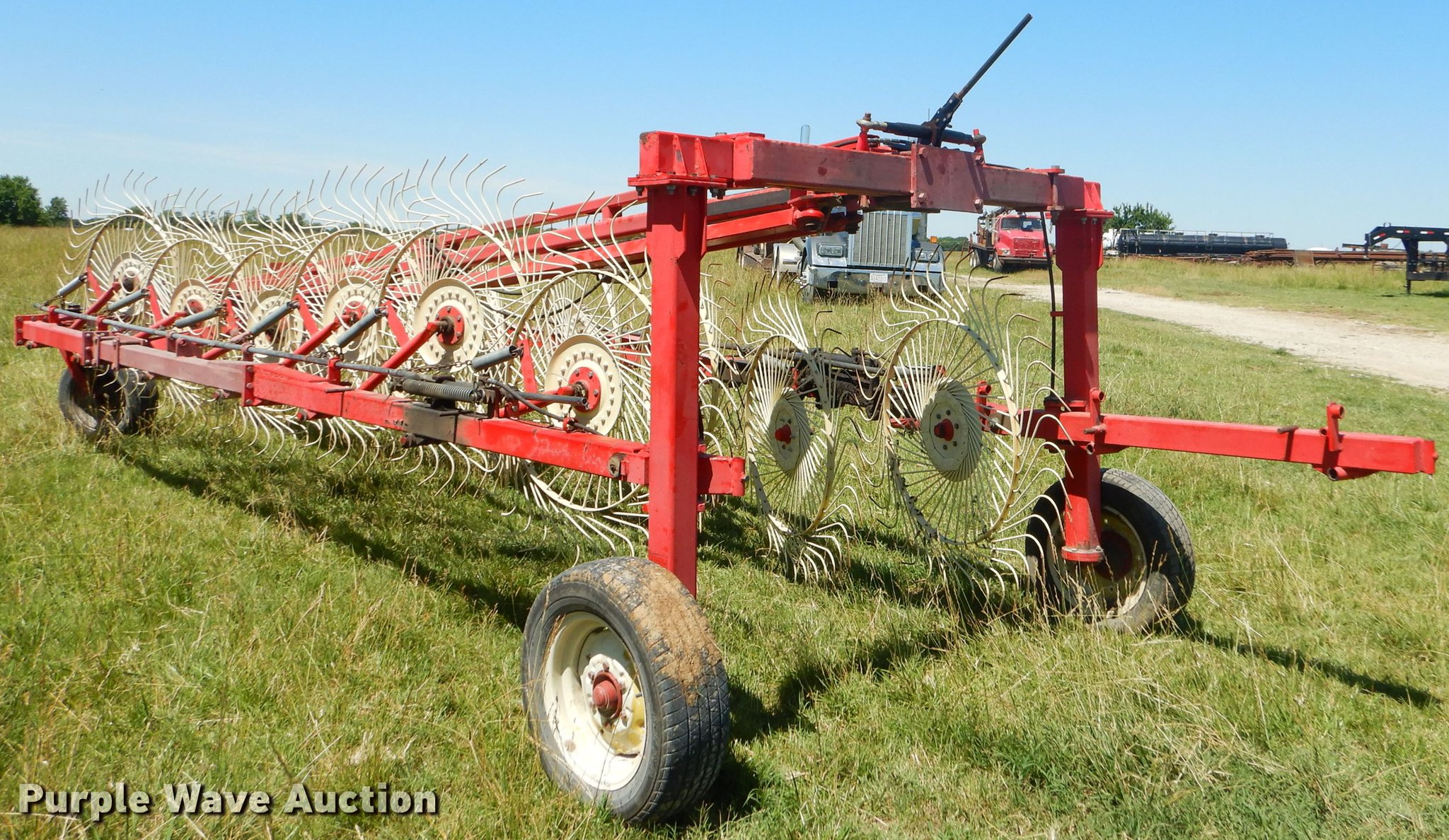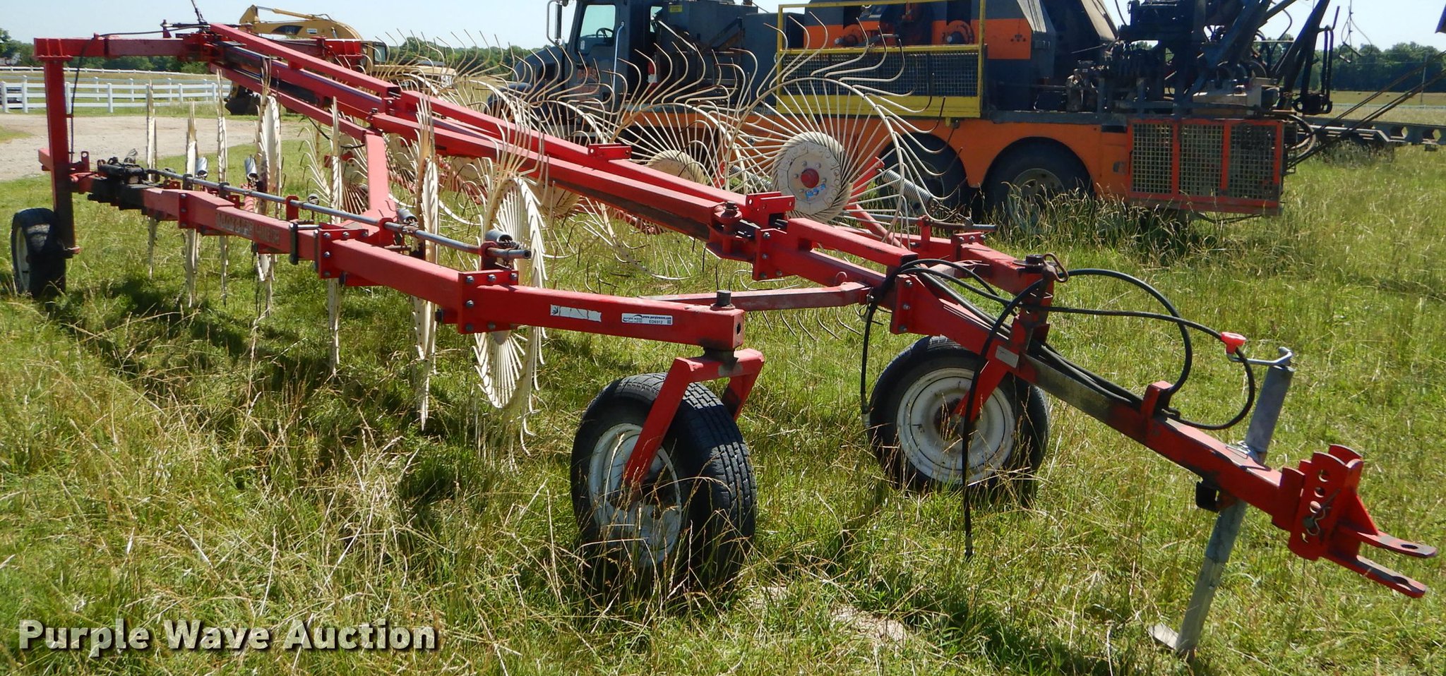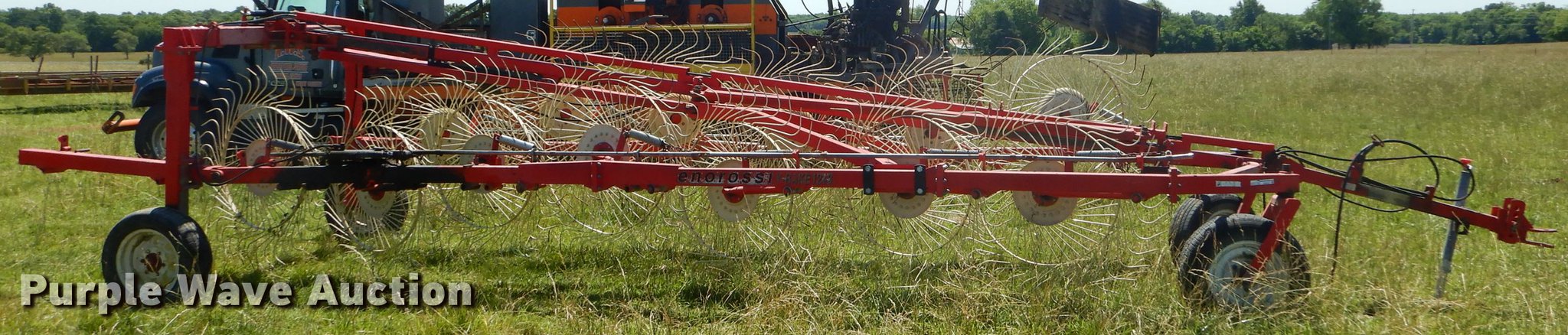 Purple Wave is selling a used Hay Rake in Kansas. This item is a 2003 Enorossi 12+3 hay rake with the following: Approx. 40'W, Hydraulic lift and fold, Pin hitch, Jack stand, 225/60R16 tires, Serial 570474