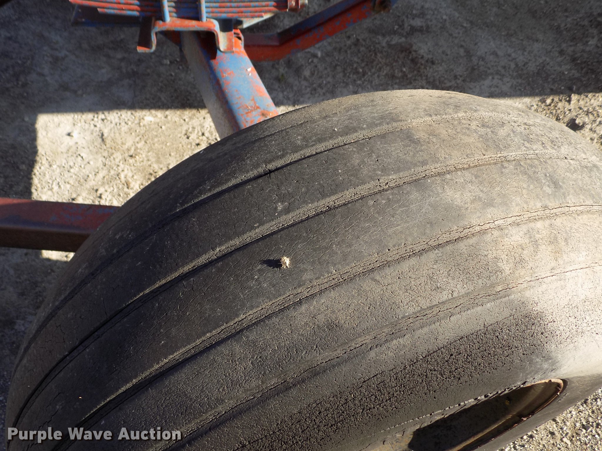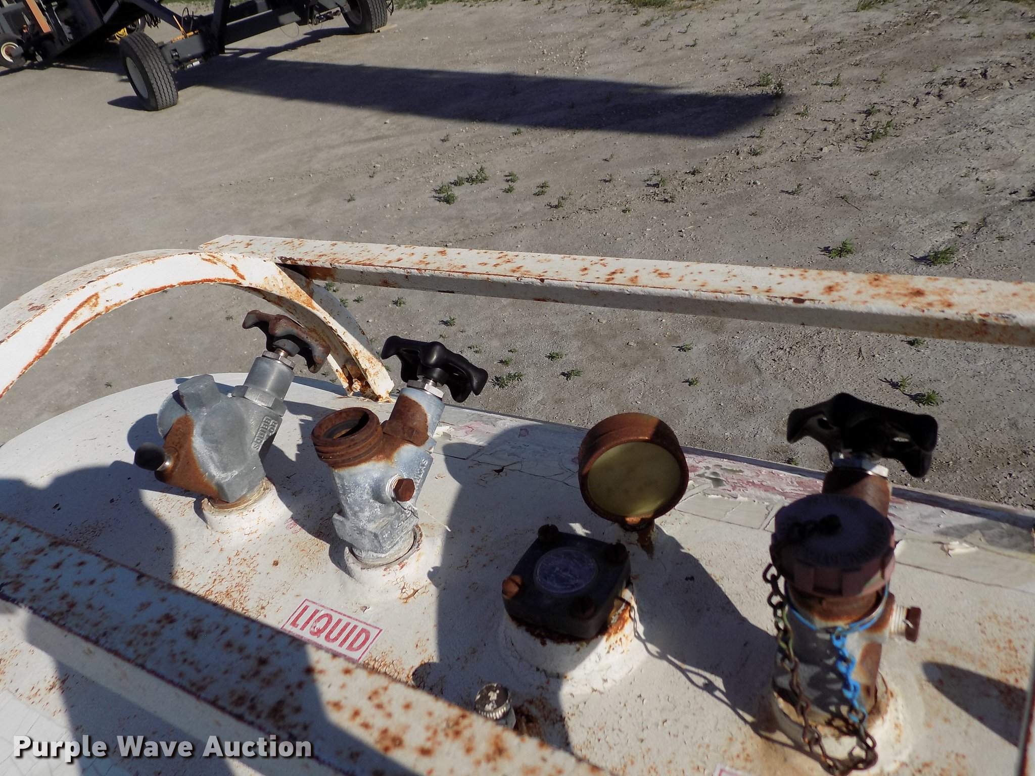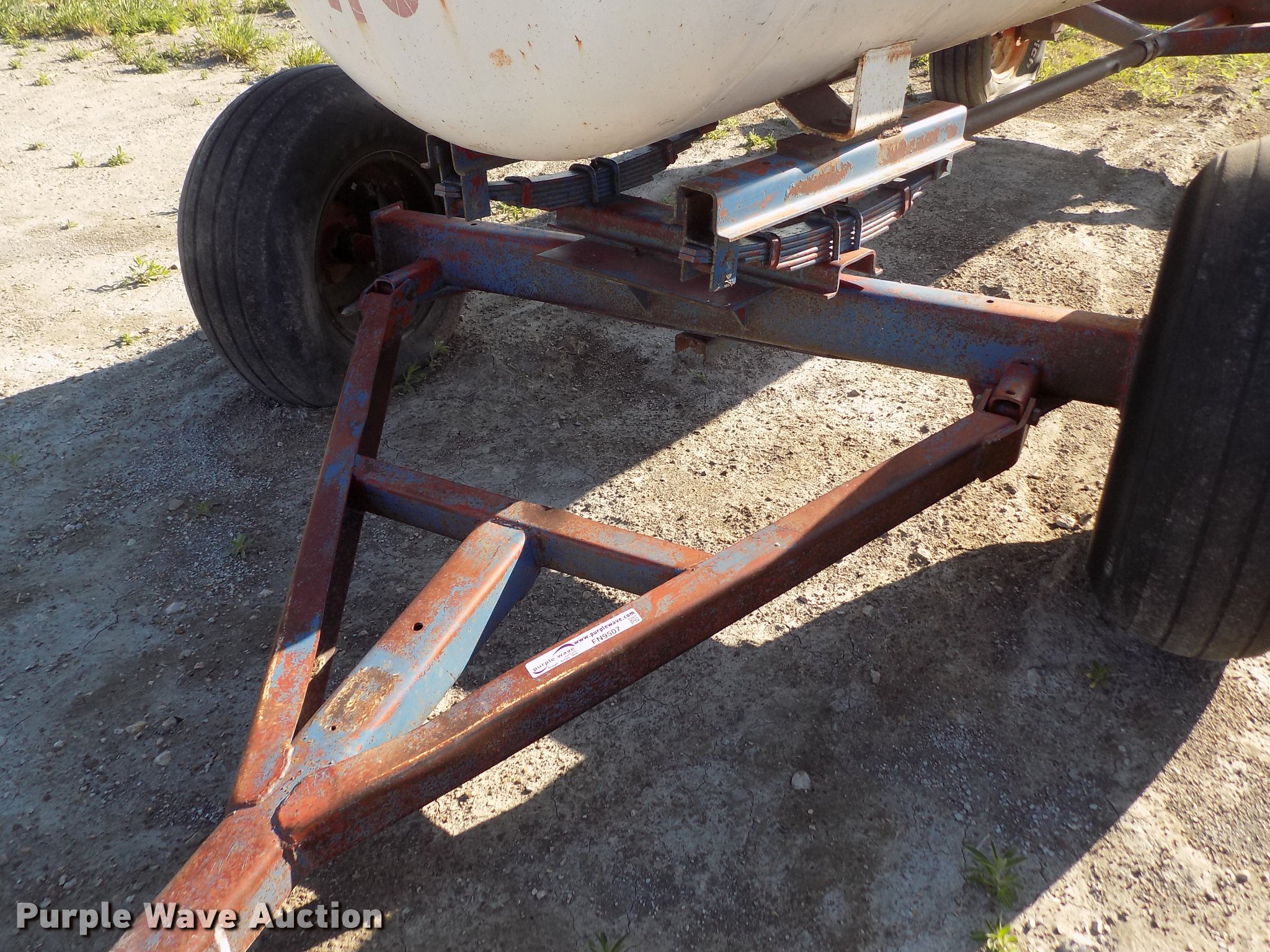 Purple Wave is selling a used Applicator Attach. in Kansas. This item is a Trinity anhydrous ammonia tank with the following: 1,000 gallon capacity, Clevis hitch, 11L-15 tires, Flat tire