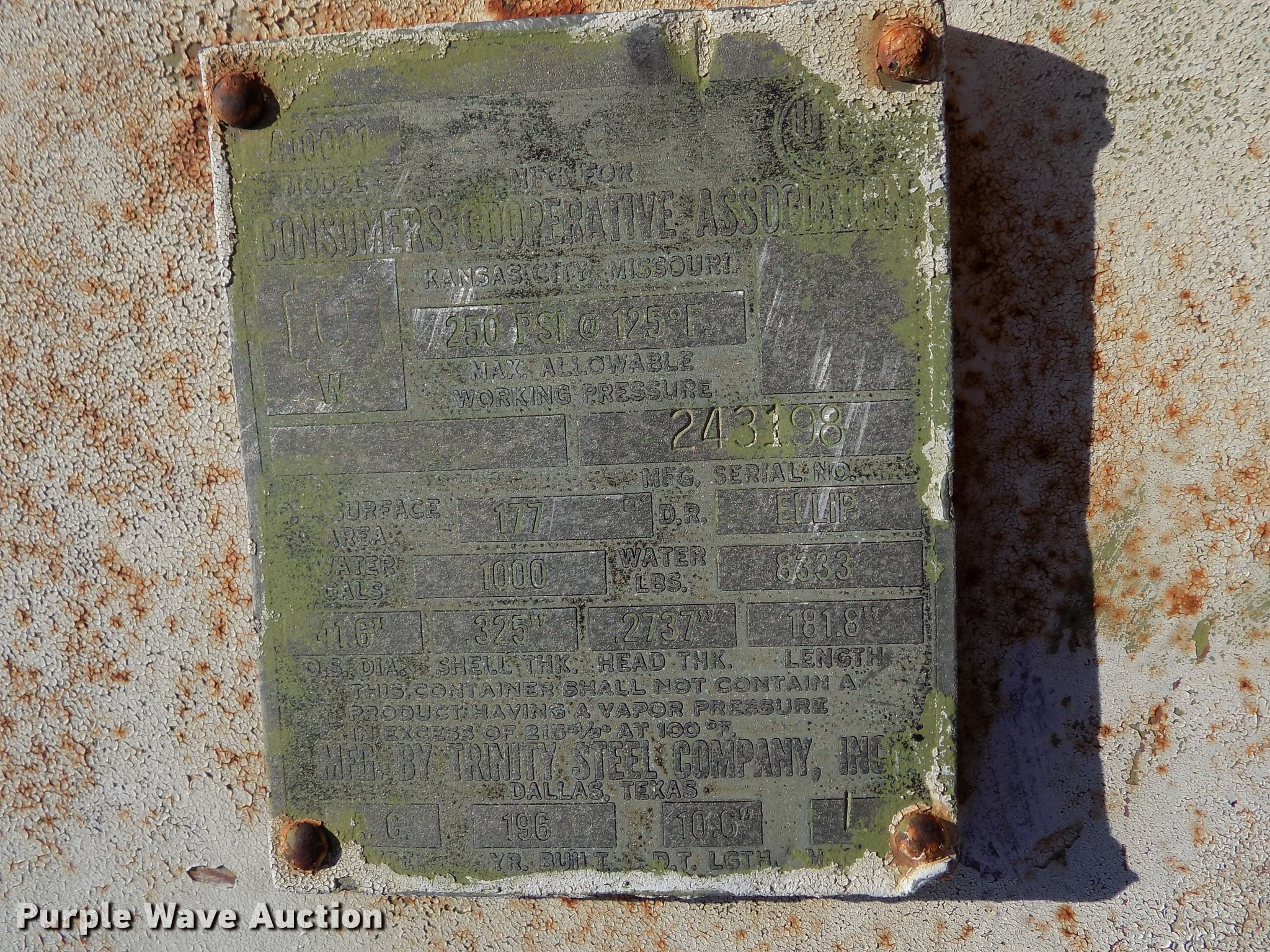 Trinity anhydrous ammonia tank has sold in Palco, Kansas for $242. Item FN9507 sold on July 17th, 2019.