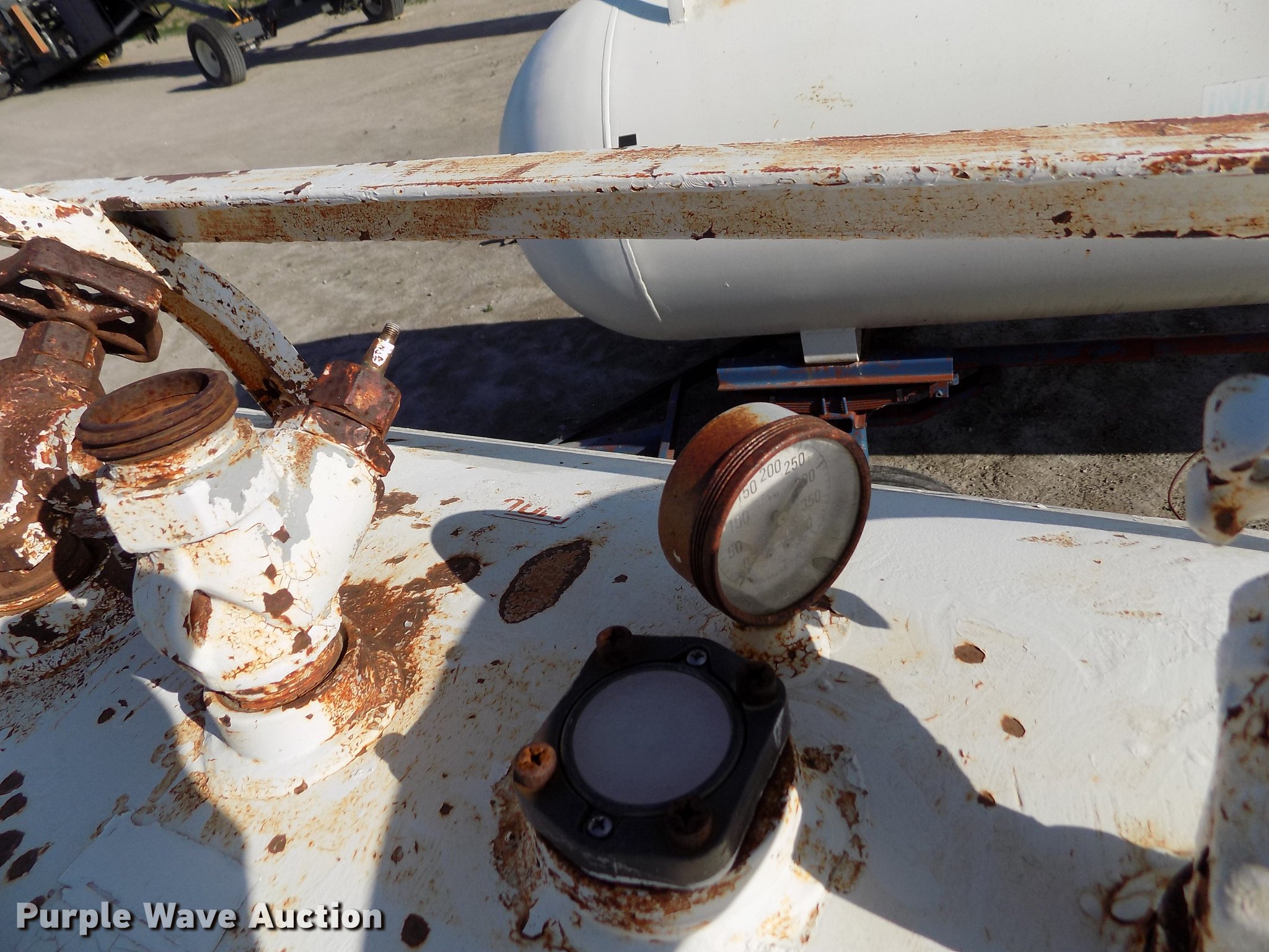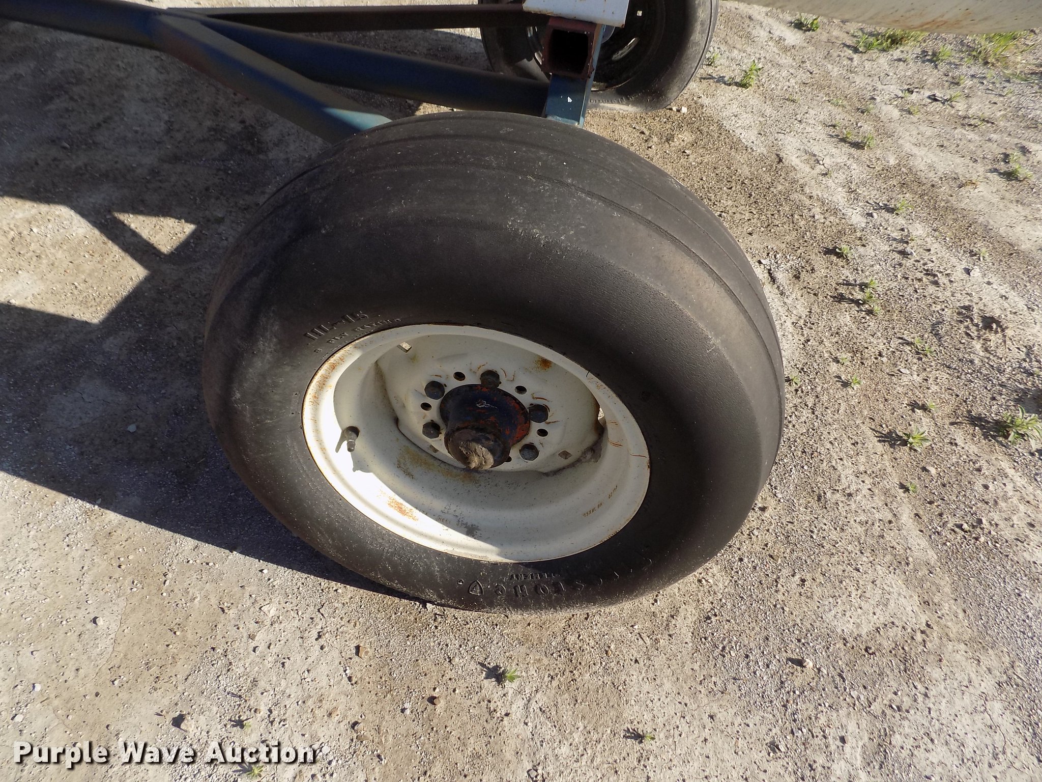 Purple Wave is selling a used Applicator Attach. in Kansas. This item is a Trinity anhydrous ammonia tank with the following: 1,000 gallon capacity, Clevis hitch, 11L-15 tires, Flat tire