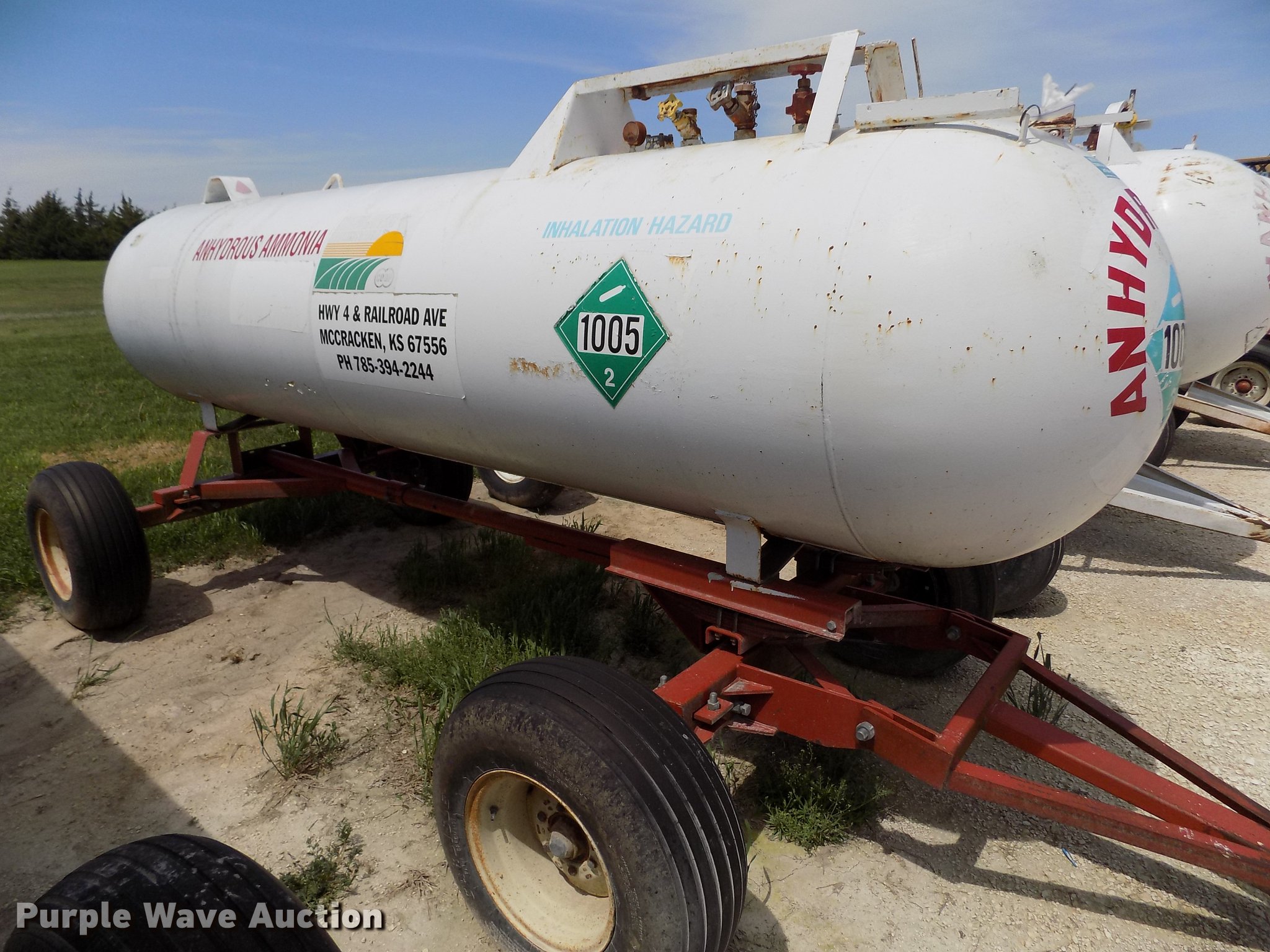 Purple Wave is selling a used Applicator Attach. in Kansas. This item is a Beaird anhydrous ammonia tank with the following: 1,000 gallon capacity, Duaolift running gear, Clevis hitch, Rear hitch, 11L-15 tires