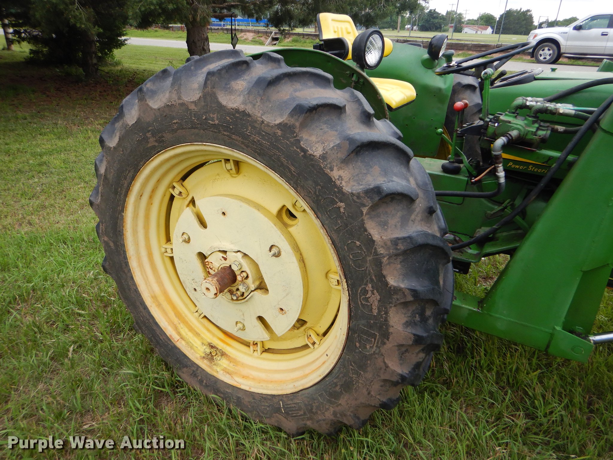 Purple Wave is selling a used Tractor in Kansas. This item is a 1973 John Deere 2030 tractor with the following: 110 hours on meter, Actual hours unknown, hour meter has been replaced, John Deere 3.6L four cylinder gas engine, Serial 263321T, Manual transmission, 8F-4R gears, GB 800 loader, 65"W bucket, Two-lever controls, Three point, Top link, 540 PTO, (2) rear hydraulic remotes, (2) wheel weights, 7.50-16 front tires, 15.5-38 rear tires, Serial 180935T