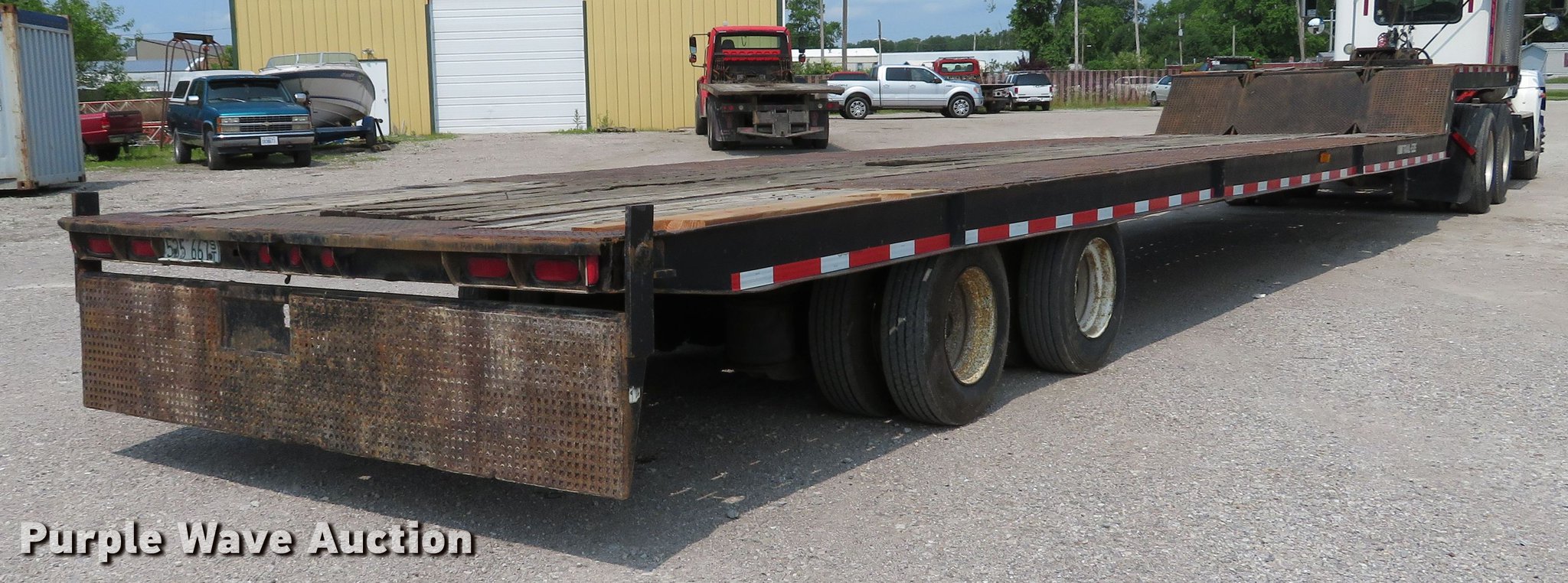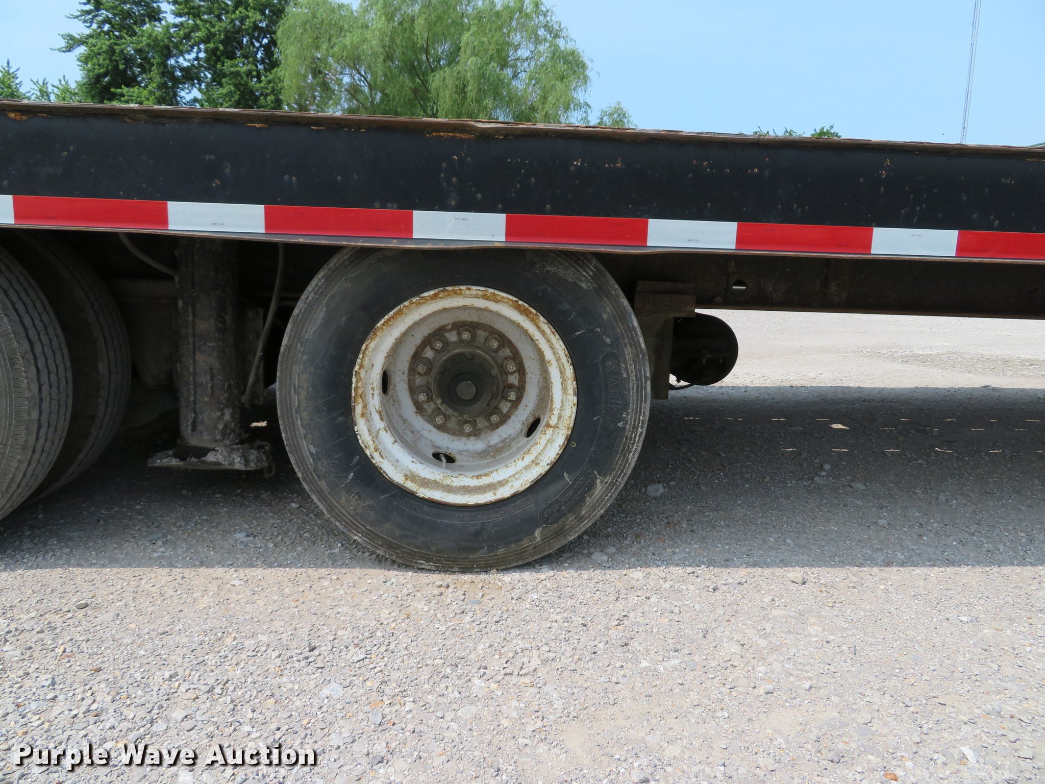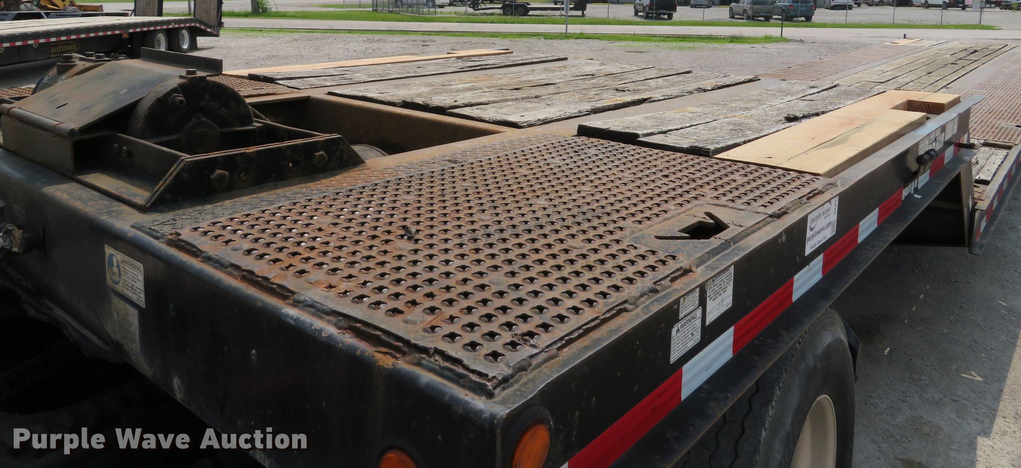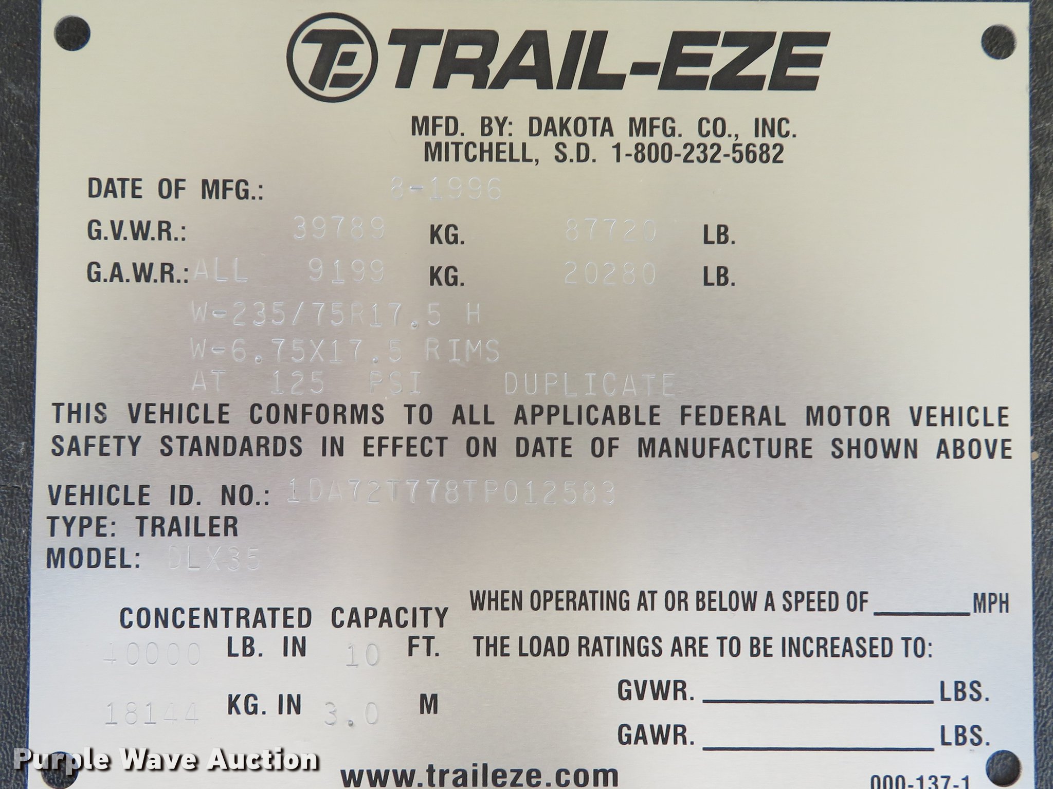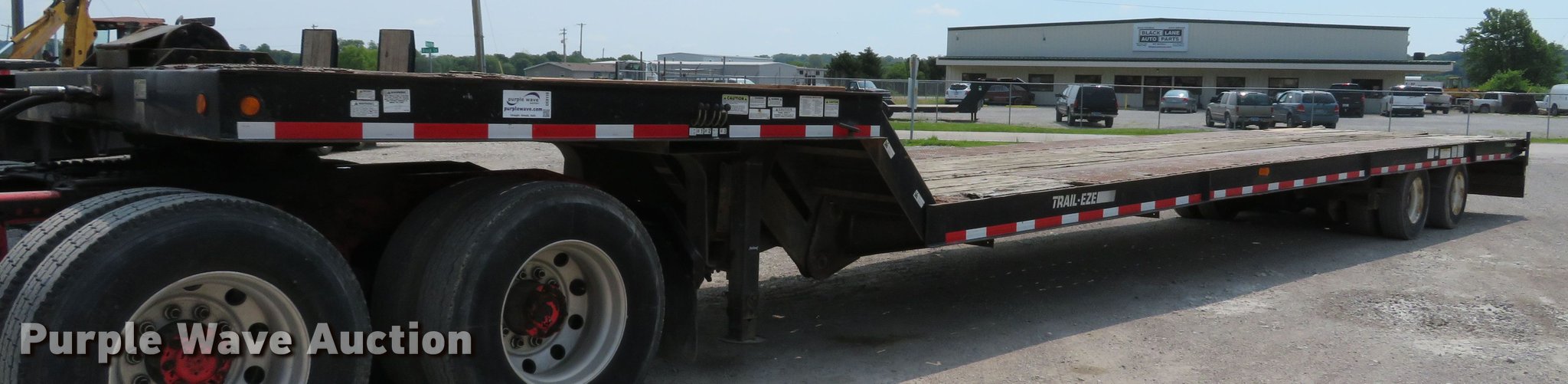 Purple Wave is selling a used Equip. Trailer in Illinois. This item is a 1996 Trail-Eze DLX35 tilt deck equipment trailer with the following: 46'L x 101"W overall, 10'L top deck, 36'L main deck, 20" tail length, 36" floor height, Wood deck, Braden AMU7-16FU winch, Approx. 12,000 lbs capacity, Hydraulic controls, Dual leg landing gear, Air suspension, Air brakes, Tandem axle, Steel wheels, 235/75R17.5 tires, GVWR 39,789 lbs, GAWR 9,199 lbs, Axle slide cylinder leaks
