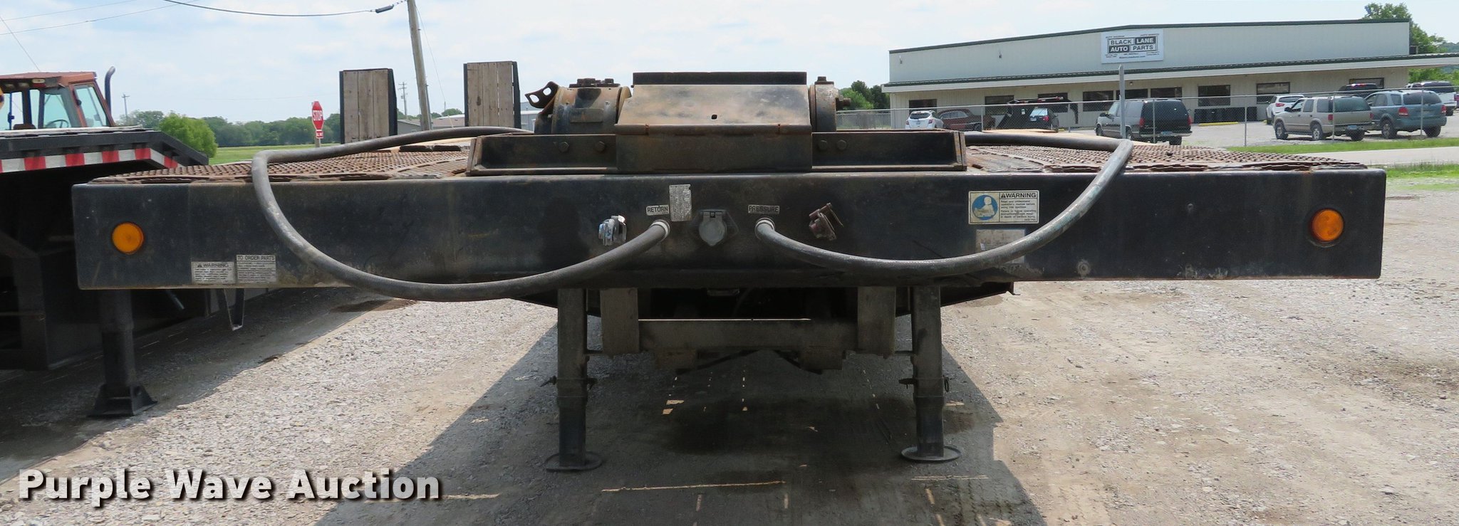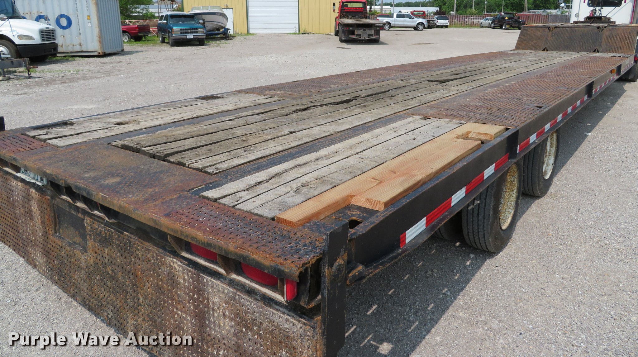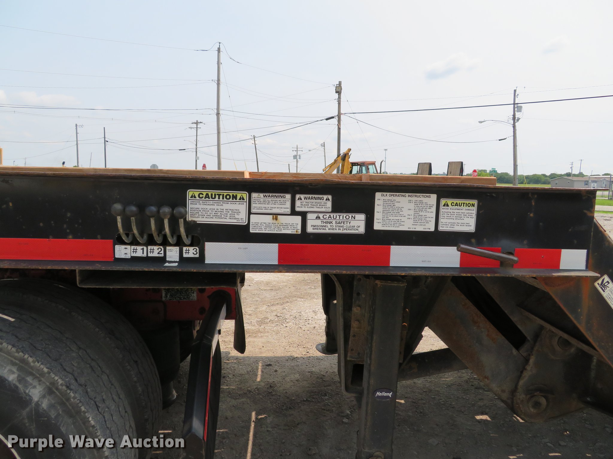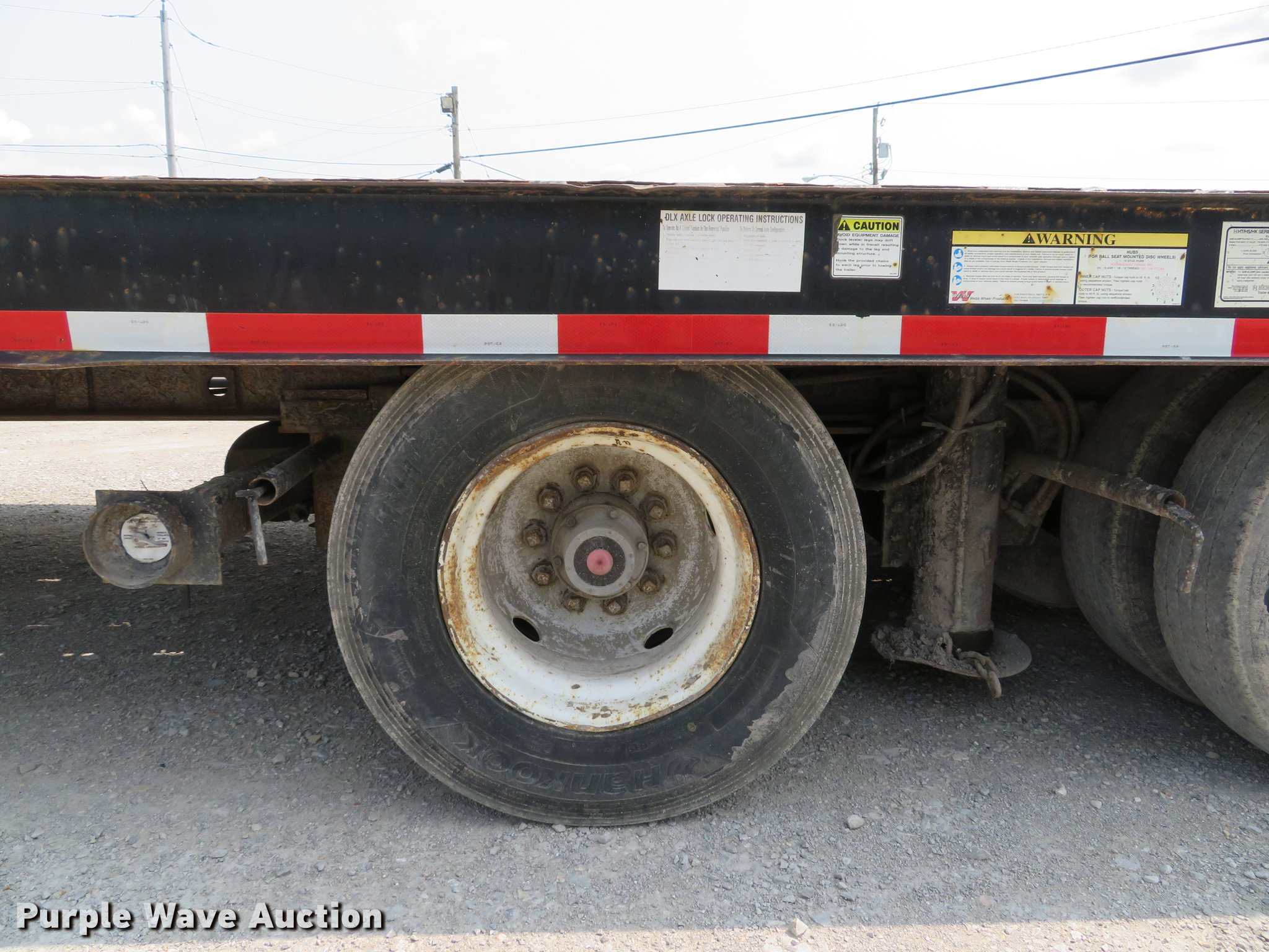 Purple Wave is selling a used Equip. Trailer in Illinois. This item is a 1996 Trail-Eze DLX35 tilt deck equipment trailer with the following: 46'L x 101"W overall, 10'L top deck, 36'L main deck, 20" tail length, 36" floor height, Wood deck, Braden AMU7-16FU winch, Approx. 12,000 lbs capacity, Hydraulic controls, Dual leg landing gear, Air suspension, Air brakes, Tandem axle, Steel wheels, 235/75R17.5 tires, GVWR 39,789 lbs, GAWR 9,199 lbs, Axle slide cylinder leaks