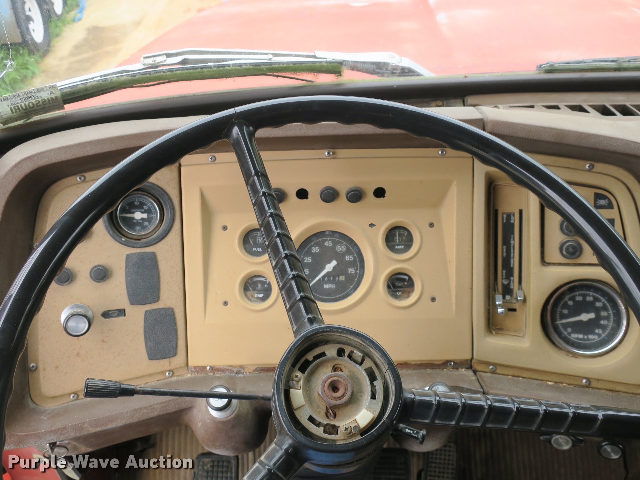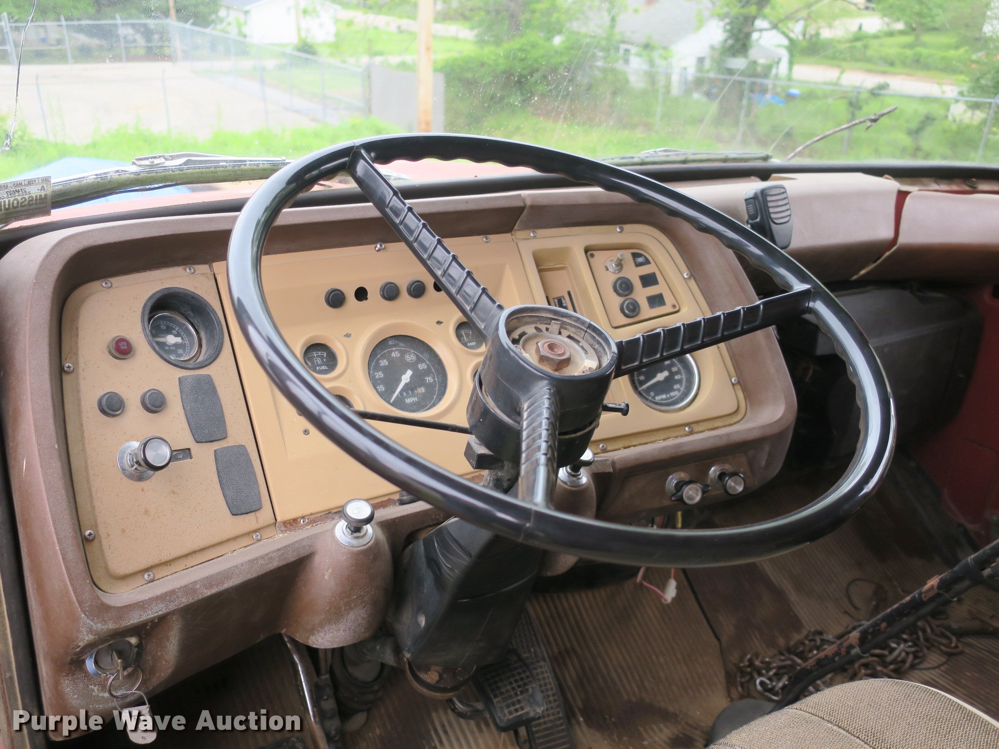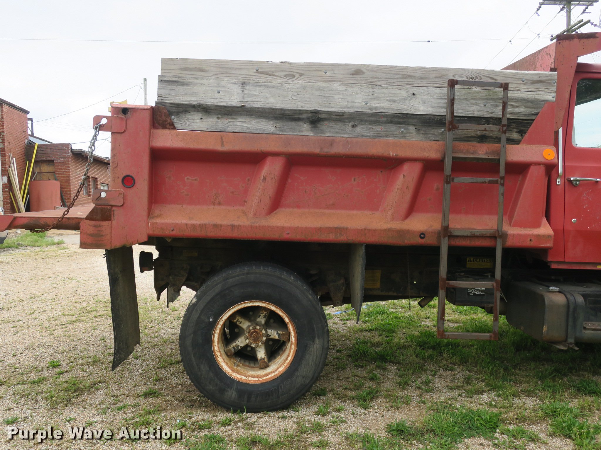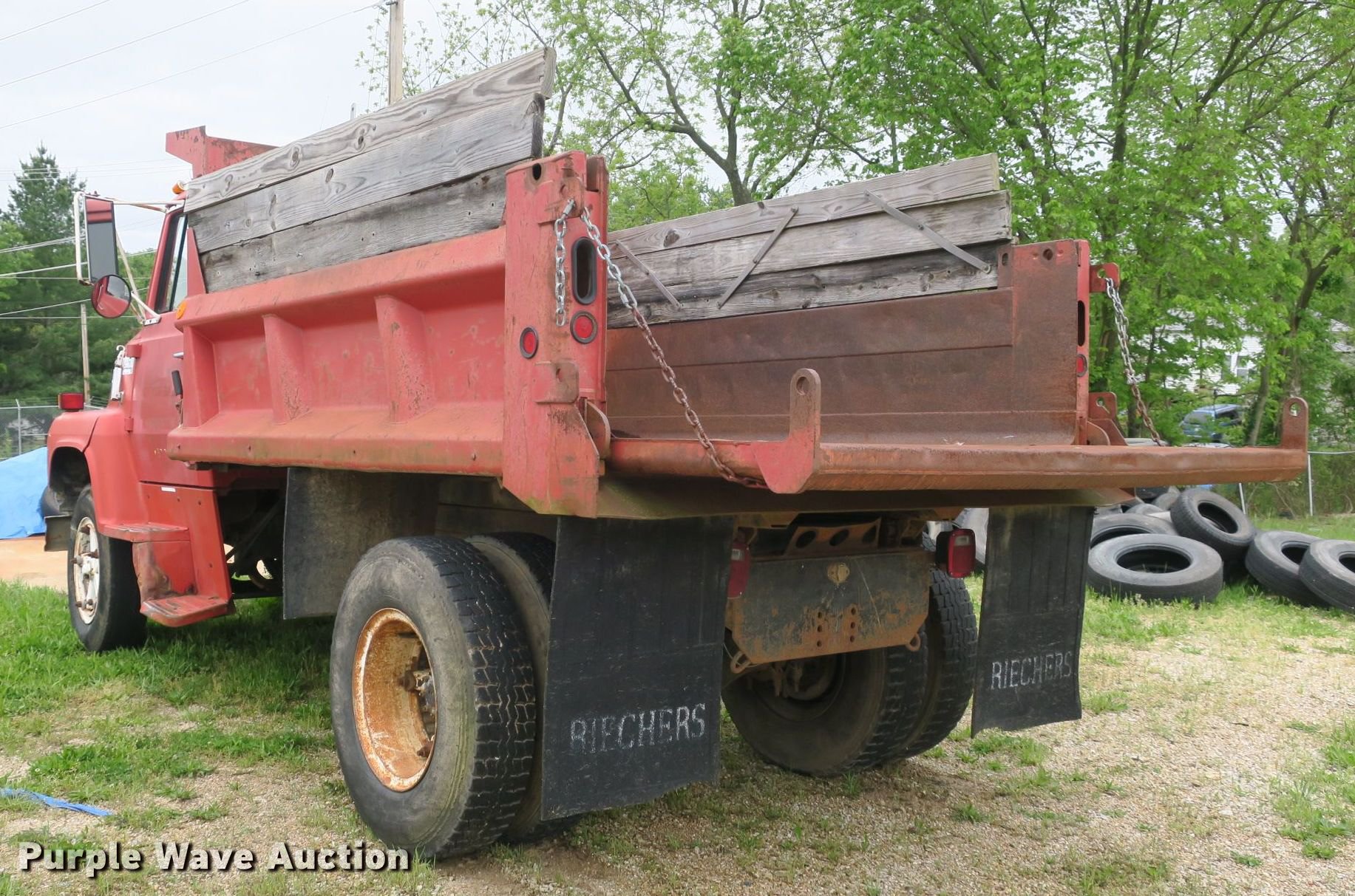 Purple Wave is selling a used Construction Dump Truck in Missouri. This item is a 1982 Ford 700 dump truck with the following: 91,612 miles on odometer, 6.1L V8 gas engine, 10 speed manual transmission, Single axle, Heat, PTO, Heil SLT5YD10 steel dump bed, 10'L x 96"W, 24" side height, 22" side board height, Single ram hoist, Manual operated end gate, Single fuel tank, 220" wheelbase, Spring suspension, Hydraulic brakes, 9.00-20 front tires, 10.00-20 rear tires, GVWR 24,000 lbs, Windshield cracked, Non-operational brakes, Carburetor leaks fuel, Holes in bed, Vehicle must be towed or hauled