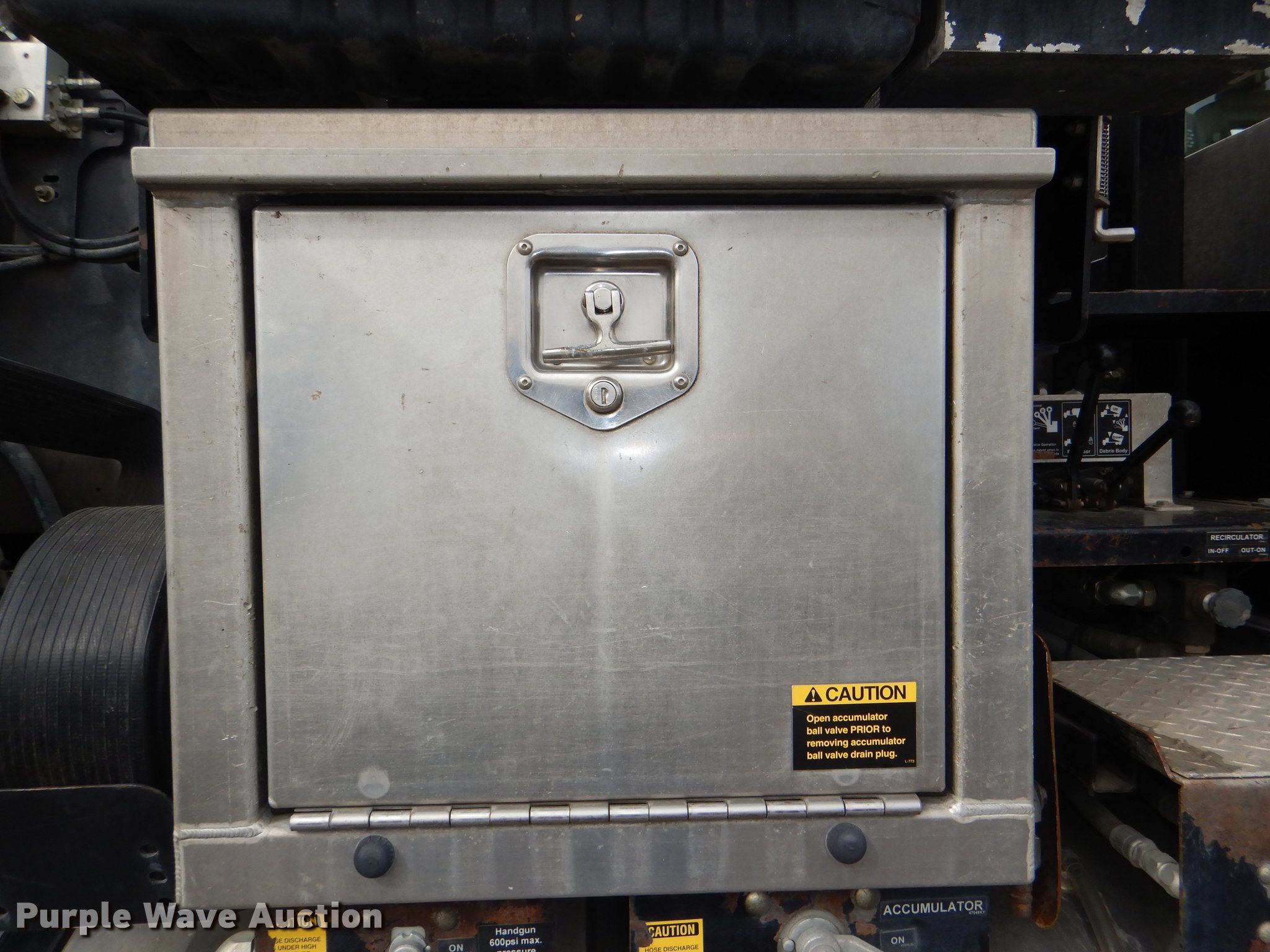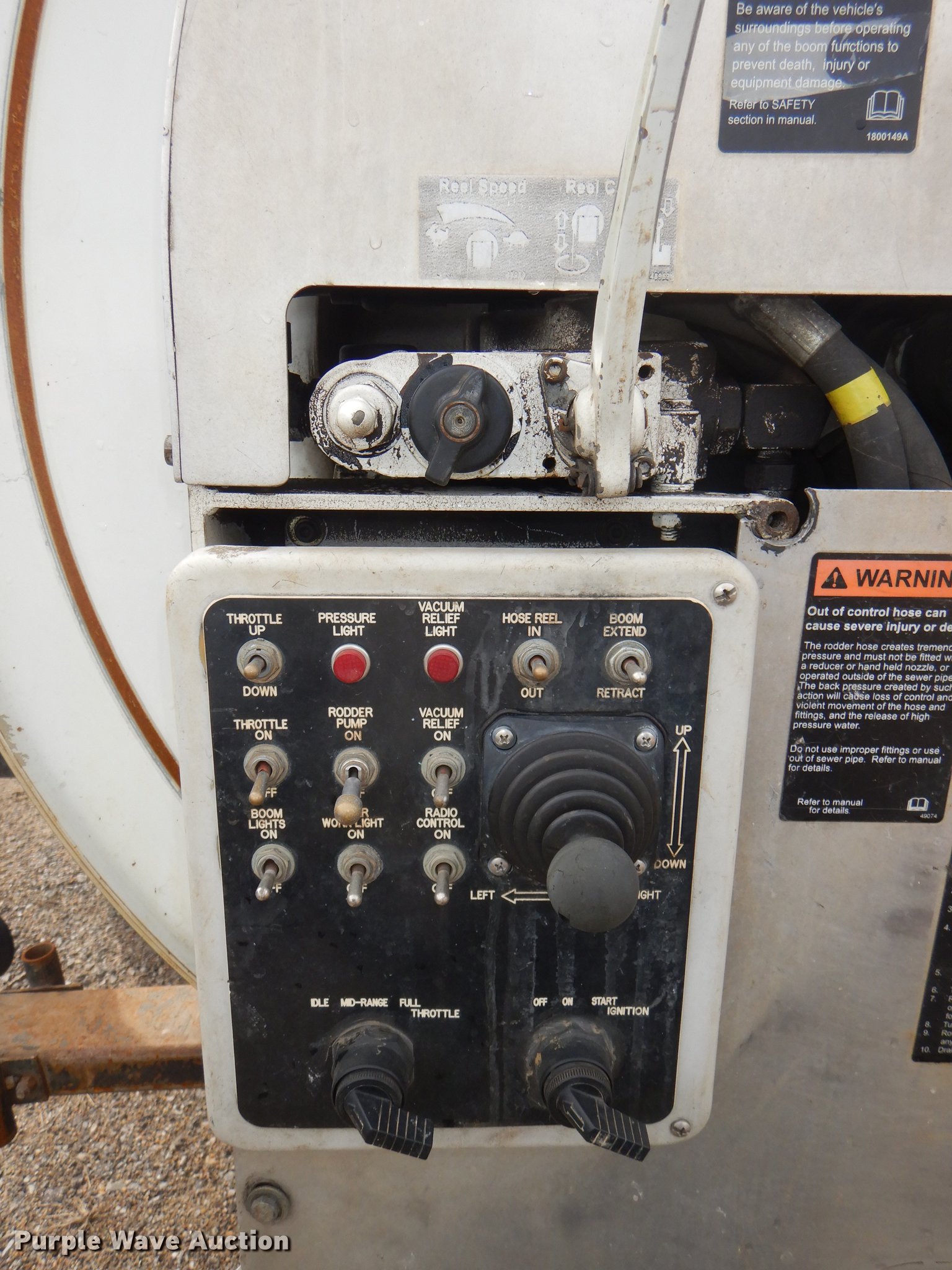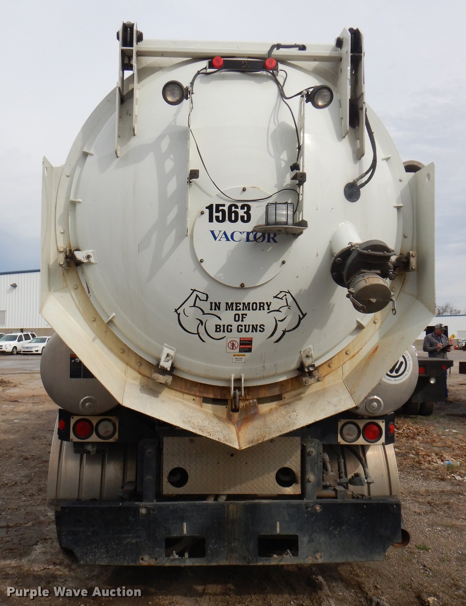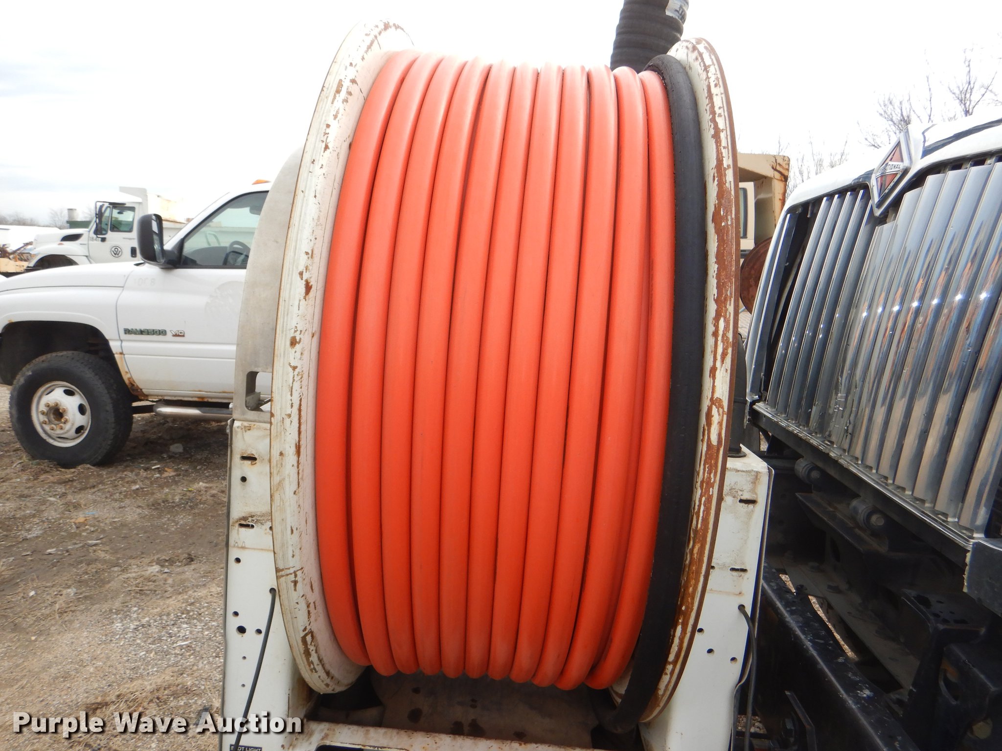 Purple Wave is selling a used Vacuum Truck in Kansas. This item is a 2007 International 7400 hydrovac truck with the following: 92,963 miles on odometer, International DT570 9.3L L6 diesel engine, 285 HP, Allison automatic transmission, Single axle, AC and heat, Cruise, Heated mirrors, PTO, Vacotr 2110-J5 vacuum bed, John Deere 6.8L L6 diesel engine, Front hydraulic hose reel, 7" diameter telescopic boom, Spring suspension, Air brakes, 385/65R22.5 front tires, 11R22.5 rear tires, GVWR 41,000 lbs, Batteries dead