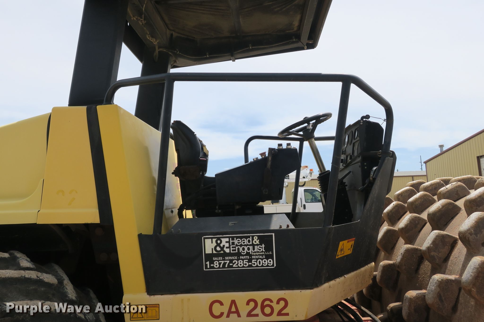 Purple Wave is selling a used Single Drum Roller Compactor in Arkansas. This item is a Dynapac CA262D single drum vibratory roller with the following: Cummins 5.9L six cylinder diesel engine, Hydrostatic transmission, Canopy, Single vibratory system, 85"W x 60" diameter padfoot roller, Front drum scrapers, 23.1-26 rear tires, Non-operational hour meter, Serial 67220481