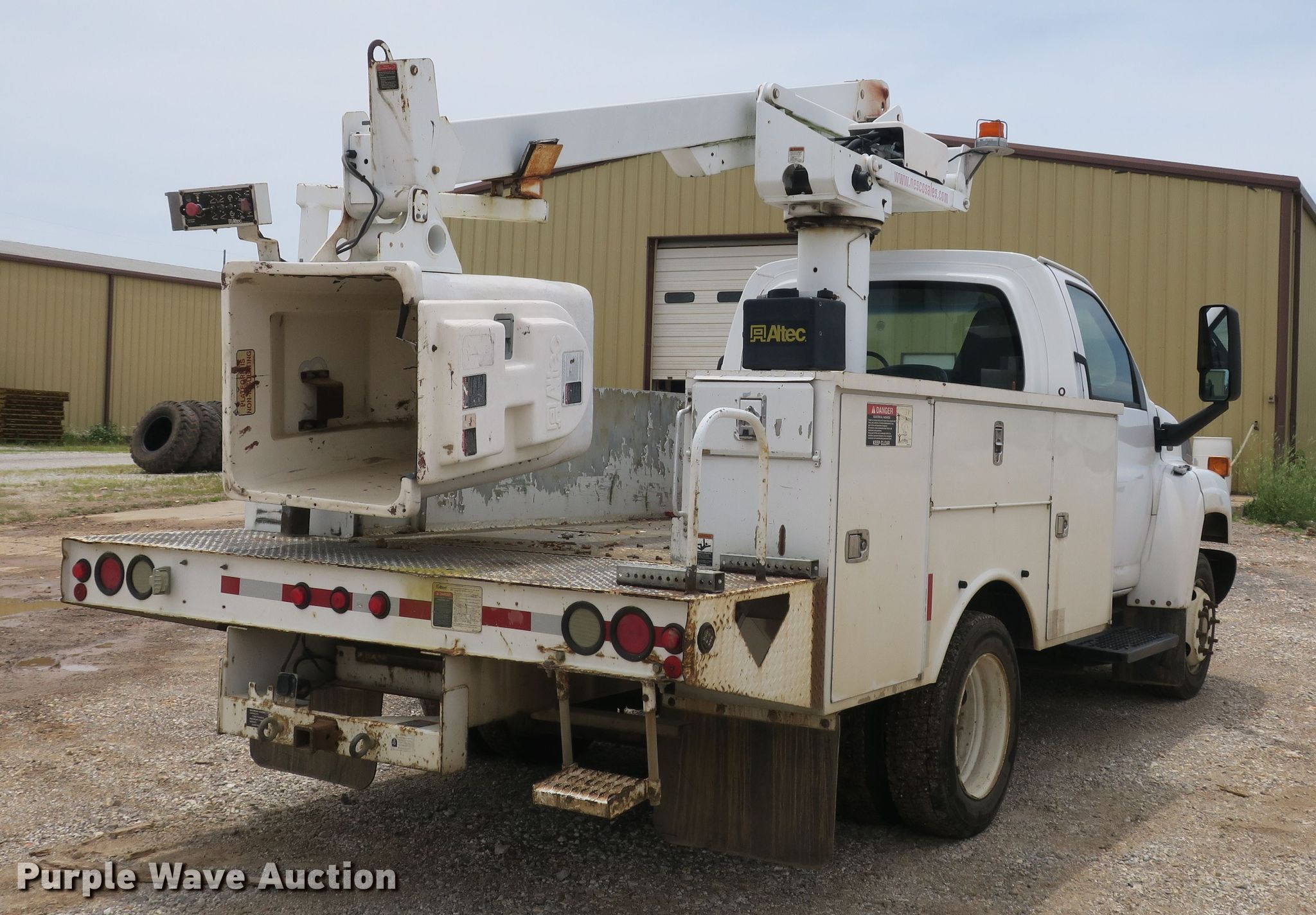 Purple Wave is selling a used Bucket Truck in Arkansas. This item is a 2008 GMC C5500 bucket truck with the following: 162,316 miles on odometer, 6.6L V8 diesel engine, Automatic transmission, Single axle, AC and heat, Power windows and locks, PTO, Altec Penske service bed, 9'L, 29"L extension, Altec AT235 boom, 13' boom length, 350 lbs max lift capacity, Man basket, 35' max lift height, Platform boom controls, Telescopic boom, Serial 856-11464890, Single fuel tank, Spring suspension, Hydraulic brakes, 225/70R19.5 tires, Boom operational issues