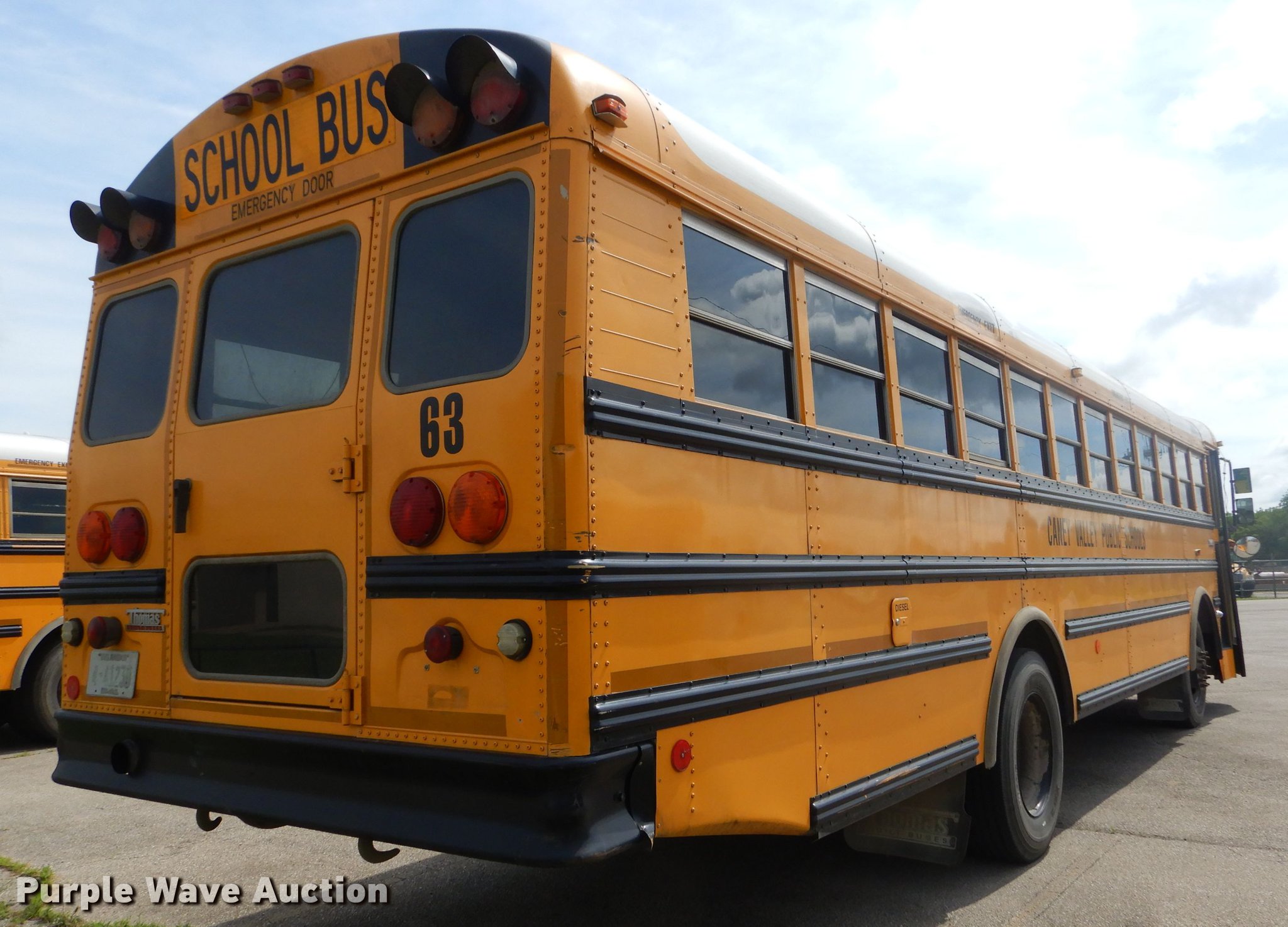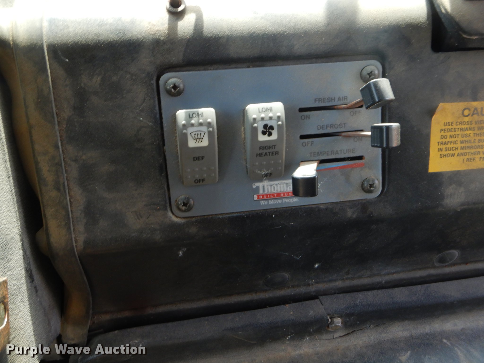 Purple Wave is selling a used Bus in Oklahoma. This item is a 2008 Thomas Built Saf-T-Liner MVP EF school bus with the following: 125,806 miles on odometer, 30,000 hours on meter, Cummins ISB 5.9L L6 diesel engine, Automatic transmission, Single axle, Heat, Heated mirrors, 71 passenger capacity, Spring suspension, Hydraulic brakes, 192" wheelbase, 11R22.5 tires, GVWR 30,000 lbs, Cracked windshield, Unit# 63